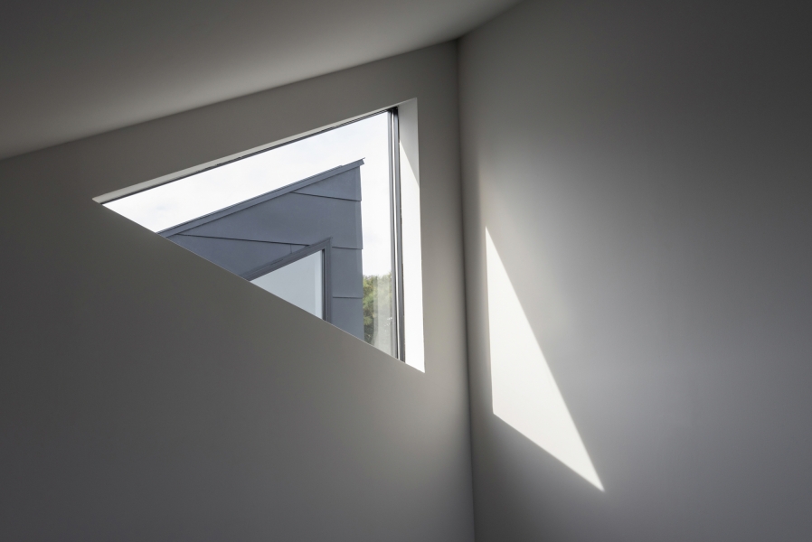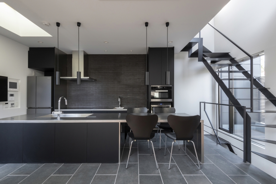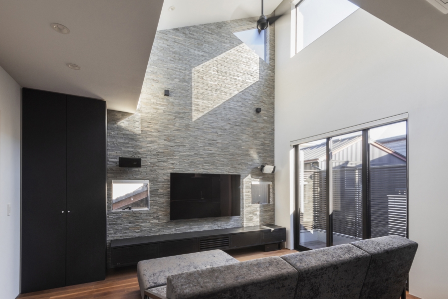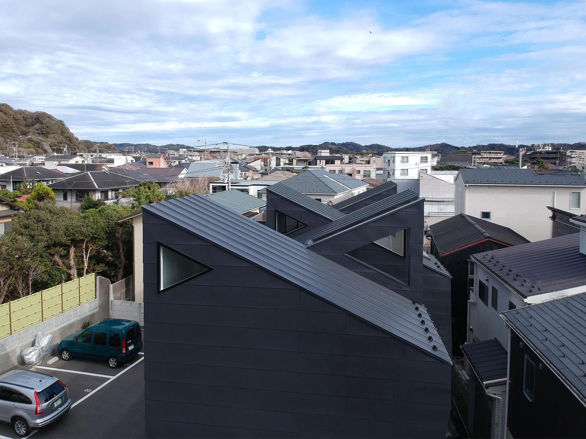 The client, who lives in center of Tokyo, valued spending time with his family and his hobby of surfing. He often visited Kamakura for surfing and inevitably came to want a vacation home. It's not an area where land is often sold, but after a long wait, he finally found a plot of land. When I first stood on the site, I was expecting the "nature", "scenery", etc. characteristic of Kamakura, but it was, on the contrary, something straight out of an ancient city, the distance from the neighboring houses was very narrow. The biggest challenge was how to bring "light" into the space.