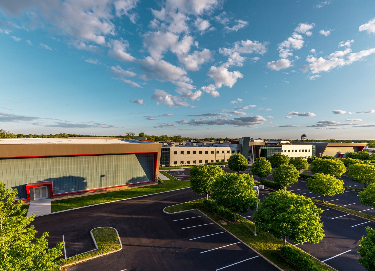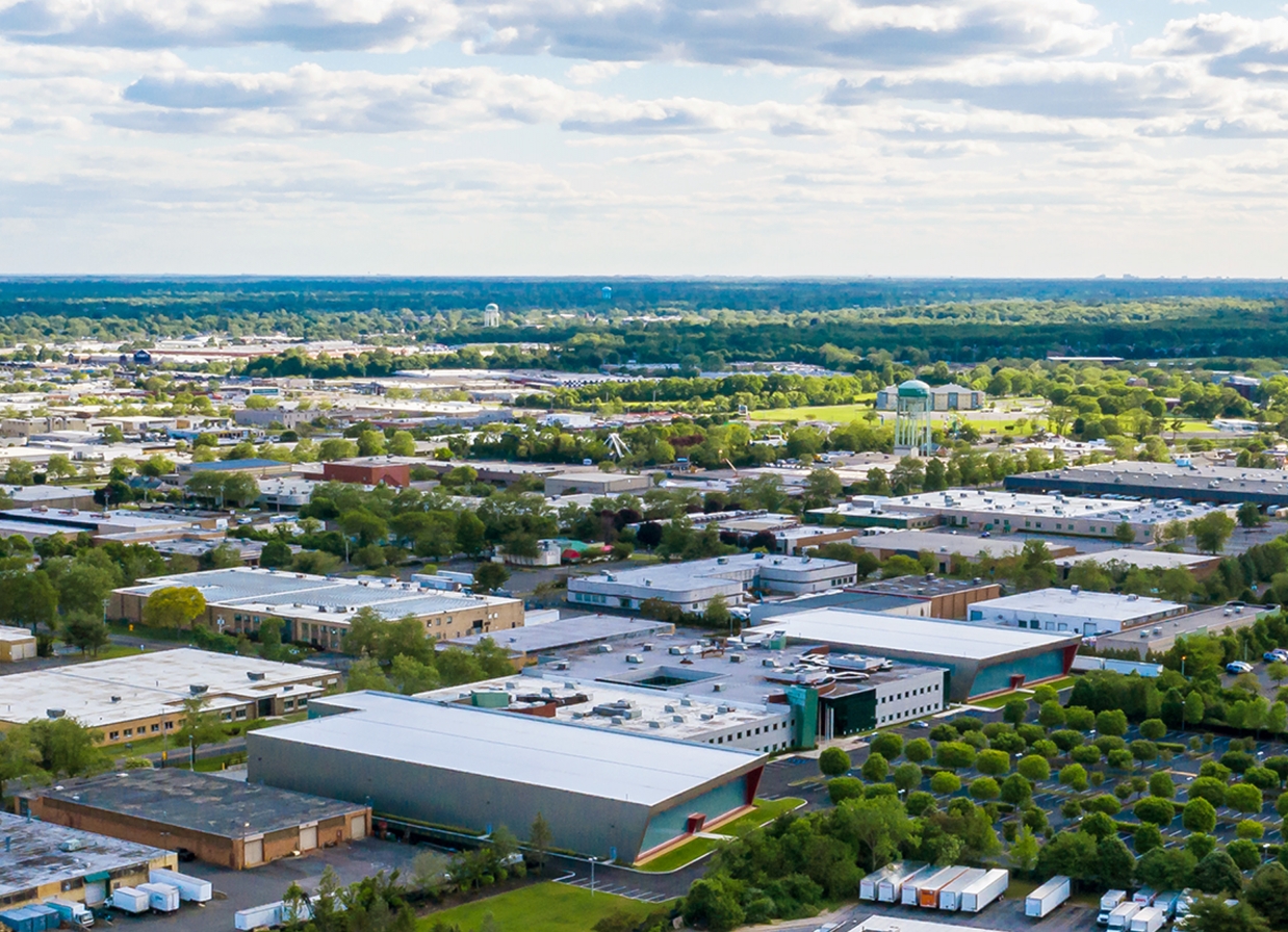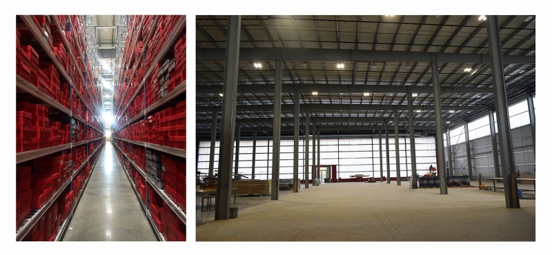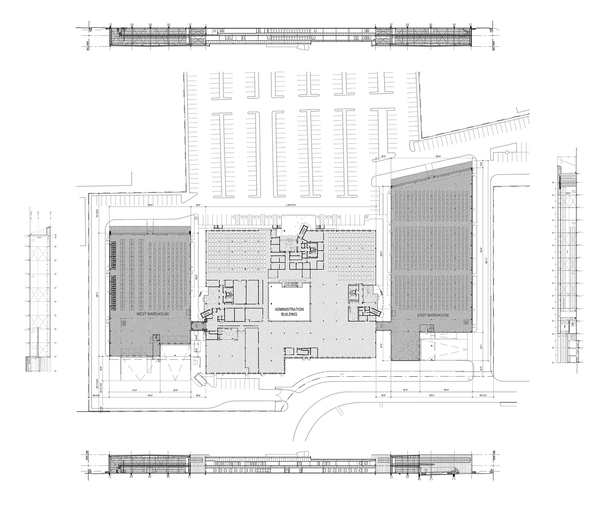 Two 50,000 sf pre-engineered warehouses were designed to flank an existing 150,000 sf office building that was converted into a luxury fashion logistics headquarters for Stellae International.