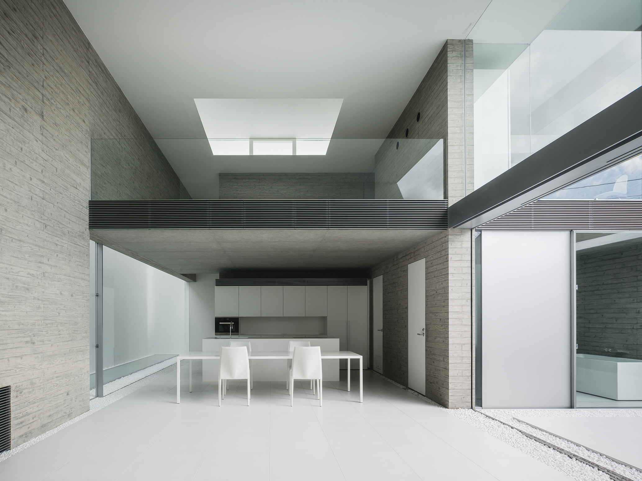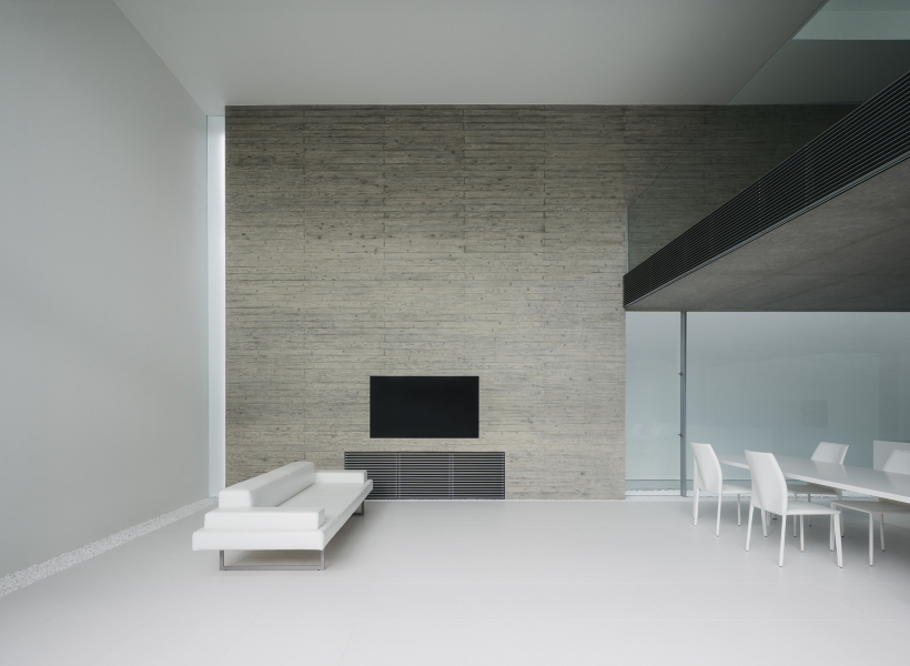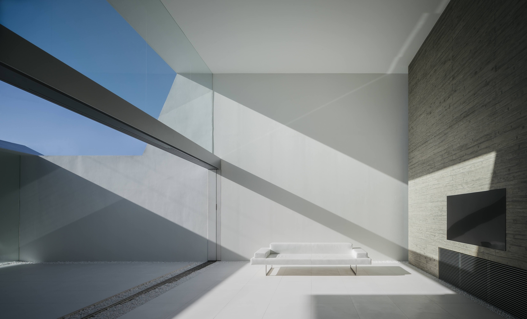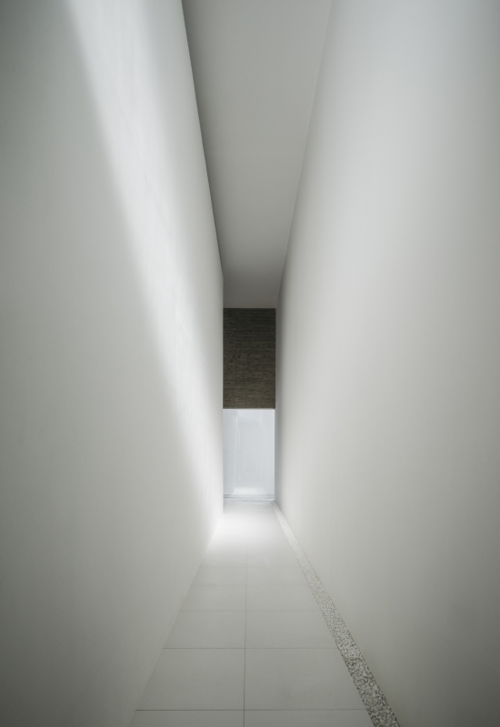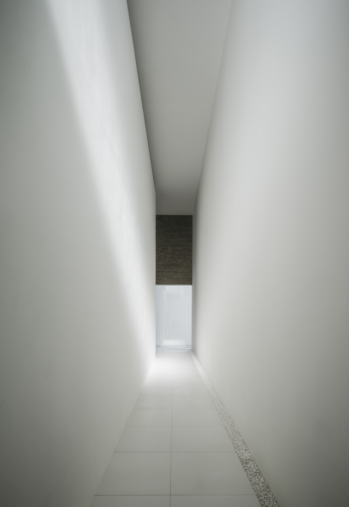 The space,created by folding white,thin slabs that have lost their mass and texture,shifts the axis of sensory interpretation from figurative to abstract and deepens our understanding of formless events.