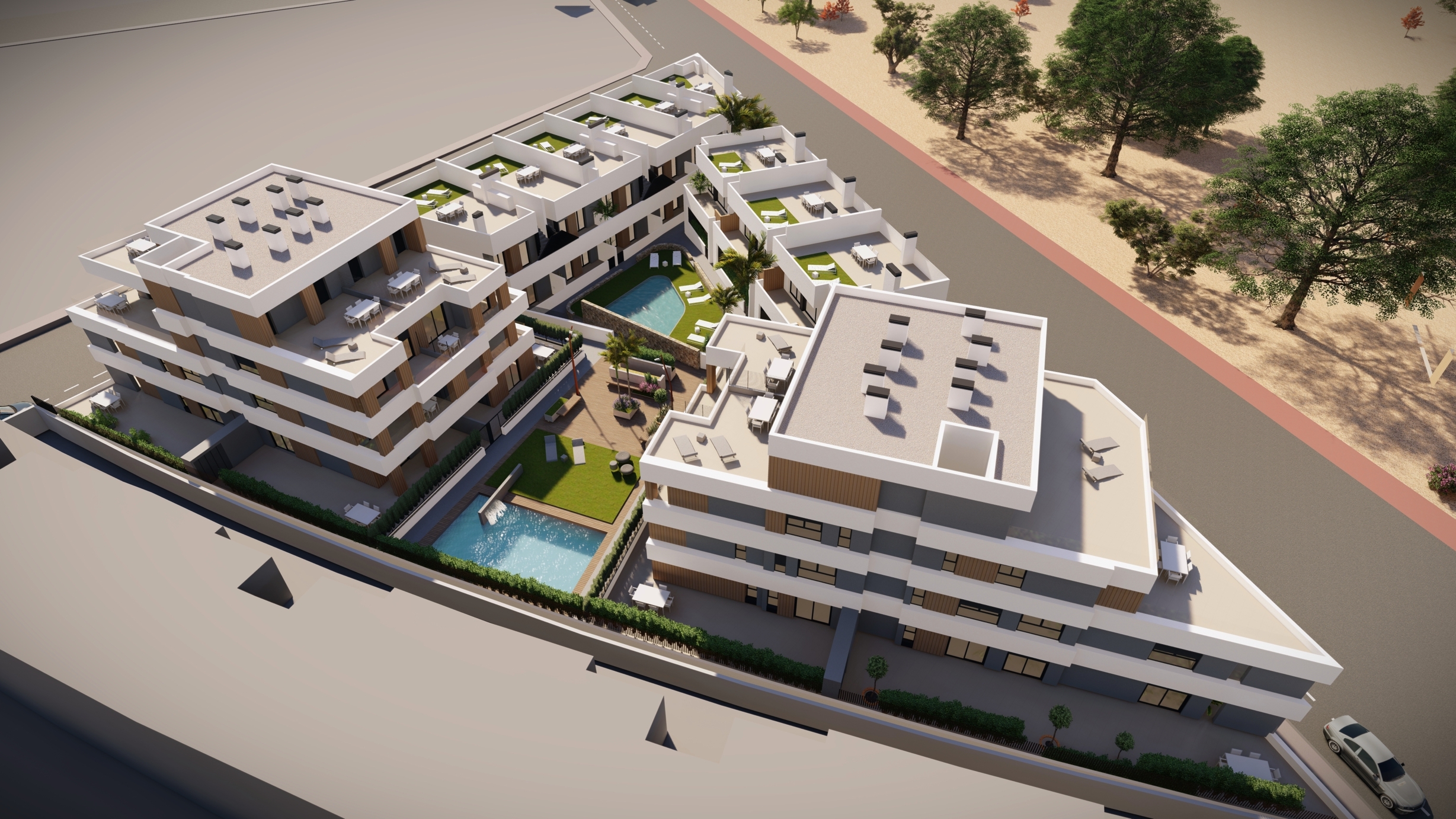 A Group Uno Design … These contemporary, modern homes are set in 4 blocks with communal garden zones and two communal swimming pools. These stylish homes offer spacious living areas with wide terraces, with choices of energy saving internal finishes... Choose from a ground floor model or a penthouse with large roof top solarium.