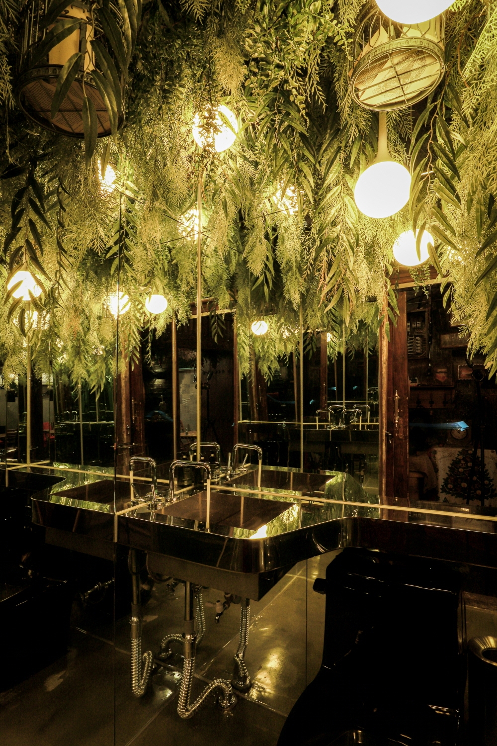 During the day, sunlight shines through the branches on the ceiling, creating random shadows, and at night only little lights can be seen, just like inside a real nest.