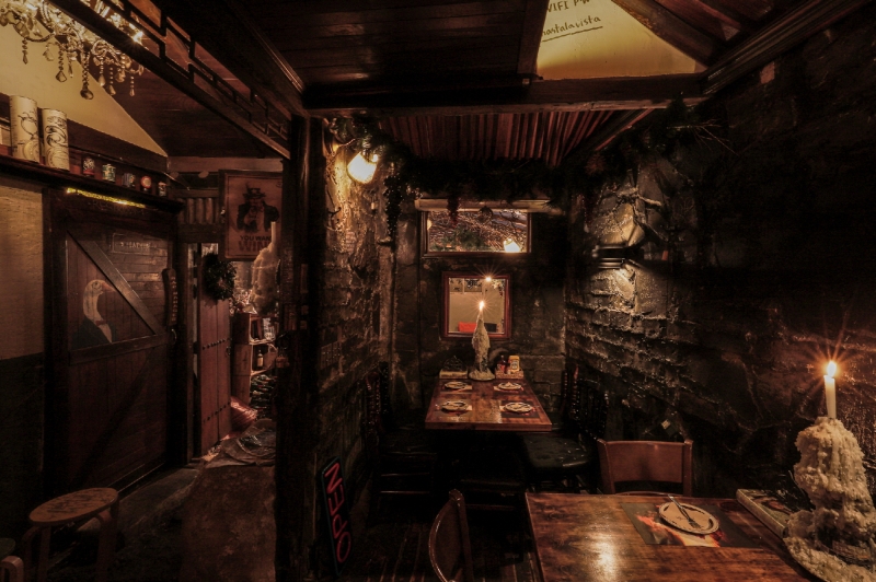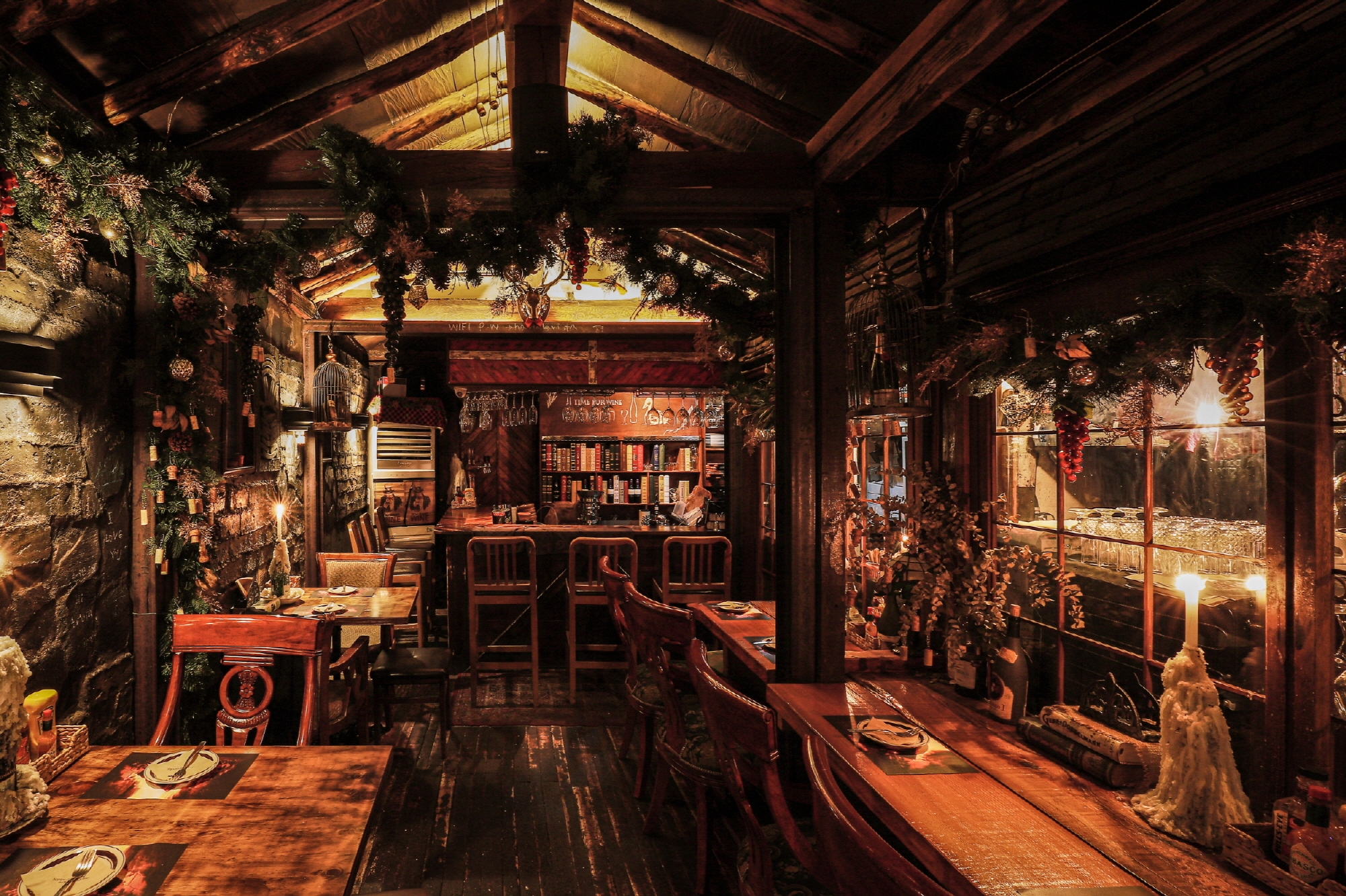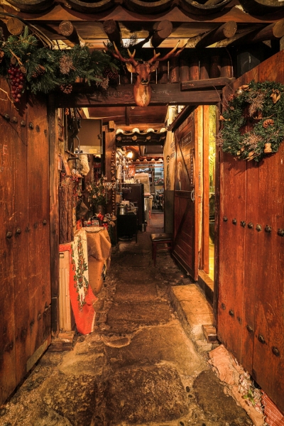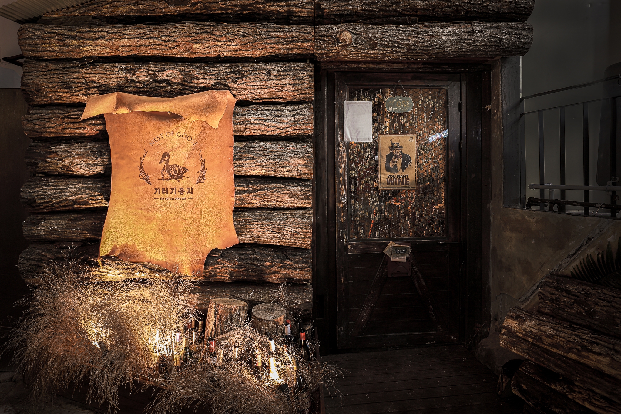 With stacks of old logs and reeds, the entrance makes the cabin look like the one from the fairy tales that we read as a child.