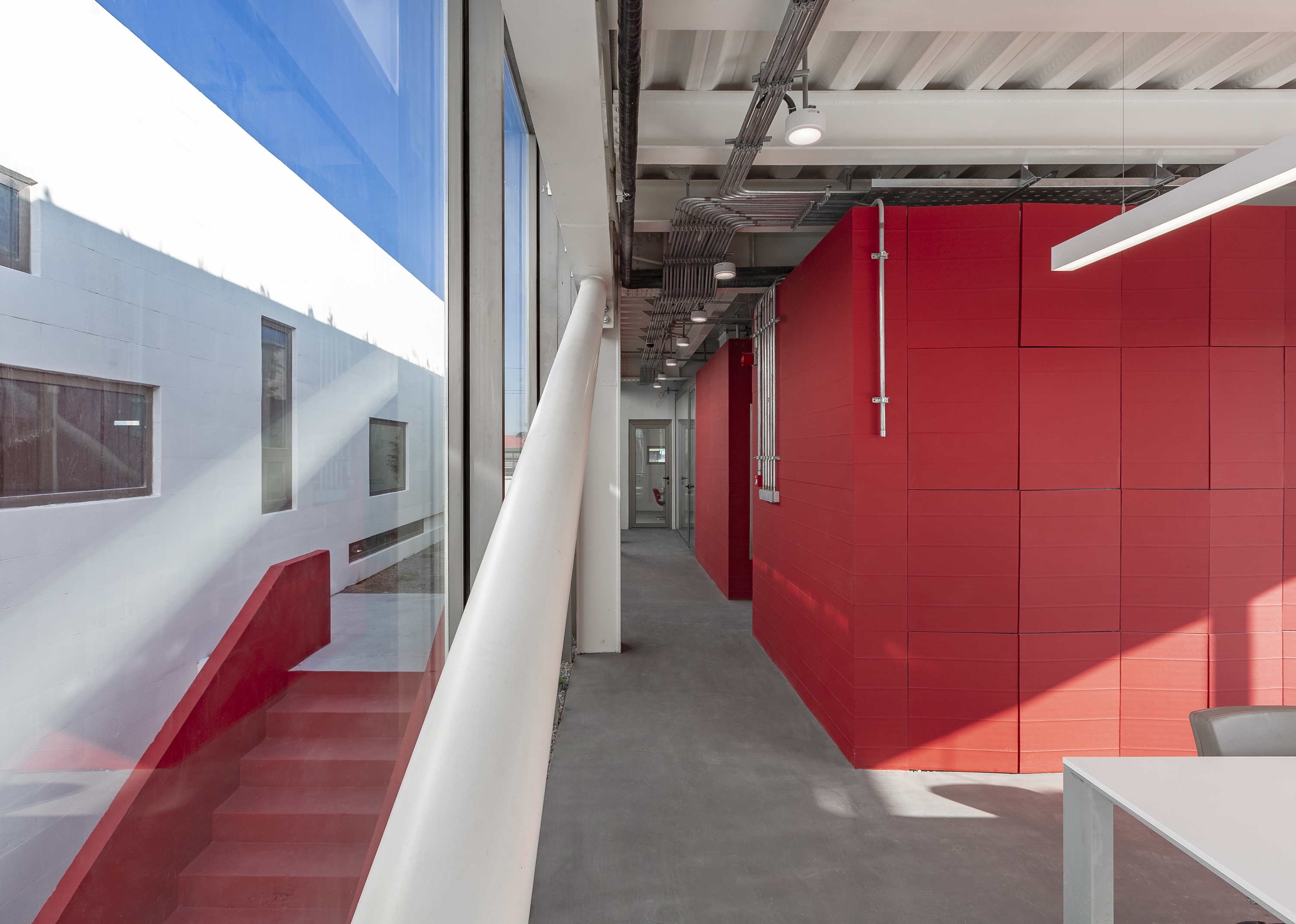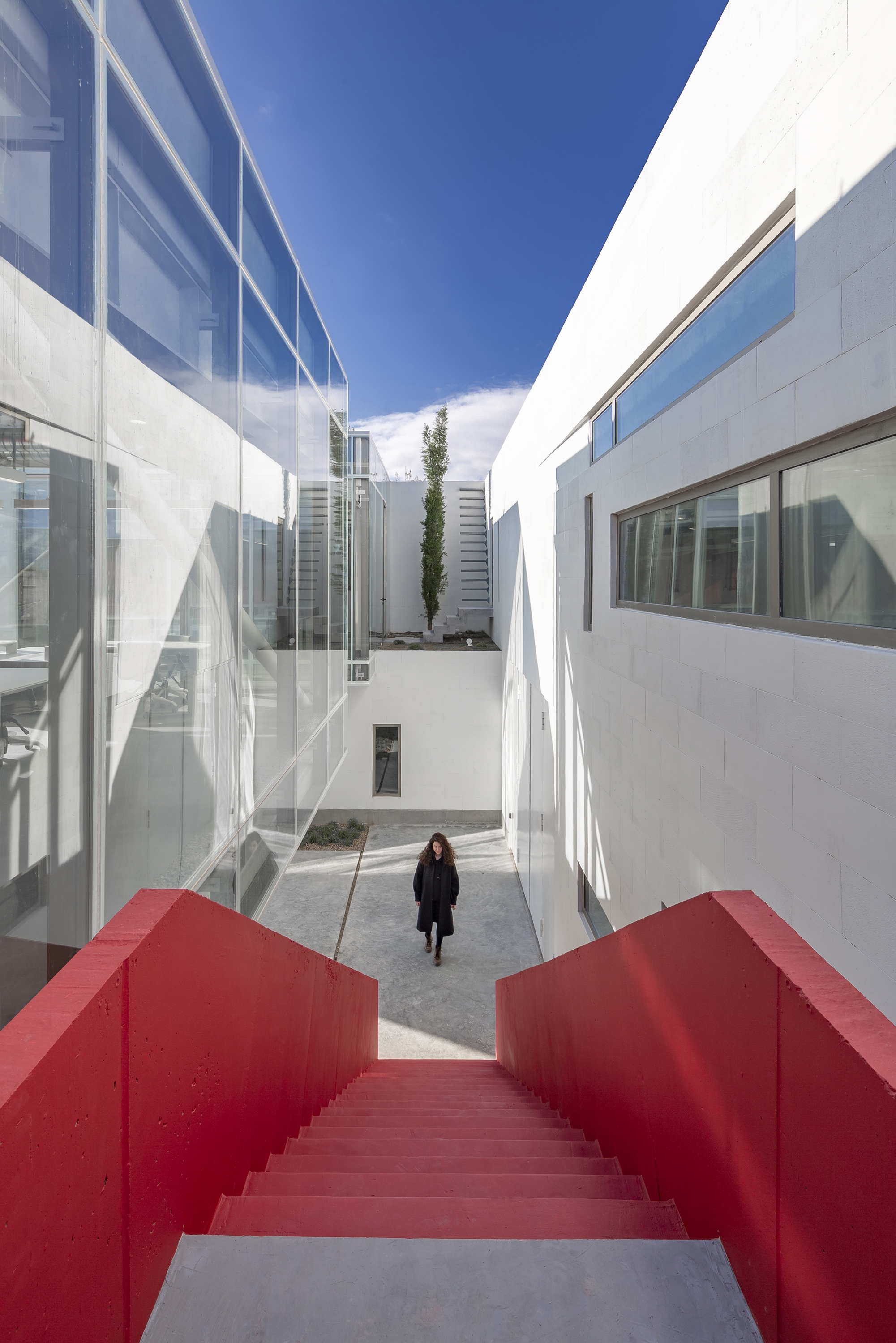 This project seeks to increase sense of connecting spaces to improve the quality of life of factory workers. The concept of this complex took place in two outdoor void spaces perpendicular to each other. The geometry of these void spaces makes separation of different parts possible and acts as a middle courtyard for connecting different areas with each other. Human dimensions, open air, light and shadow, green space and color increase the sense of middle courtyard.
