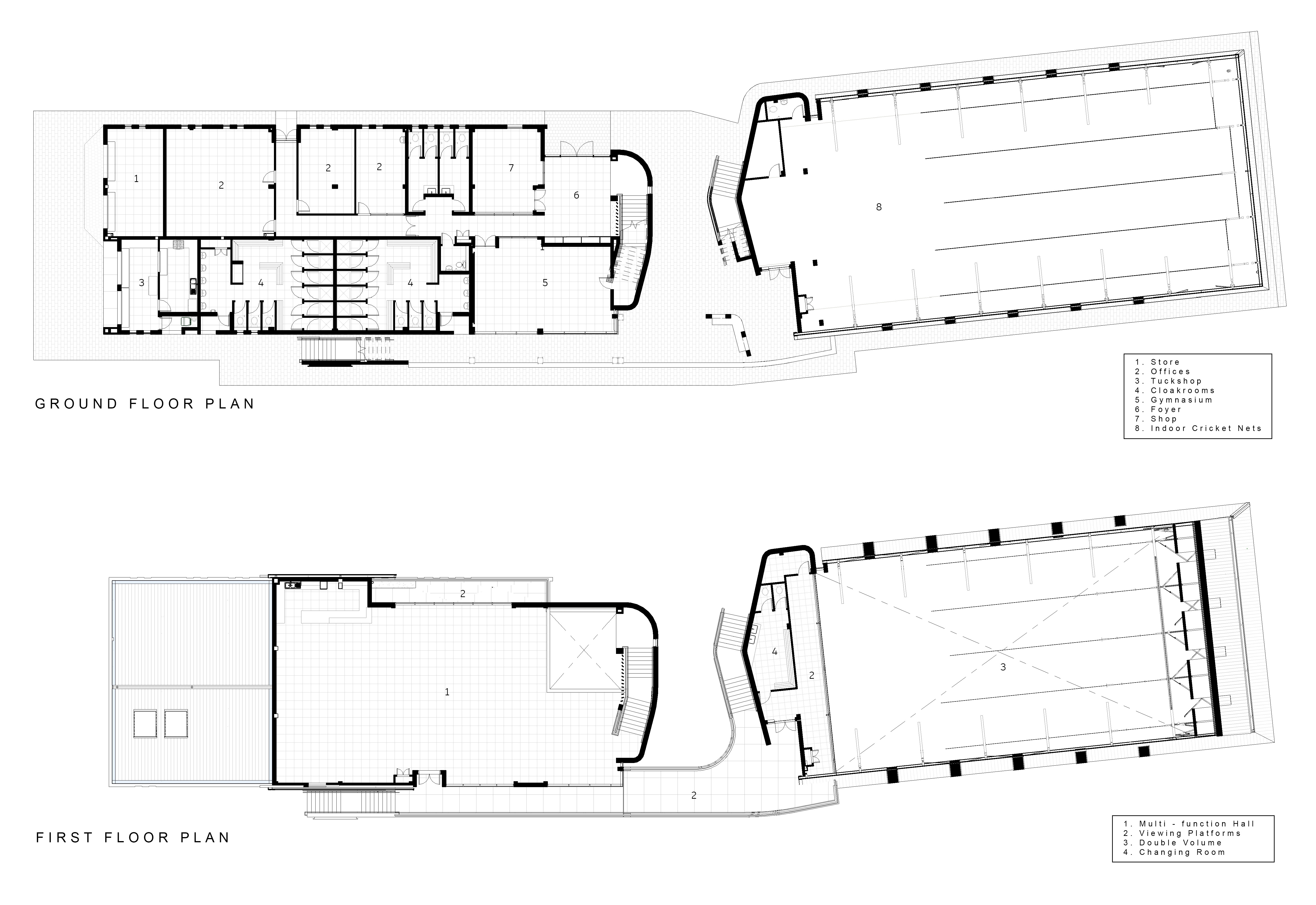 The building is situated between the two main sport fields (rugby and hockey). BPAS bisected the programme into two distinct portions. This connection activates the space between the sport fields and adds function to a previously under-utilised zone. Distinct masses were designed for each of the two main elements in the building; the cricket nets are contained in a tapered “shed” with heights designed according to functionality, while the multi-function hall with balconies is positioned on the upper level to maximise on views across the sport fields.