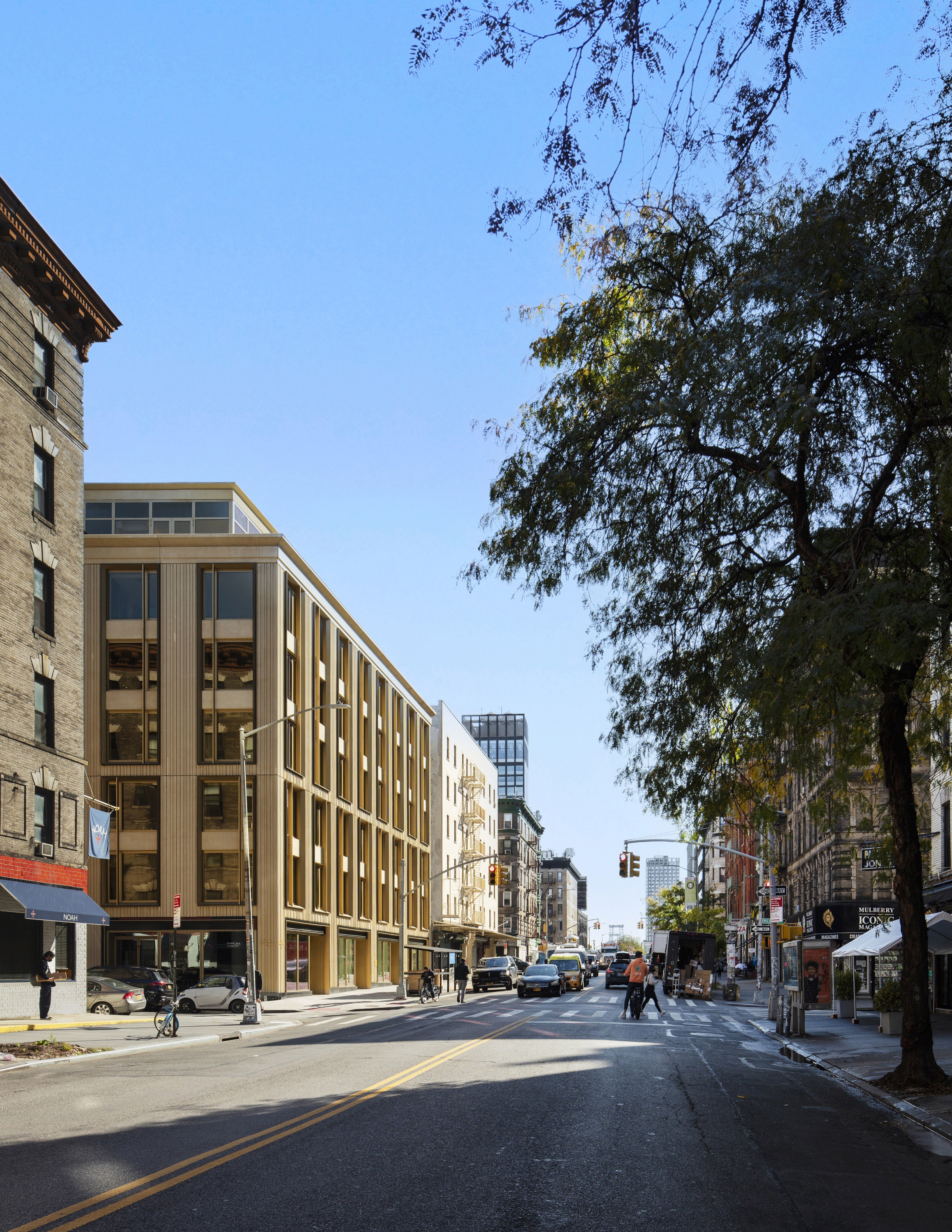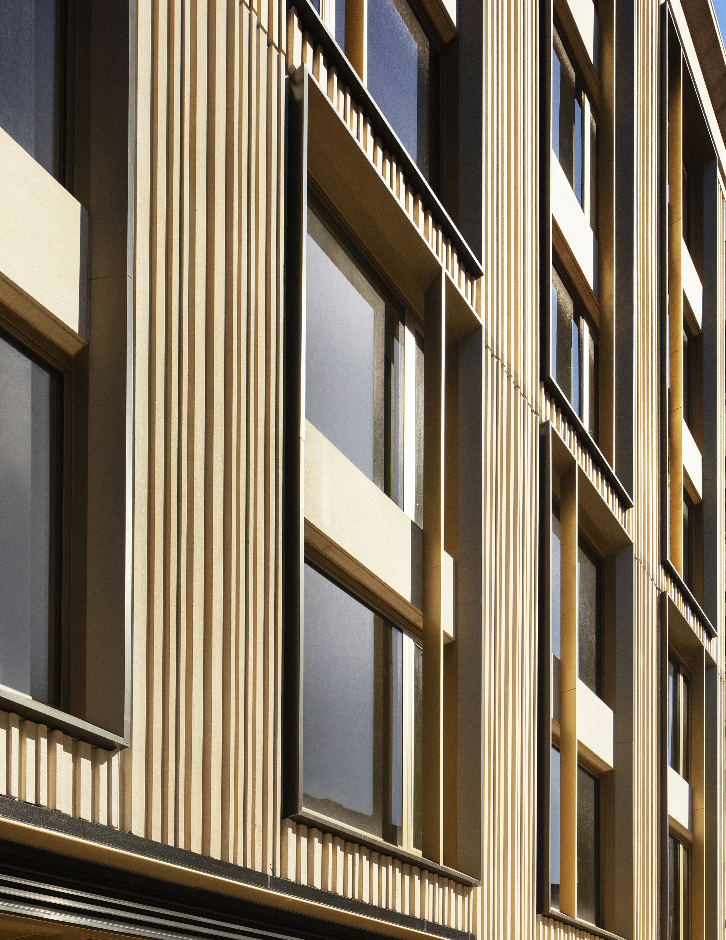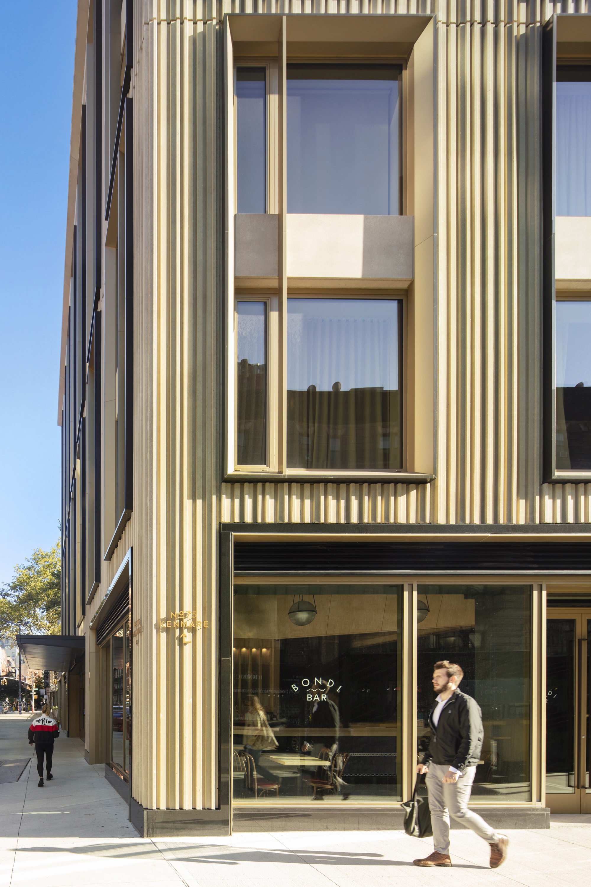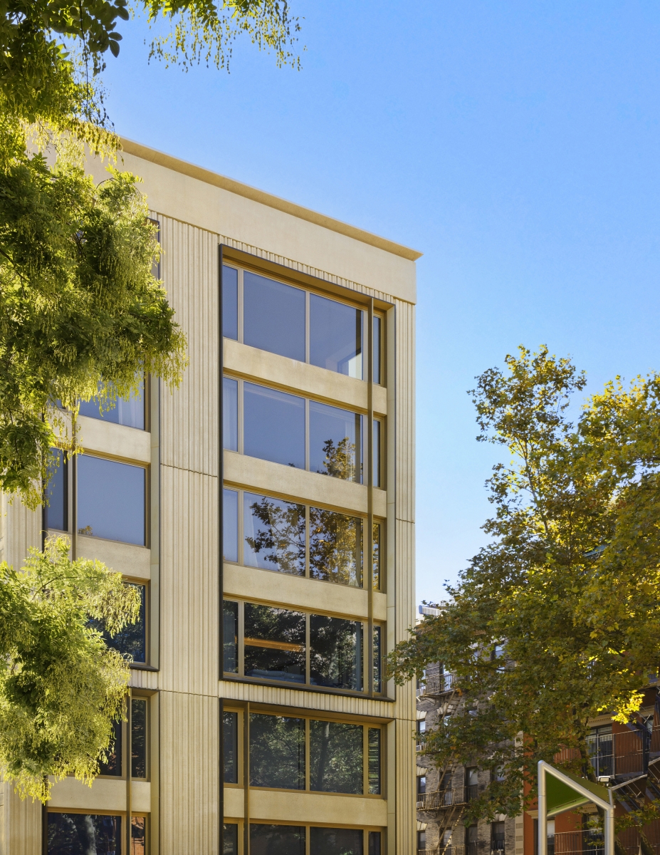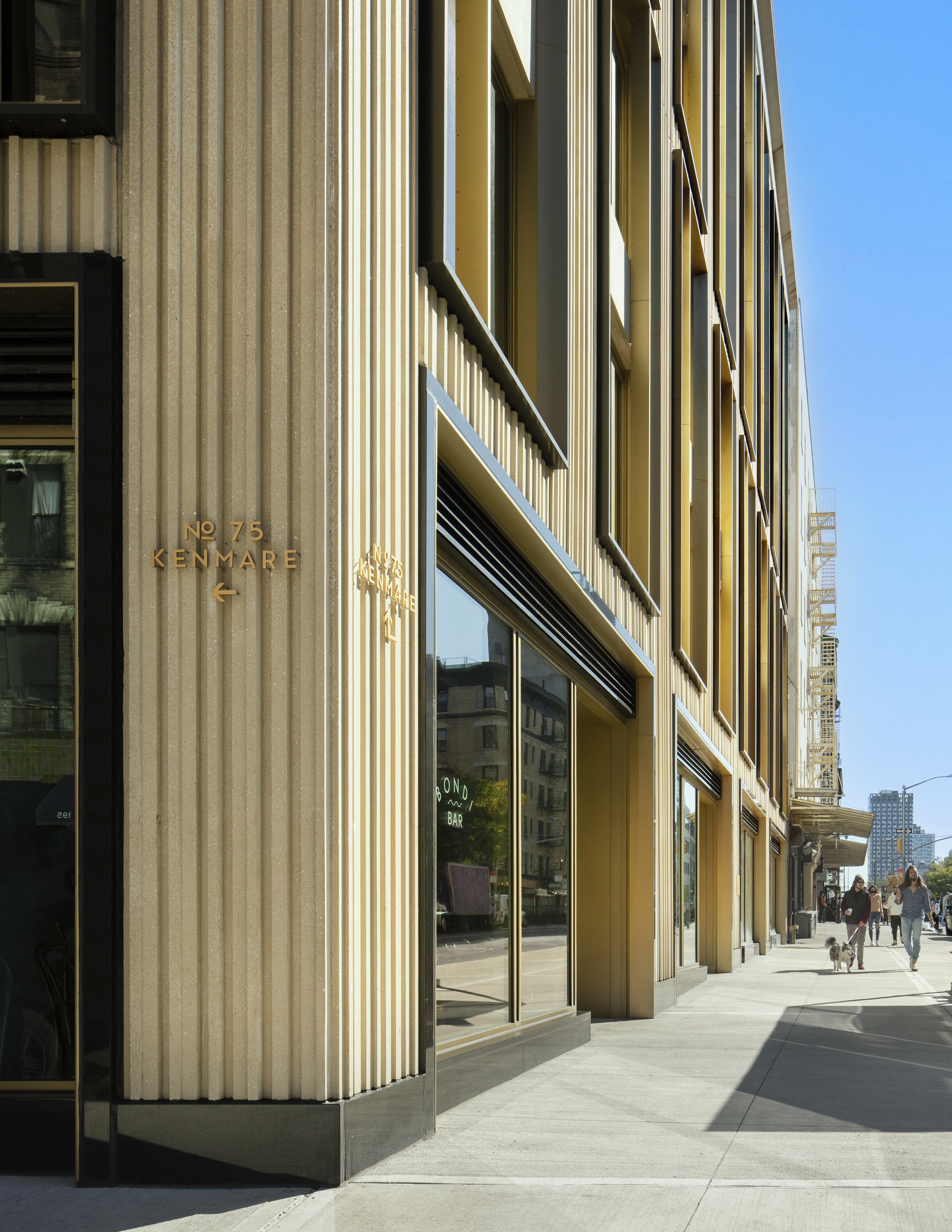 75 Kenmare is an 83,000 SF 7 story building with 38 apartments. It’s massing and concrete façade speak to the neighborhood. Imaginative detailing gives concrete, the humblest of materials, a timeless, robust presence. Simple linear channels, referencing contextual architectural details, modulate the play of sunlight across its surfaces. Multi-story bronze window frames set into the skin respond to the site’s proportions and architectural language, giving the building and its 2nd floor garden an inviting human scale. 75 Kenmare creates architecture that is deeply rooted in a sense of place.