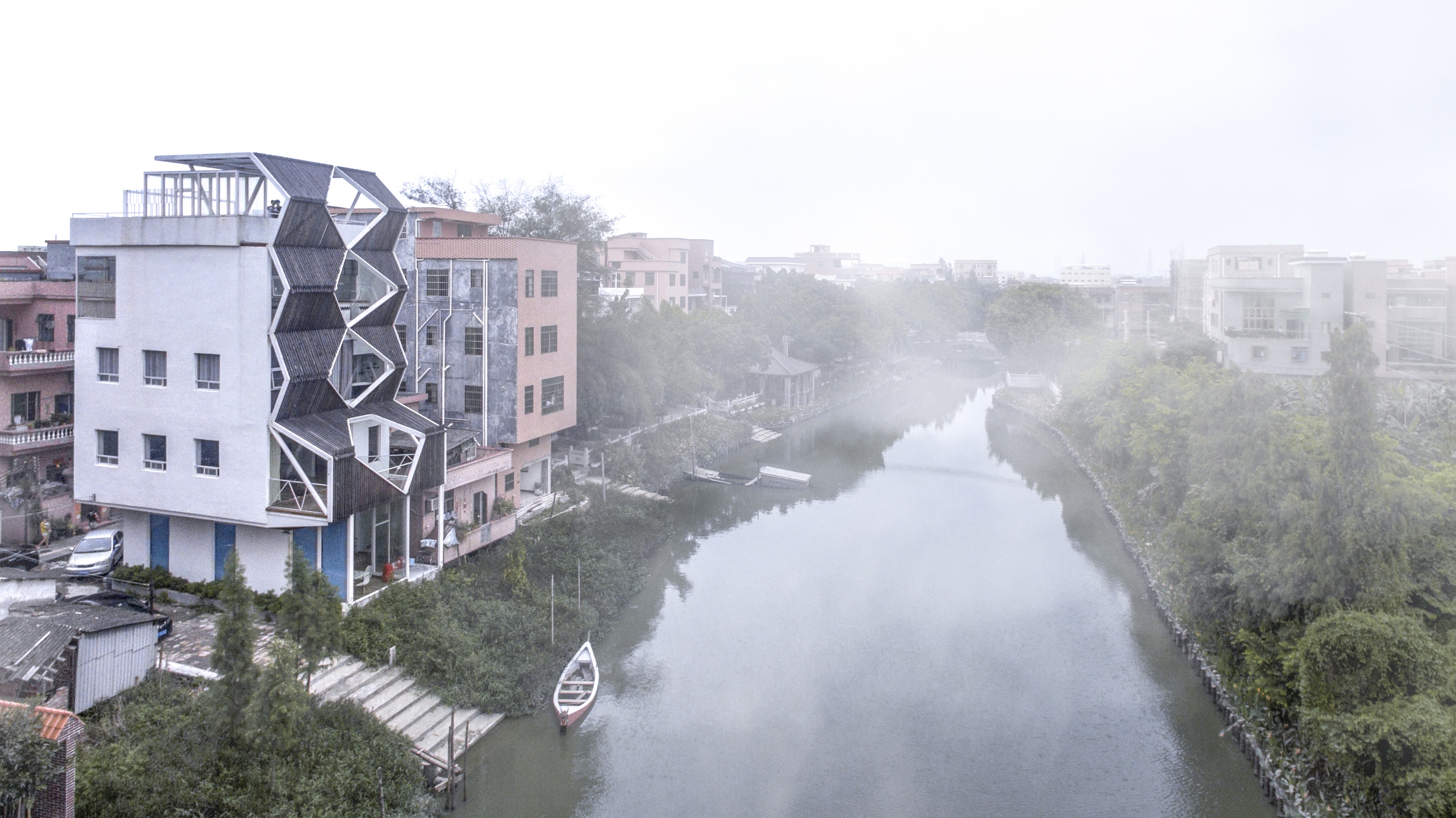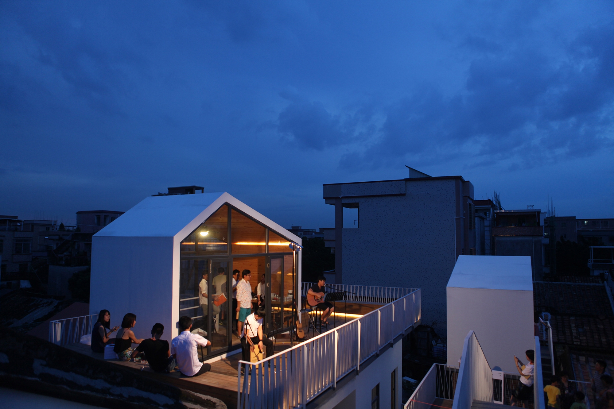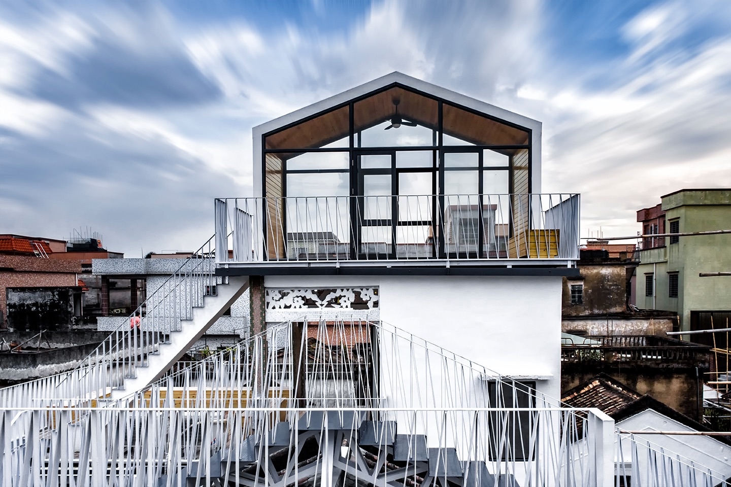 The most crucial method of the White House Homestay project is to integrate the roof terrace space of the four independent houses that were originally owned by different owners. This, in turn, creates a rare public space in a high-density village. Built with a new spatial structure, the public space is floating in the air and transform the private living space into a public space, making it possible to solve the problem of the lack of public space in the village creatively and demonstrate how the old buildings could be adapted to the new function.