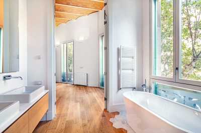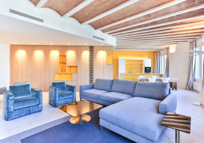 Refurbishment of a hospital into a residential apartment building, located in the center of the Eixample district in Barcelona, an area full of architecturally diverse buildings. The number 41 in Ausias March dates from 1895. The apartments’ sizes are between 64 square meters and 232 square meters, and they allocate 1 to 3 bedrooms. The building has a great display of communal areas on offer, ranging from a spa to a gym on the ground floor.