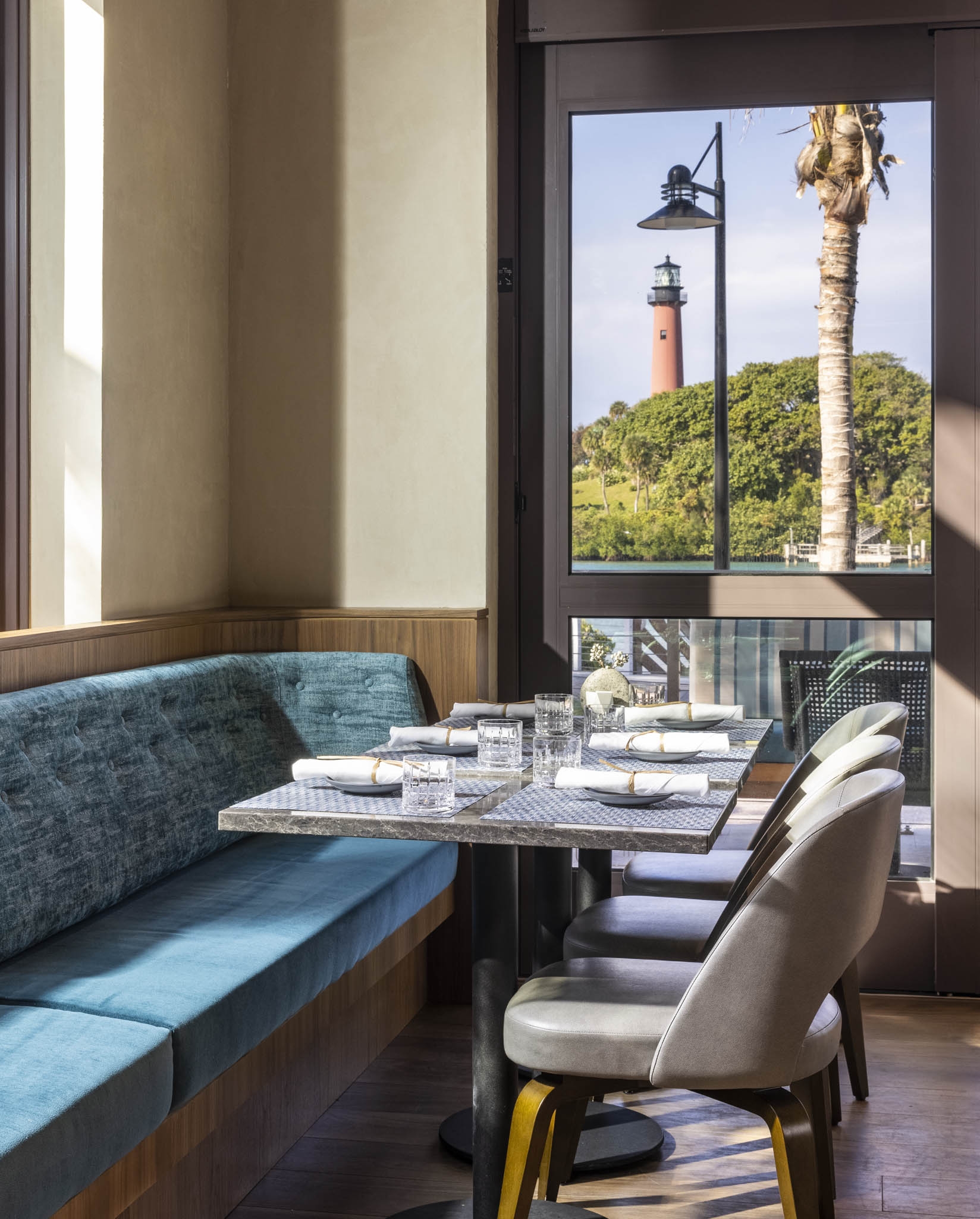 Set along the Jupiter Inlet in an extraordinary location with awe-inspiring views, this Project is a multifaceted, hospitality & life style destination located within the gem of Jupiter’s Inlet Village. The design is elevated to a level that provides grand “wow factor”, while still providing an accessable, welcoming ethos without any sort of pretension or intimidation. Design cues were brought from the Mediterranean and executed through the use of classic yet not traditional shapes forms and textures found through-out. All the while firmly rooted in a design ethos that takes into account Jupiter’s waterfront influence and nautical culture. The prime objective was a a brand personified, this one was to be decidedly local. Outdoor dining will parallel the energy and ambiance from inside though indoor outdoor architecture that blends both interior and exterior. A showcase, U-shaped open exhibition kitchen/chef’s counter located in the middle of the dining room, along with a culinary component inserted into the bar area plays an integral role in creating an exciting, energetic environment. The staff are the performers and the open fire organic cooking takes center stage.