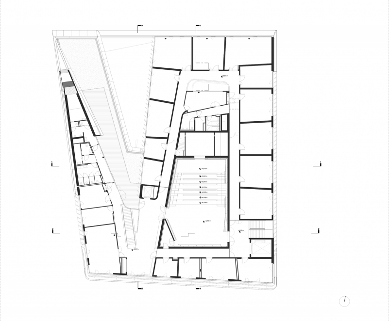 The internal organisation is based on the requirements in terms of function and building acoustics, and the aim is to give each institute the greatest degree of compactness combined with maximum exposure to daylight.