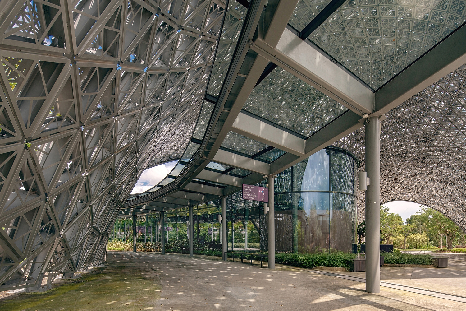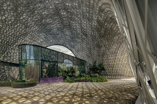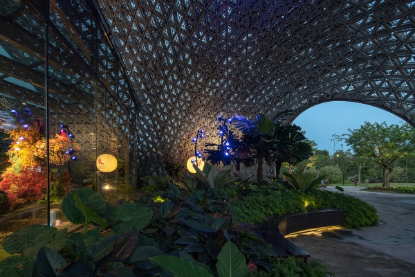Located in Singapore's Gardens by the Bay, The Future of Us Pavilion follows the tradition of architectural structures that evoke a dialogue with nature by blending an intricate form made of a perforated skin fluidly with the adjacent environments. For visitors, it offers a climatically comfortable outdoor environment and a stunning visual experience akin to walking under the foliage of tropical trees - an idea of future nature. Originally built to house The Future of Us exhibition, the golden jubilee capstone event of Singapore, and completed for its current purpose in 2019, the project has since become a landmark in the Gardens that serves as a public space and venue for important community and cultural events including the annual Singapore Garden Festival.