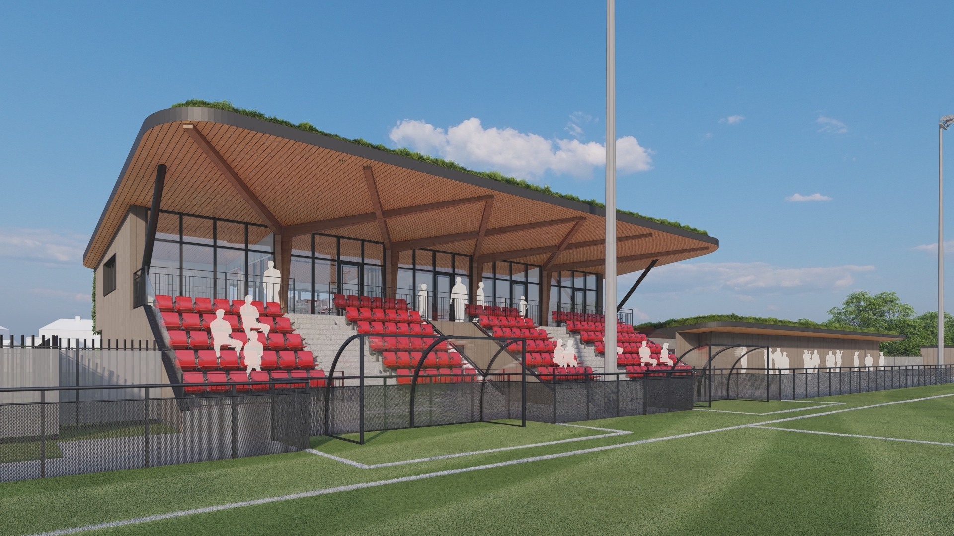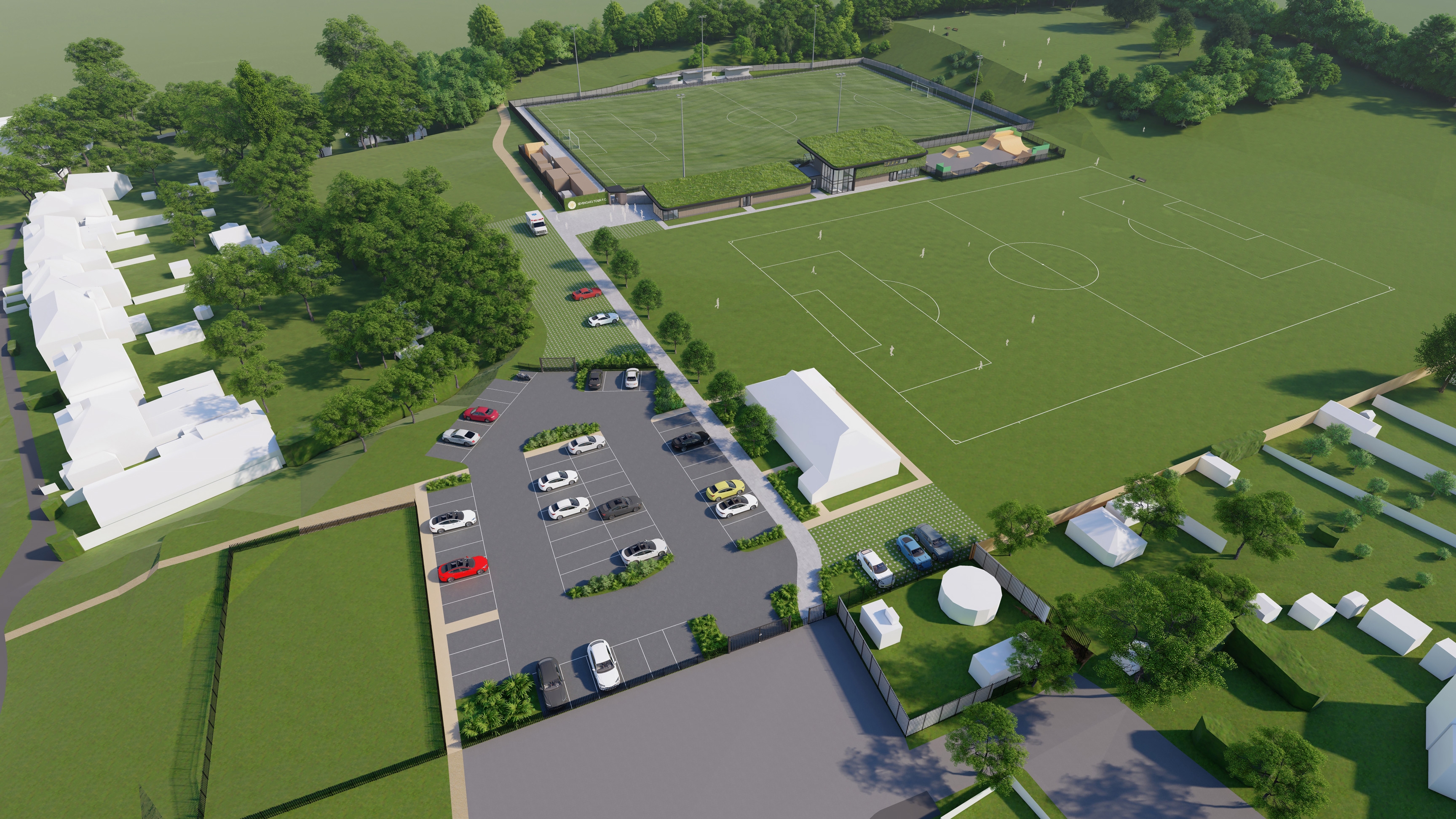 The project brief was to improve the current facilities for Sevenoaks Town Football Club and local community at Greatness Park following a few years of exceptional growth of the club to 61 teams. By redeveloping and improving the stadium, its facilities and access, the site will meet all football foundation and football association requirements and regulations which will enable Sevenoaks Town FC to progress within the football leagues as well providing additional recreational and function room facilities for community groups.