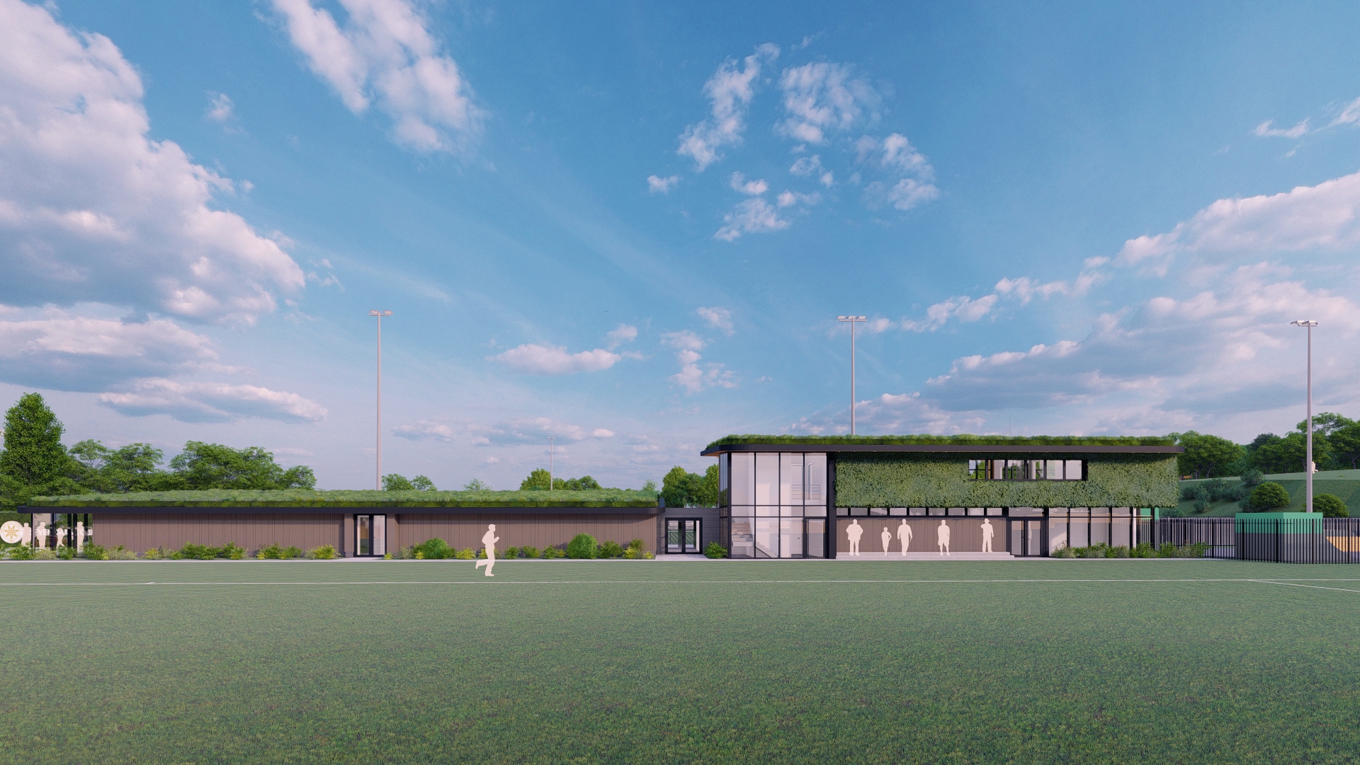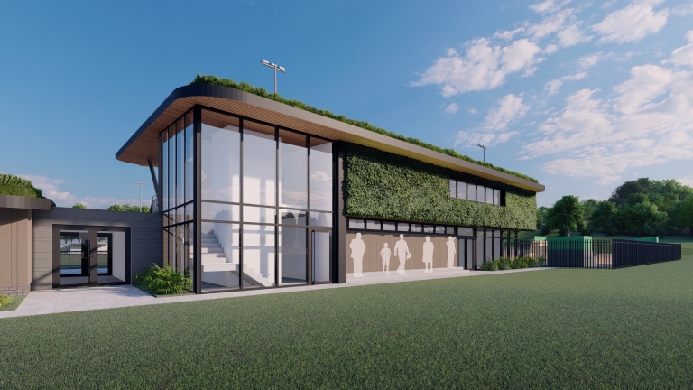 Working collaboratively with the stakeholders we produced a suitable design that would meet the regulations and requirements whilst making sure the design and massing are in keeping with its unique open landscape setting within parkland and Greenbelt. Creating a part 1 storey and part 2 storey form mimics the sculptural contours of the site, and by creating flat grass roofs, it enables the building to merge into the surrounding green context. Additional landscaping, grass wall to the clubhouse and grass roofs will provide additional habitats and increase the biodiversity of the site, whilst assisting with a sustainable drainage system.