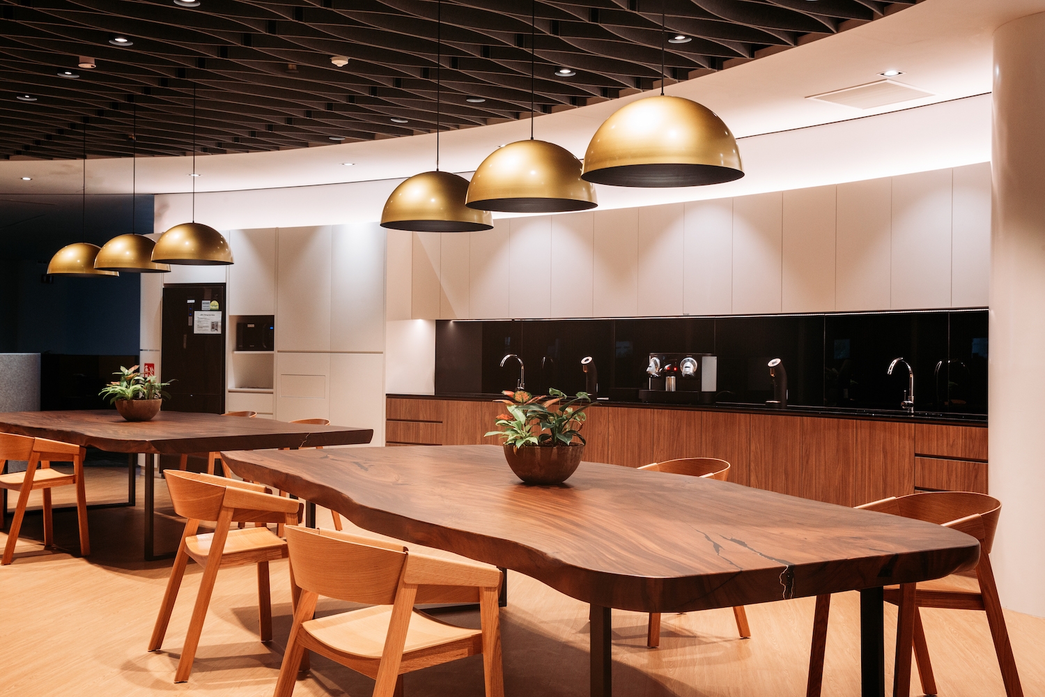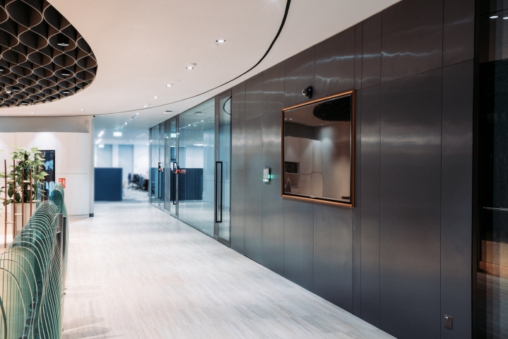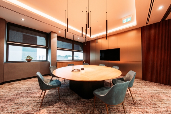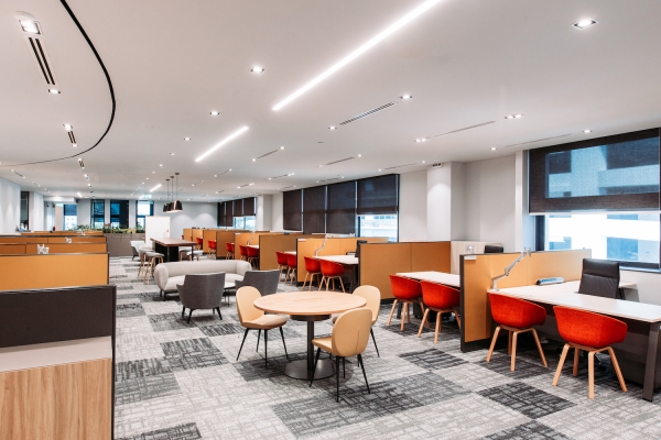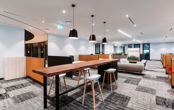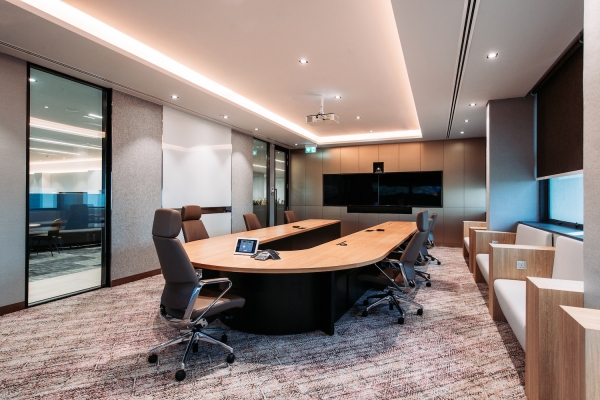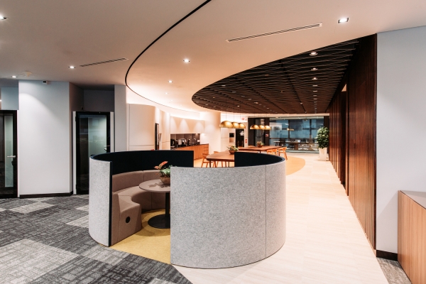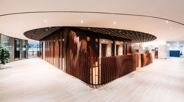 NCS is the leading information, communications and technology service provider in Singapore. The dynamic visioning of the A5 corporate office aims to complement and augment the innovative culture of the company. An organically-shaped central core featuring a wavelike ceiling baffle is surrounded by a hip pantry and a variety of meeting spaces which in turn encourages the spontaneous exchange of ideas. Virtually all employees have access to natural daylight for mental well-being. The dynamic yet relaxed workspace encourages intuitive creative ideation and allows ah-ha moments to come to the fore.