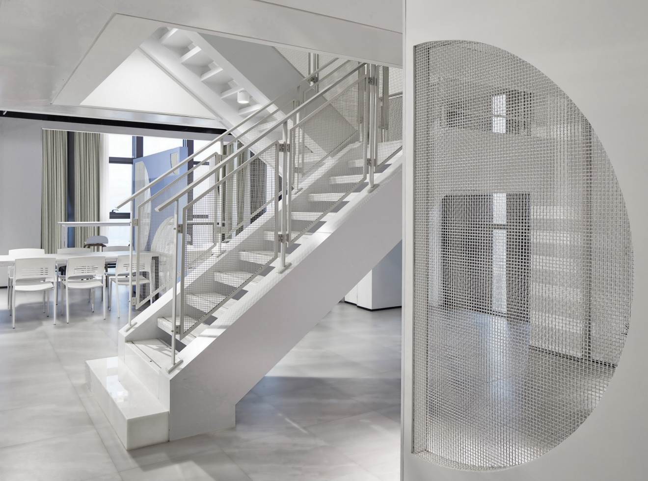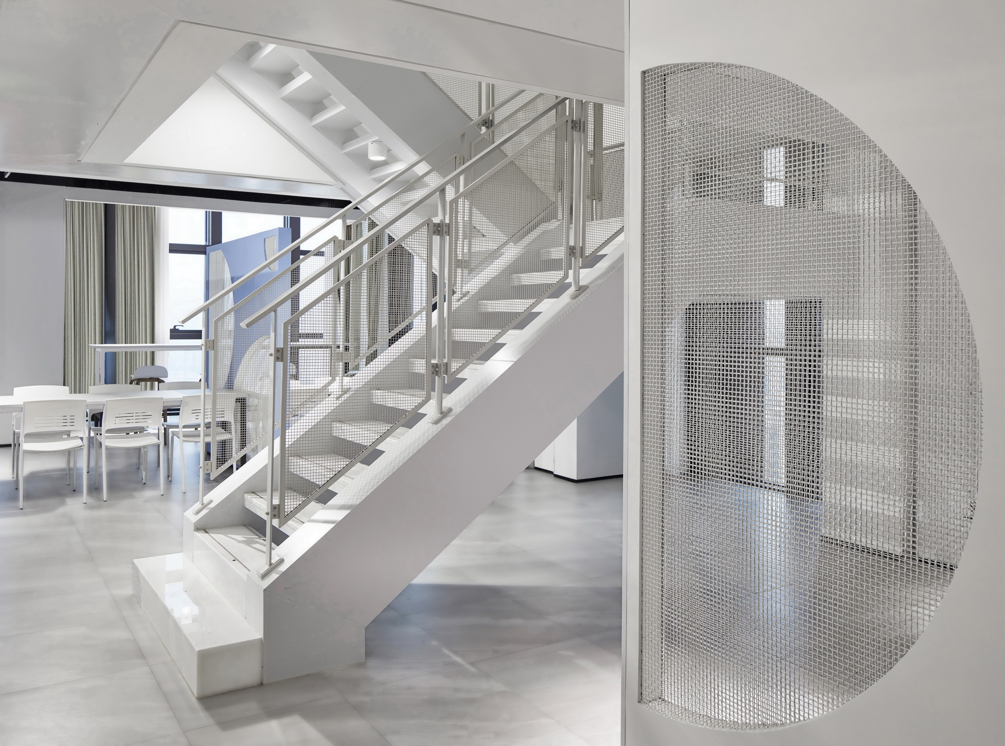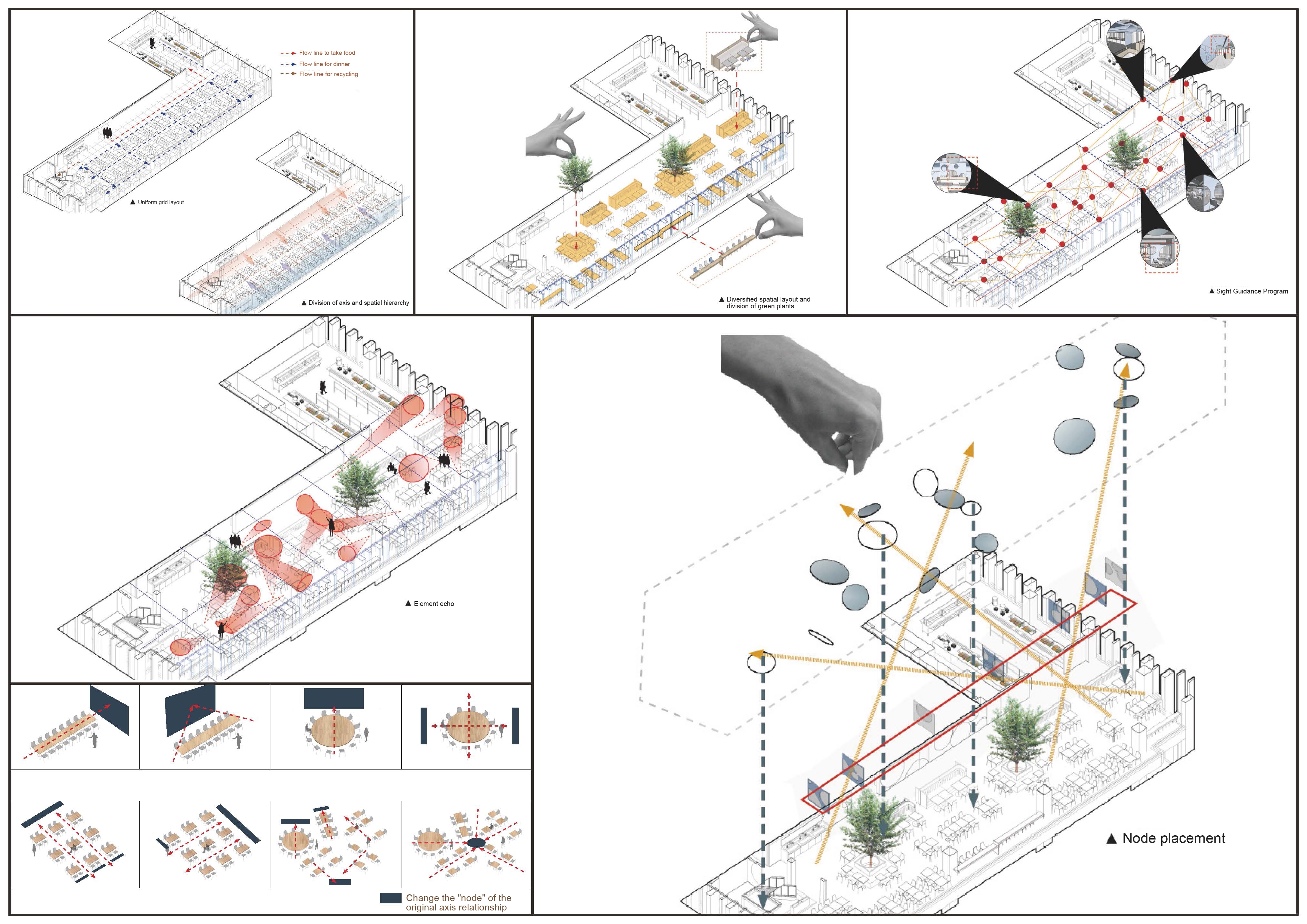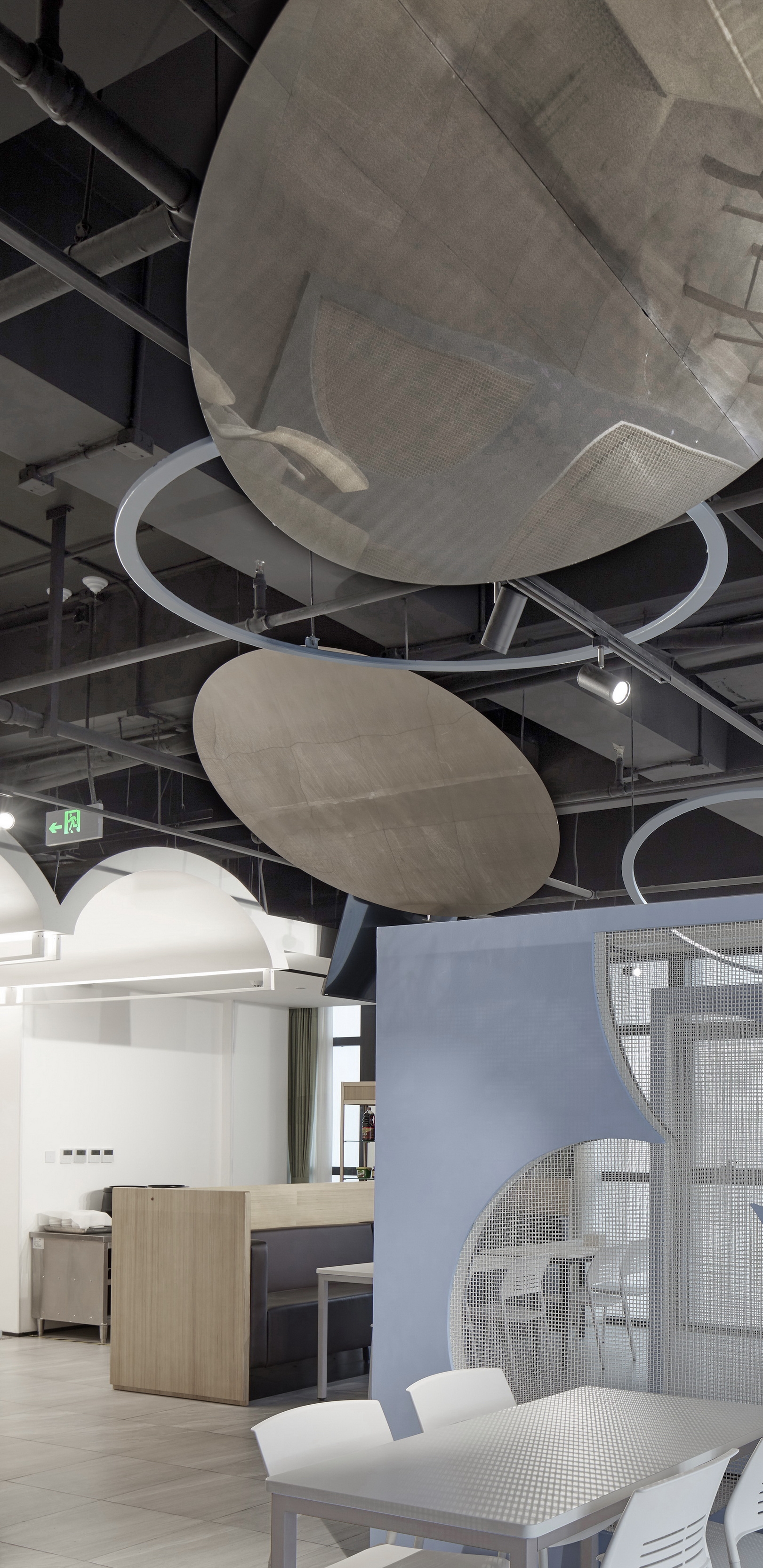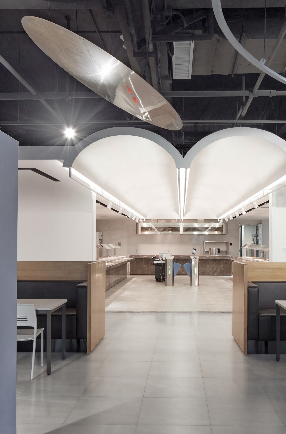 The difficulty of this design lies in the need to explore the space elements of the staff canteen, and implant the design from the line of sight and streamline.