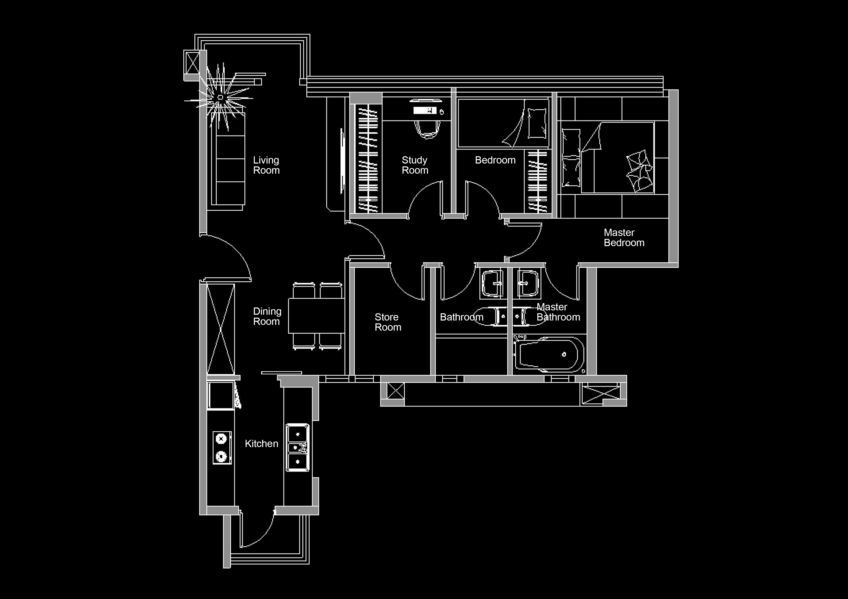 Because there is no wardrobe in the master bedroom, so it is 100% use for the entire space as a relaxing and resting place. It is obvious to show what lifestyle that the client pursuit.