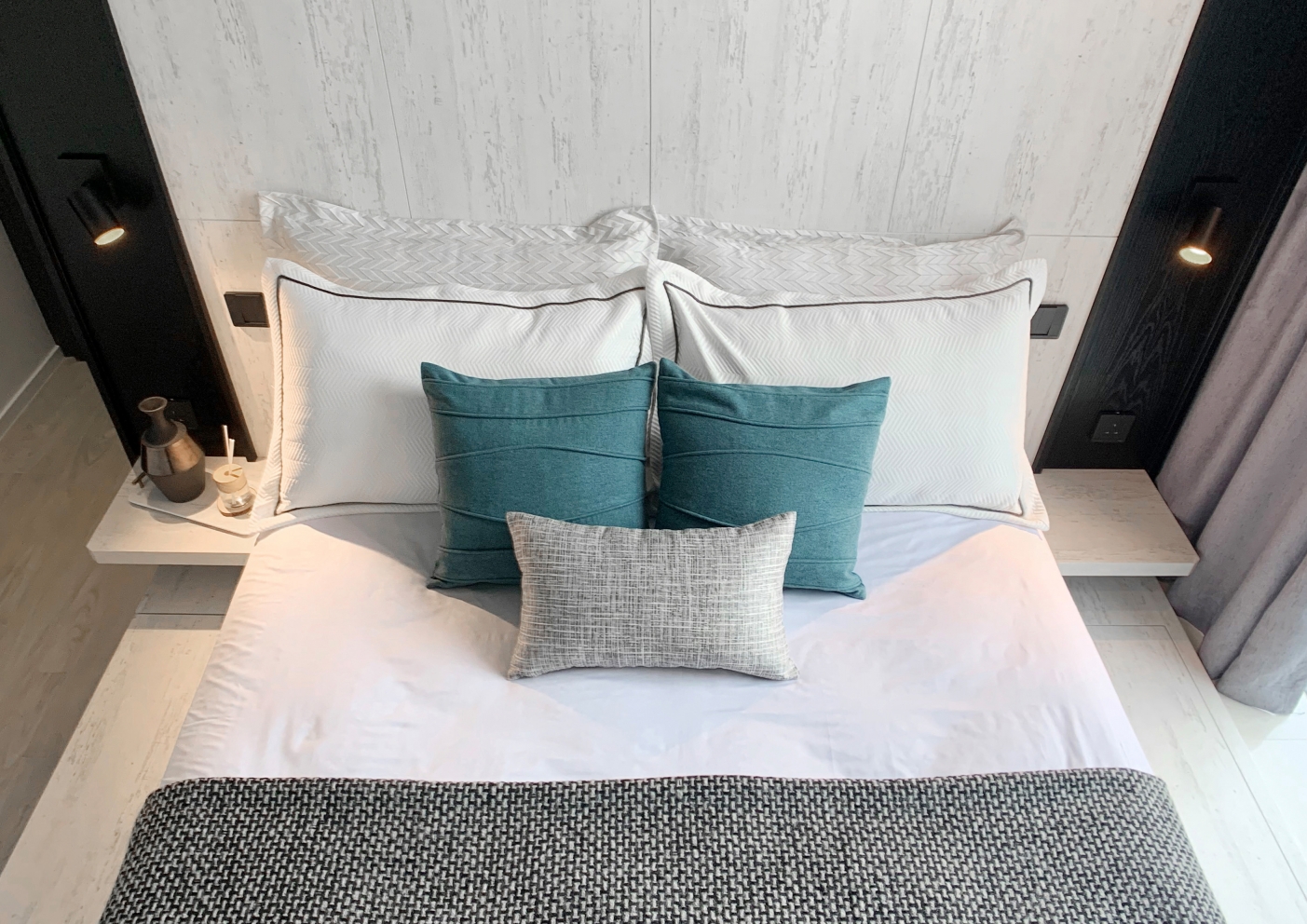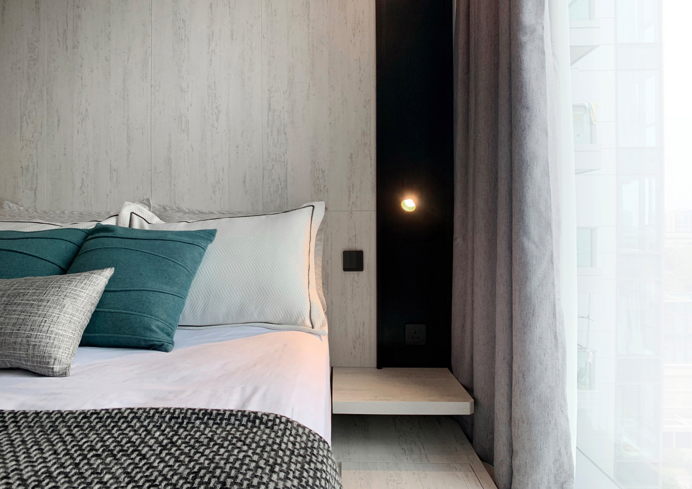 The master bedroom adopts a comfortable and contemporary design. The lighting is relatively not too bright, and the spotlights on both sides enhance the atmosphere.