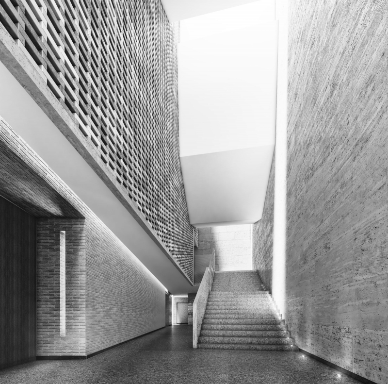 This building promotes a warm atmosphere in the nature of its materials, using the apparent partition as the main material of the project for its nobility and humility, predominating in public spaces and facades absorbing the noise generated by prayer where the position in which the partition is creates a unique skin for each space where it is applied; it is also combined in some spaces with marble in walls and floors.