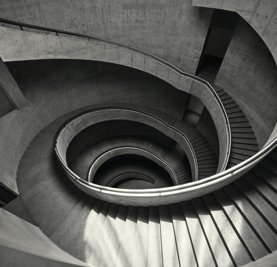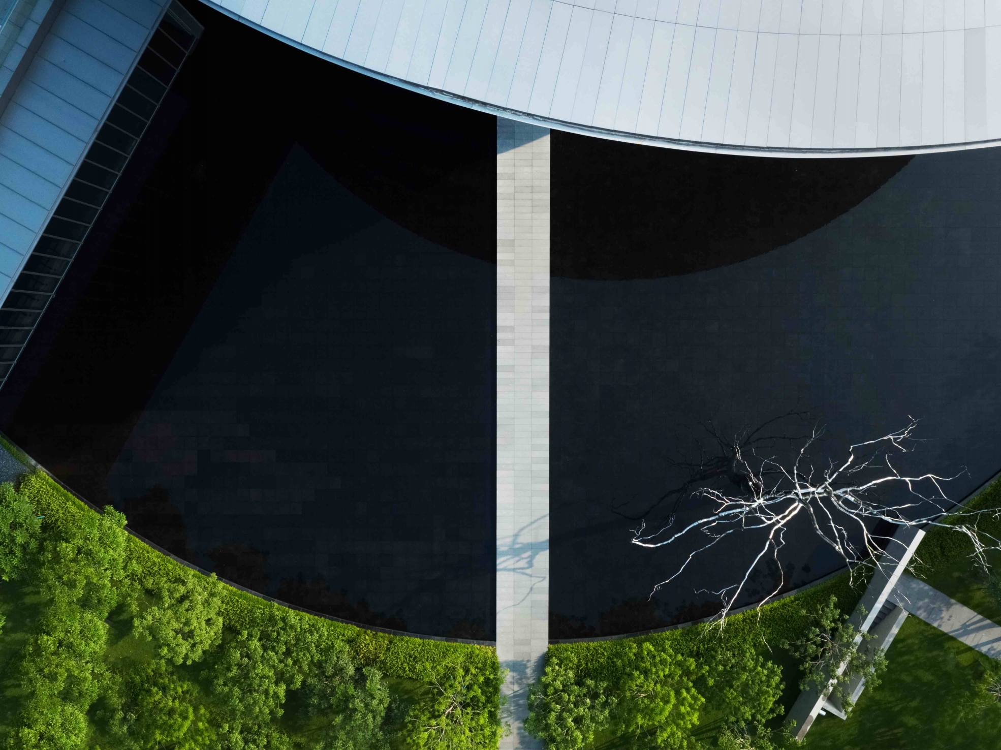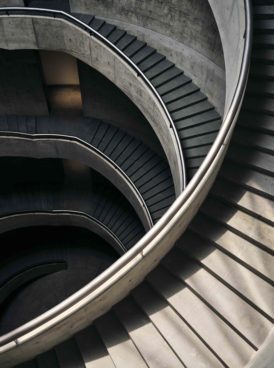 The design of HEM’s architecture pursues the philosophy of spatial integration, involving geometrical design elements - square and circle - to create a sense of contrast. Tadao Ando challenges the idea of “dynamic geometry” in the design. Different size of circles expanded to the outside, creating a sense of tension and rhythm. These circles constructed the space of the building through ripple-like expansion: from top to bottom, with the overlapping of four circles.