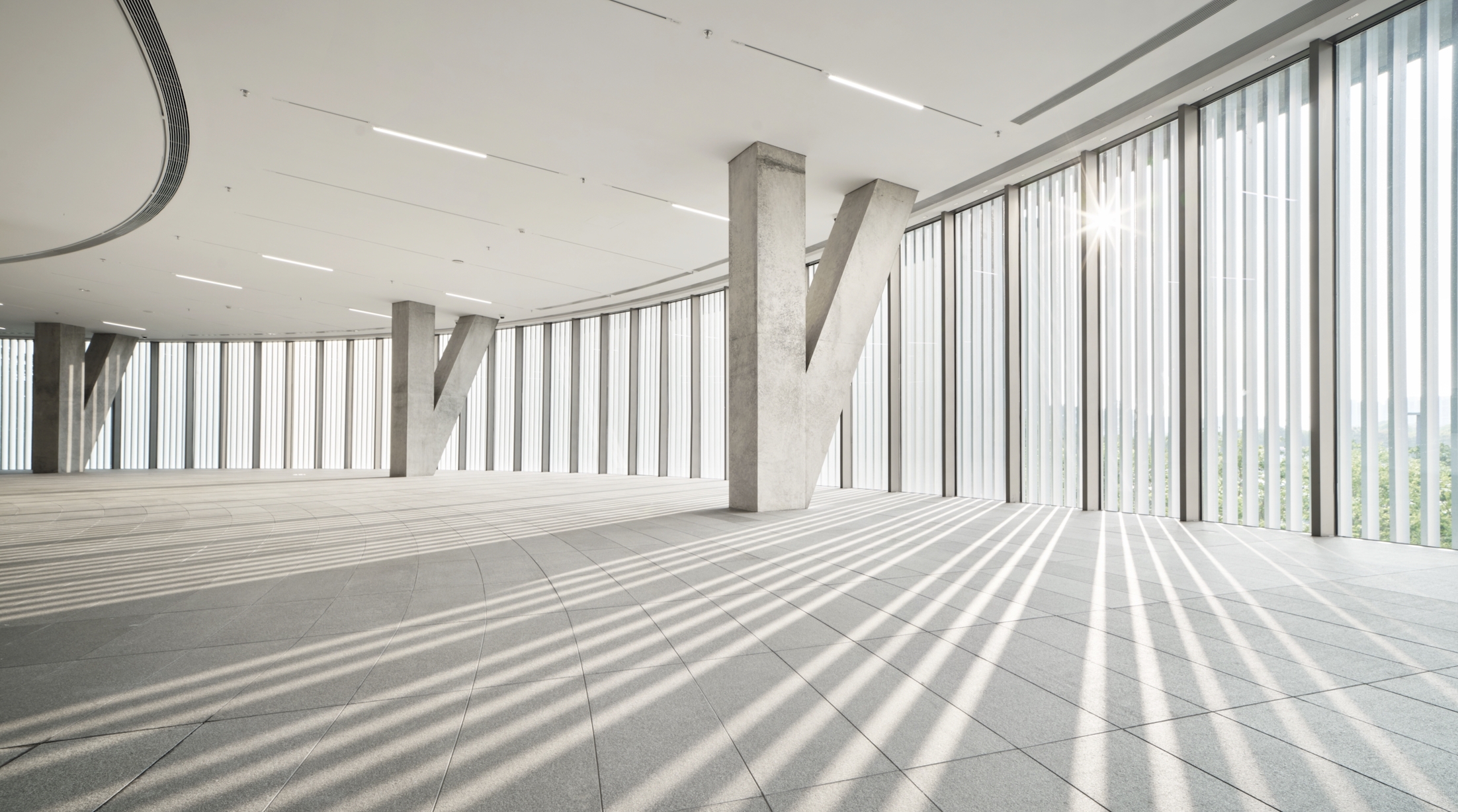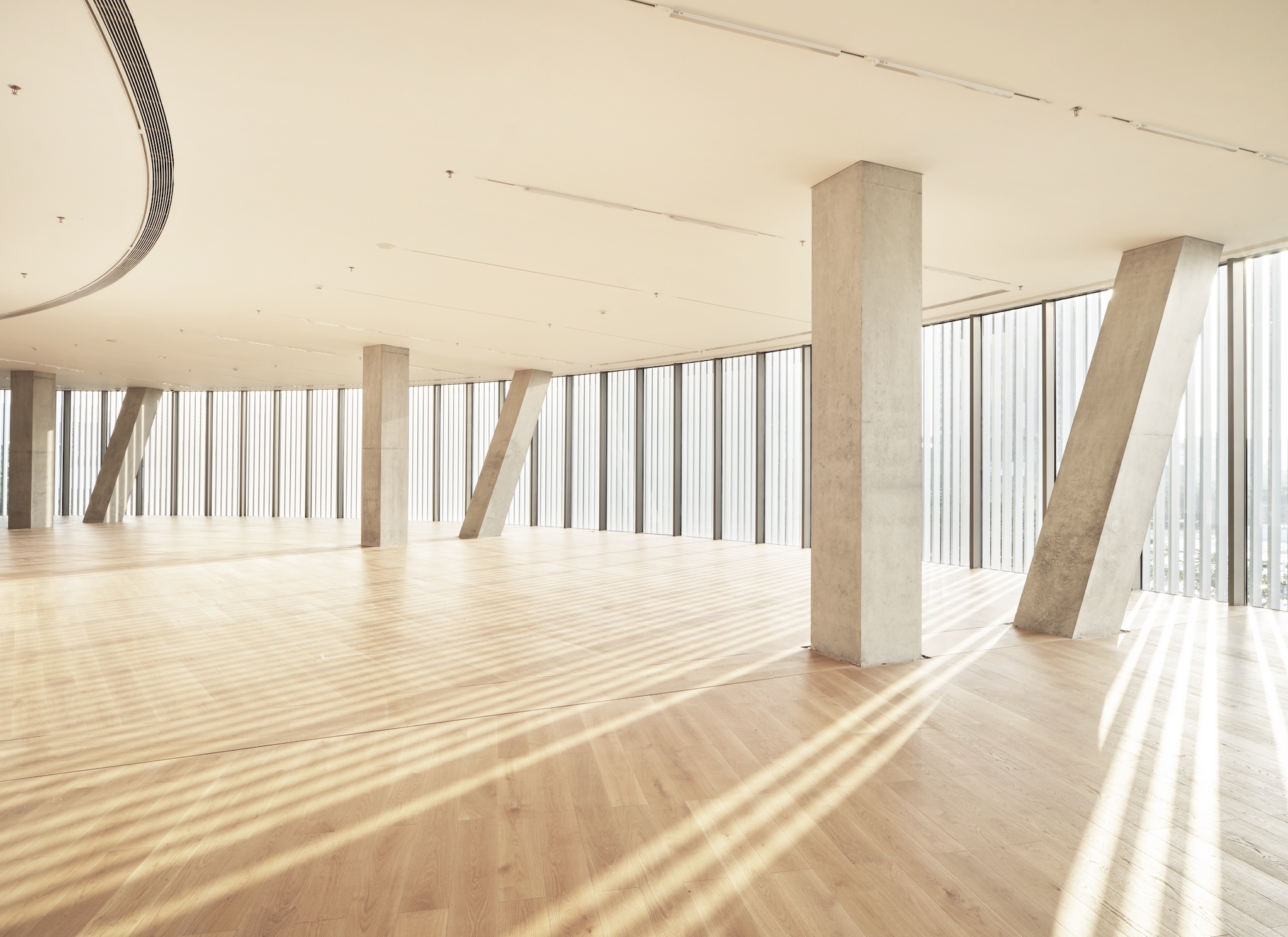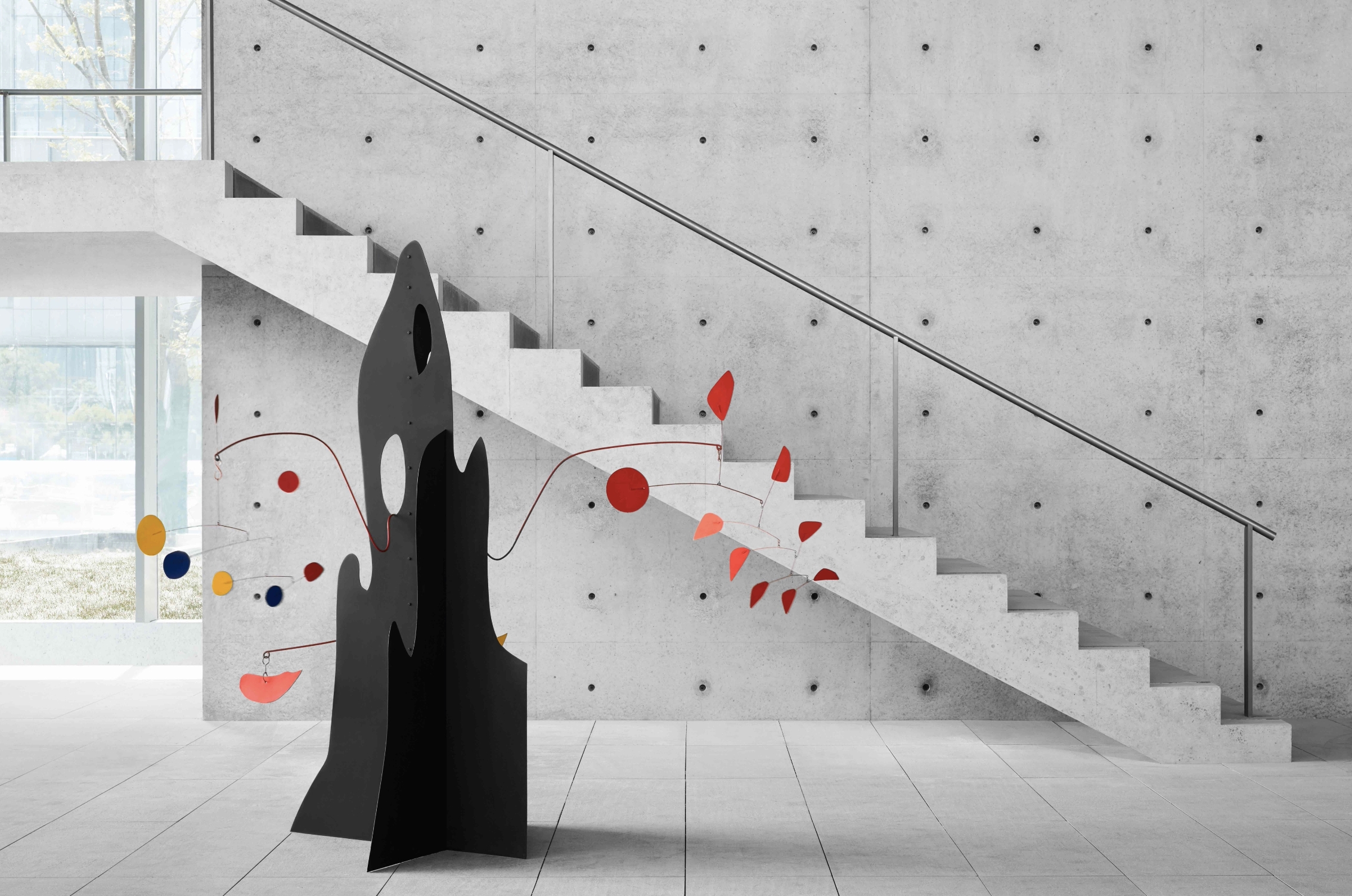 The design of HEM’s architecture pursues the philosophy of spatial integration, involving geometrical design elements - square and circle - to create a sense of contrast. Tadao Ando challenges the idea of “dynamic geometry” in the design. Different size of circles expanded to the outside, creating a sense of tension and rhythm. These circles constructed the space of the building through ripple-like expansion: from top to bottom, with the overlapping of four circles.