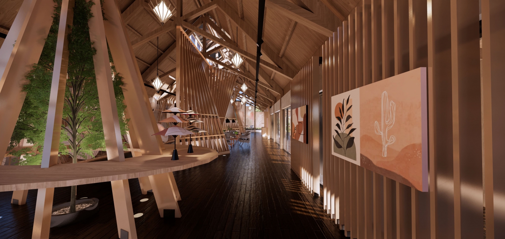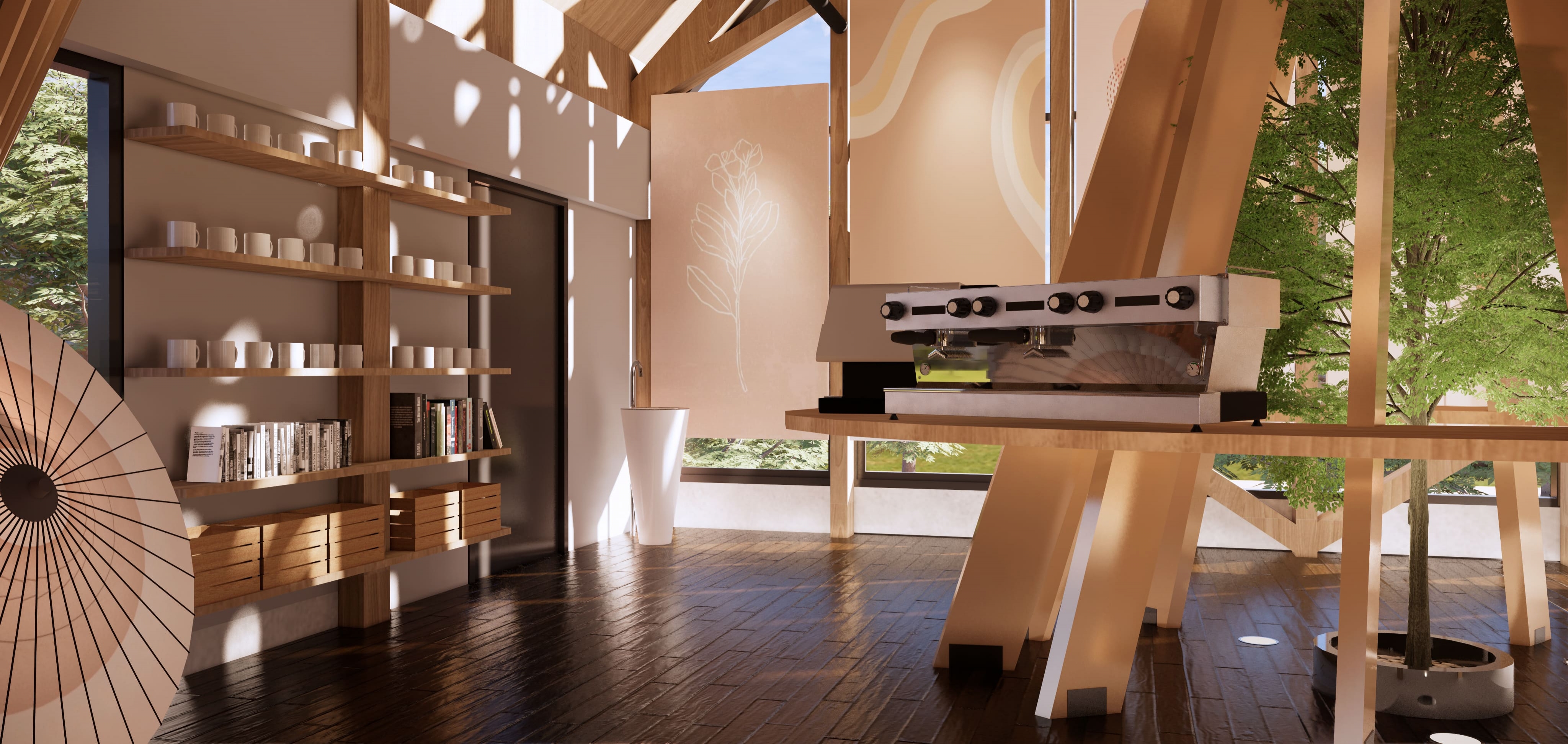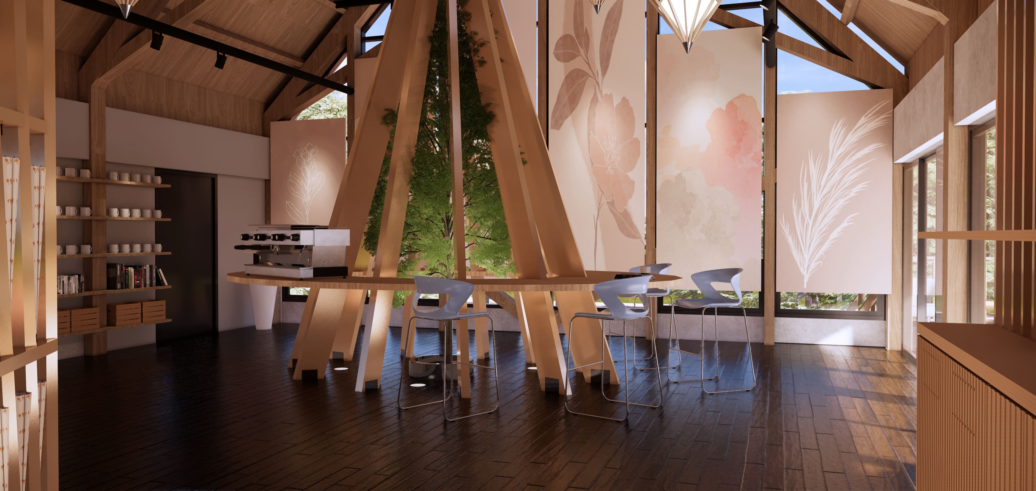 This shop is located in the suburb area.The building is surrounded by forest. By early afternoon sunlight. Which is more quiet and slow-pace.The focus of interior design is to show the effect of modeling cabinets.This design is inspired by the backbone of an oiled umbrella.The beautiful and orderly modeling section is formed by the arrangement of wood skeletons.The continuous pattern and product could smoothly merges into the display stands inside the space. Furthermore, soft light has enhanced the beauty of this design and also created a warm and relaxing environment.