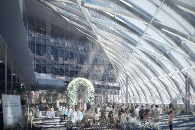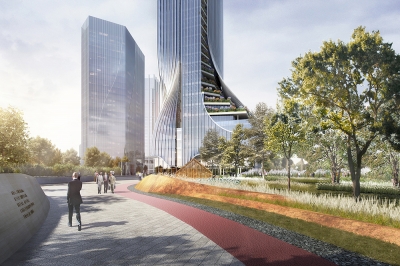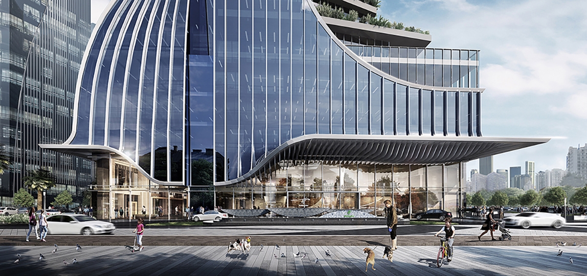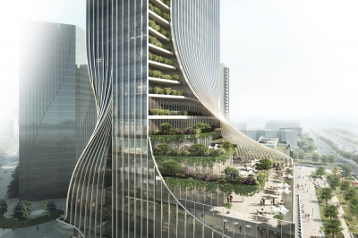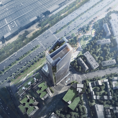 The design of the building structure makes full use of the mechanical beauty of the building form. Through the relationship between the two supporting building blocks and the core tube embedded in the bite, and the precise control of the aspect ratio of the building and the core tube, the overall structure Stability and wind resistance, while creating a transparent space for use from the north to the south. The curved surface treatment of the facade and roof not only effectively reduces the wind pressure load of the high-rise, but also saves the whole building a lot of cost compared to the traditional tower structure.