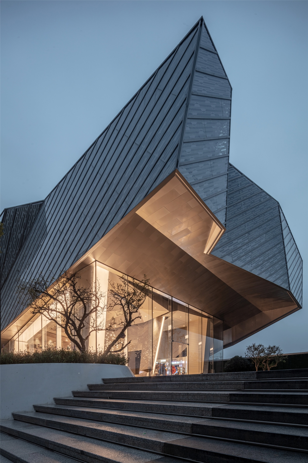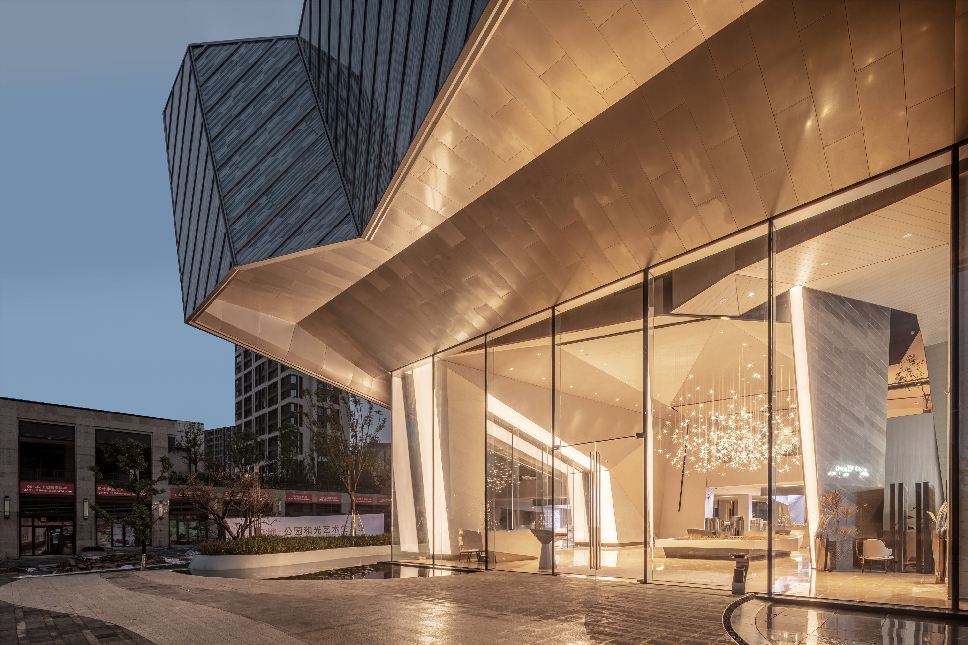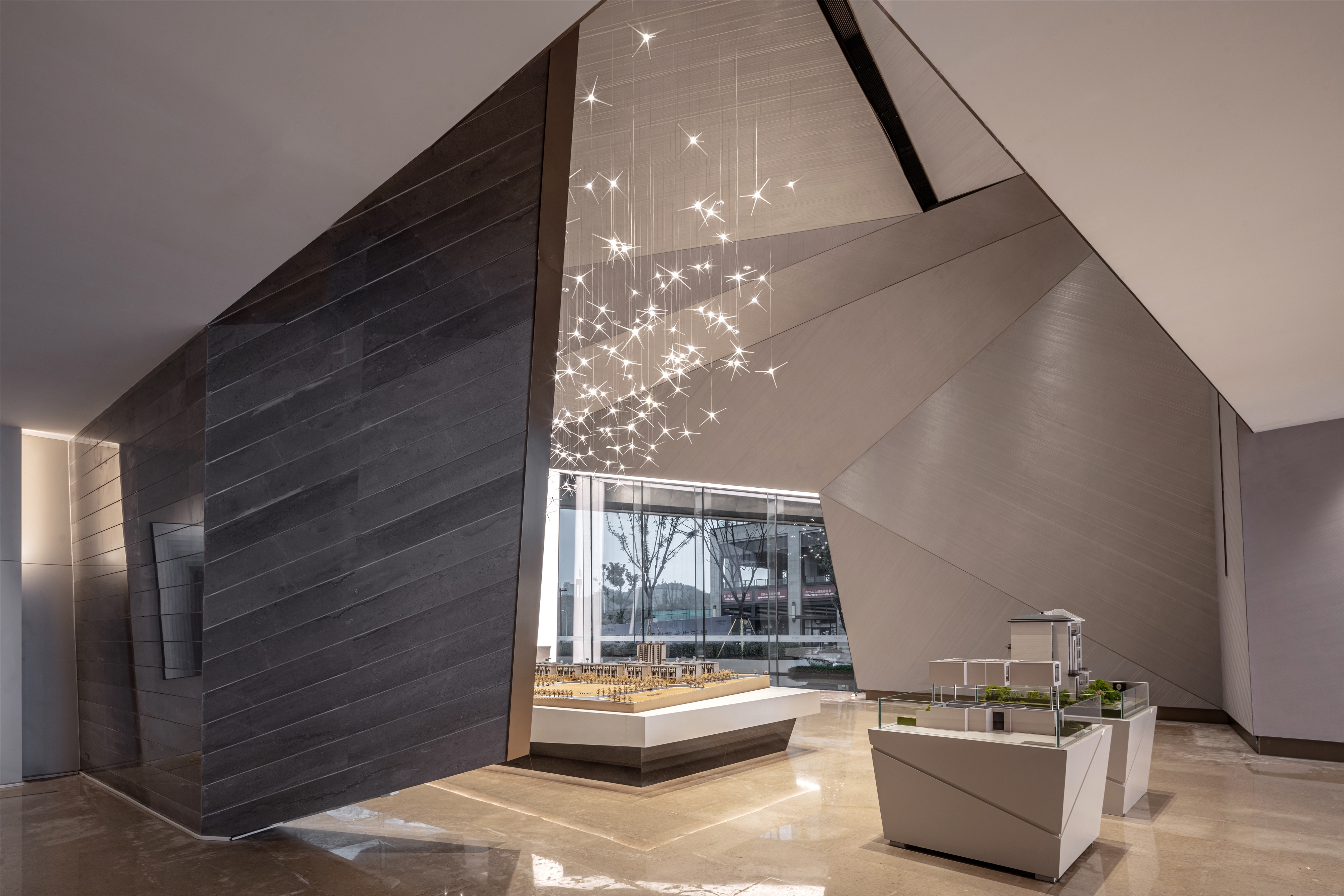 The project is a community sales center located in Chongqing, China. The designer respects the urban form of Chongqing as a mountain city.It is designed according to the original rock-like mass of the building, taking the form and artistic conception of "cave" as its prototype, and at the same time taking the most primitive way of living of mankind, which is living in a cave, as its design concept, forming a wonderful atmosphere like cave dwelling.