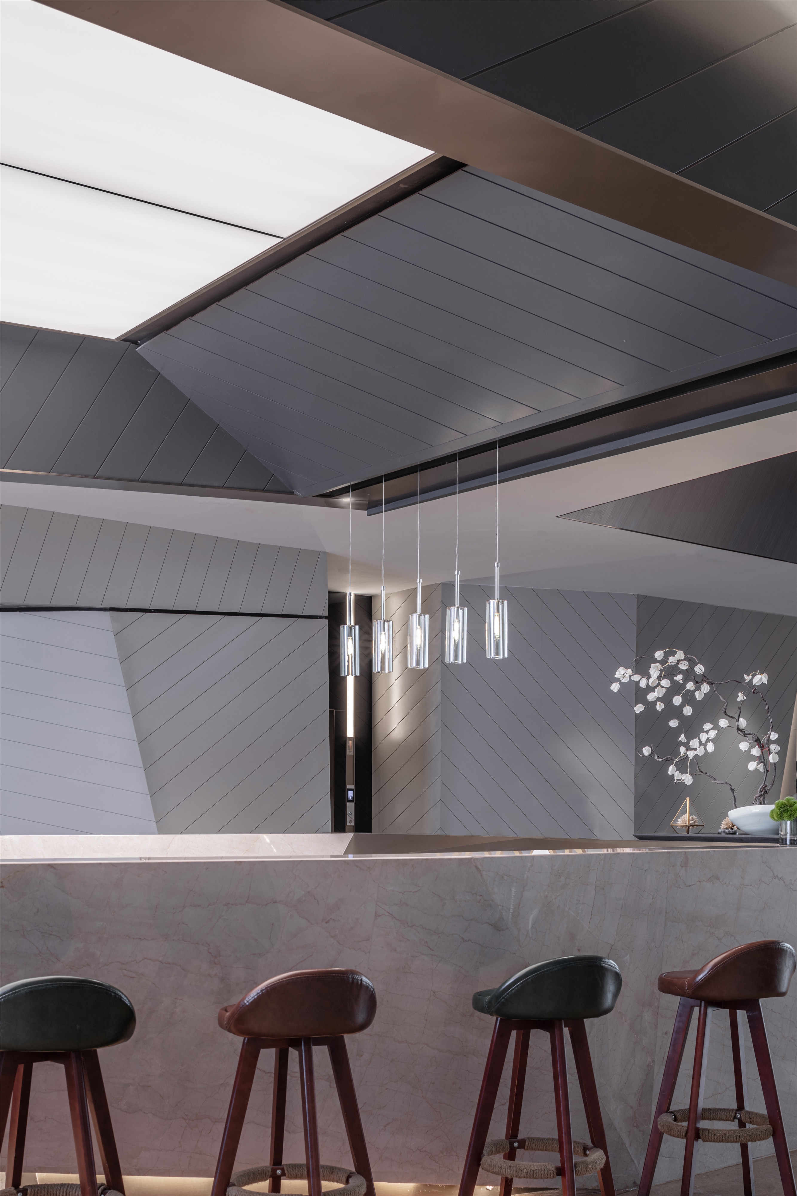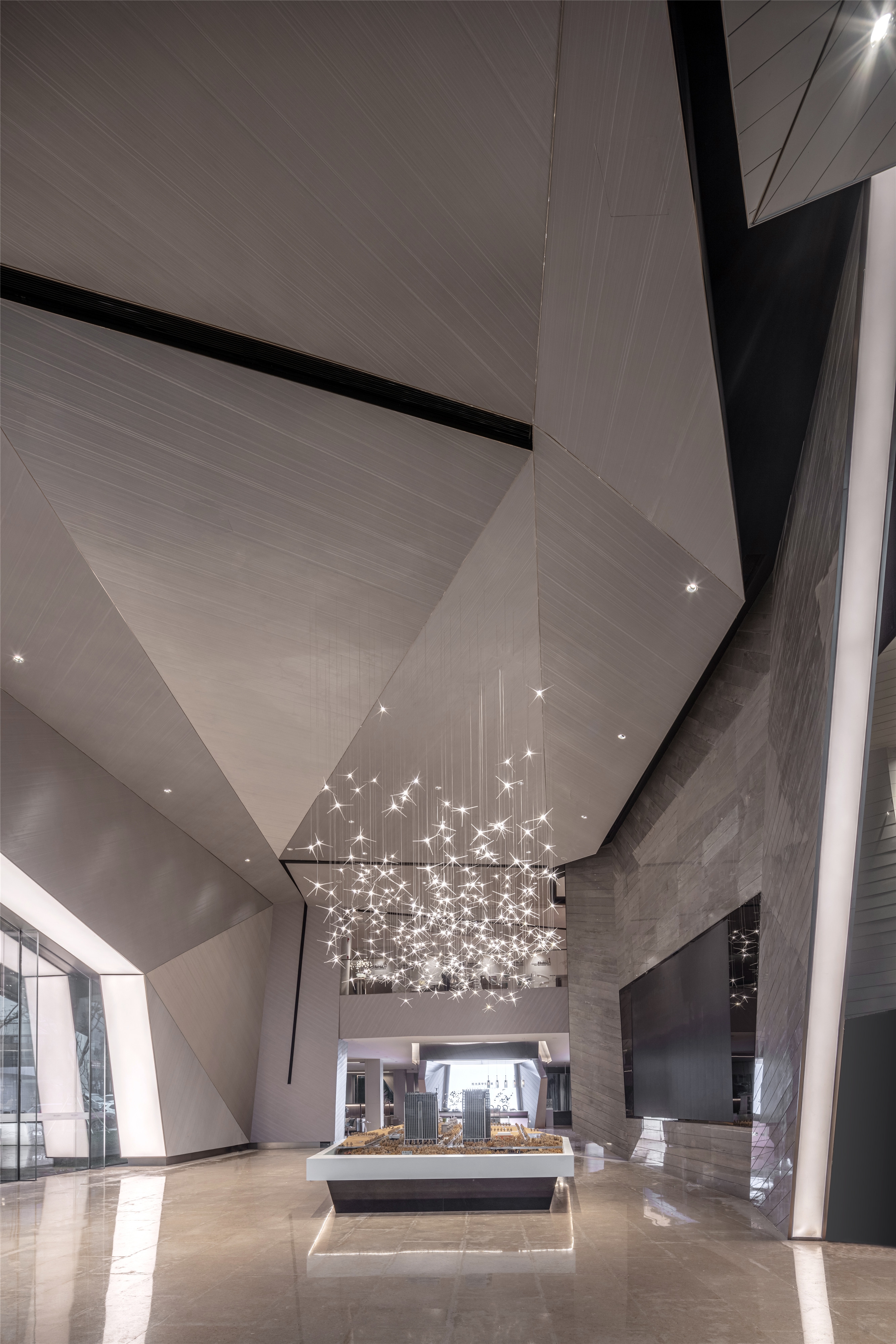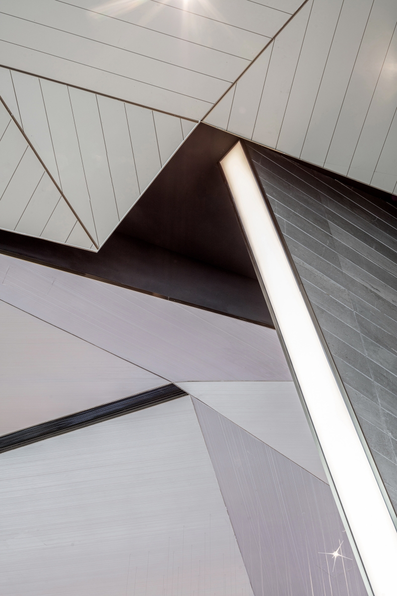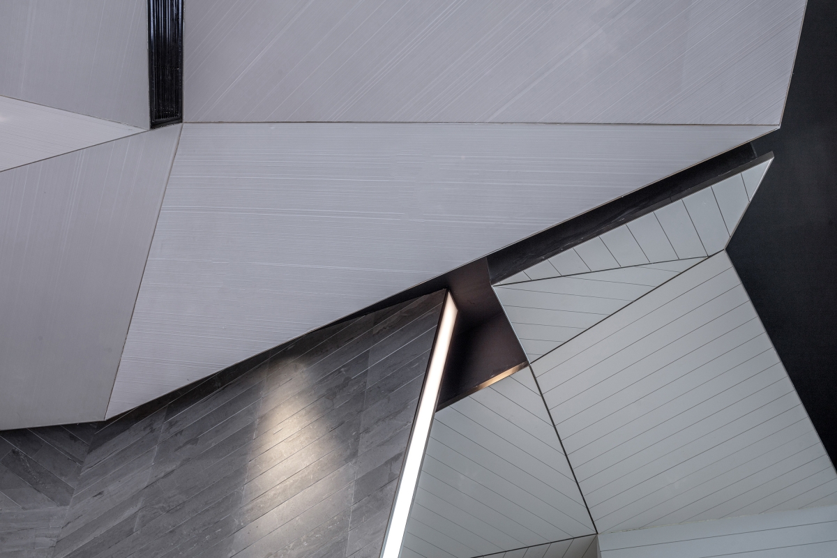 The designer used a fluorocarbon spraying process to simulate the texture of mountains and rocks. The three-dimensional shape of the wall looks like traces left by manual excavation, enriching the sense of experience