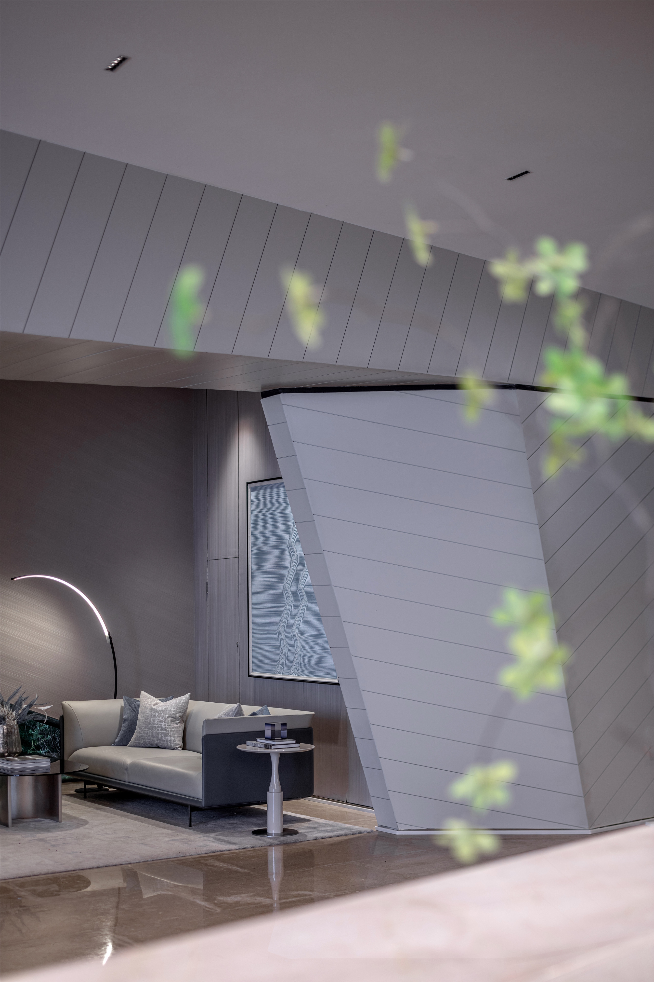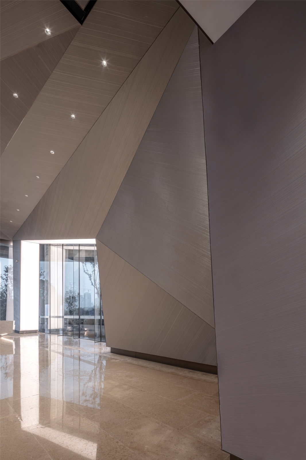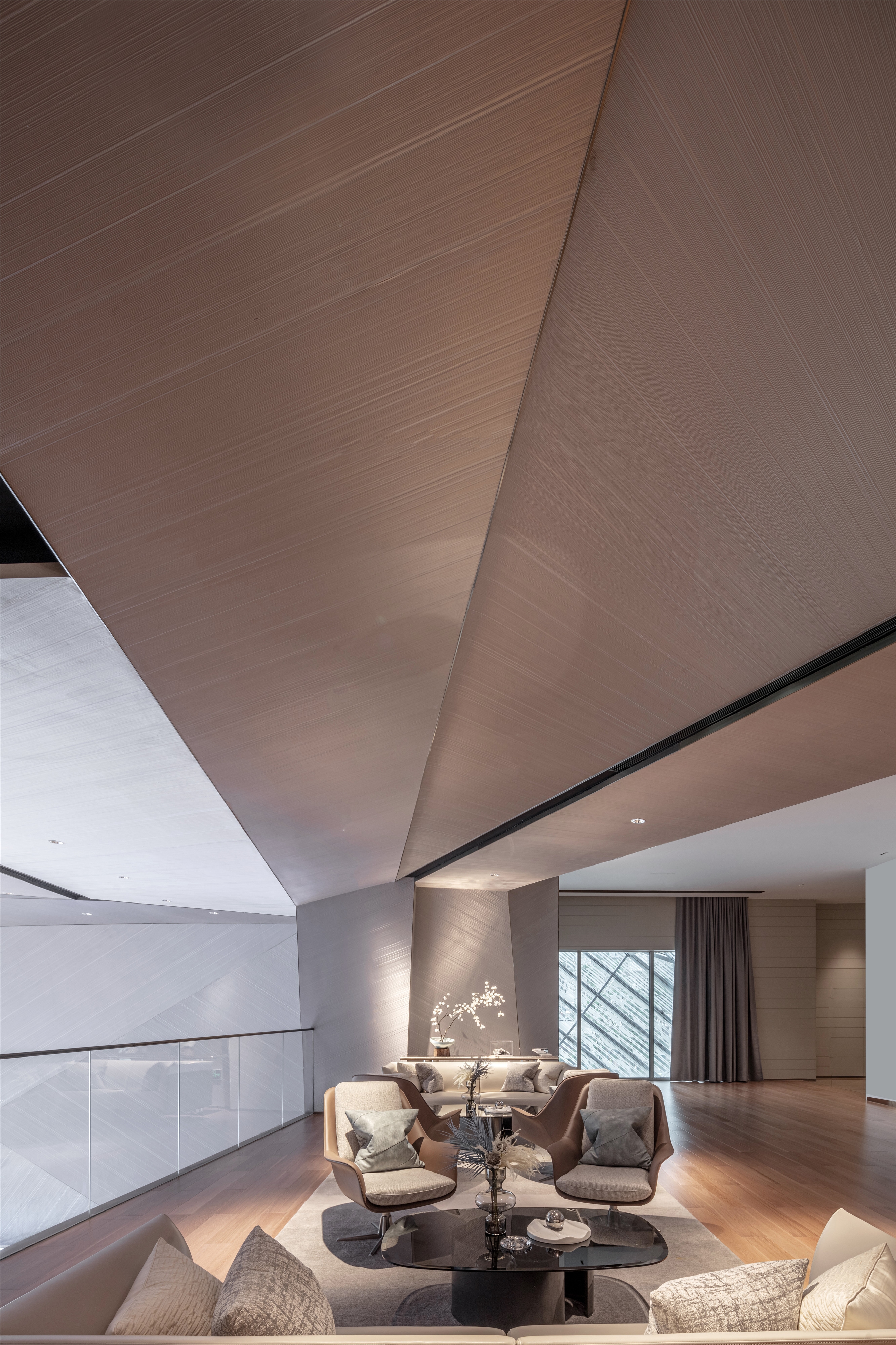 The designer used a fluorocarbon spraying process to simulate the texture of mountains and rocks. The three-dimensional shape of the wall looks like traces left by manual excavation, enriching the sense of experience