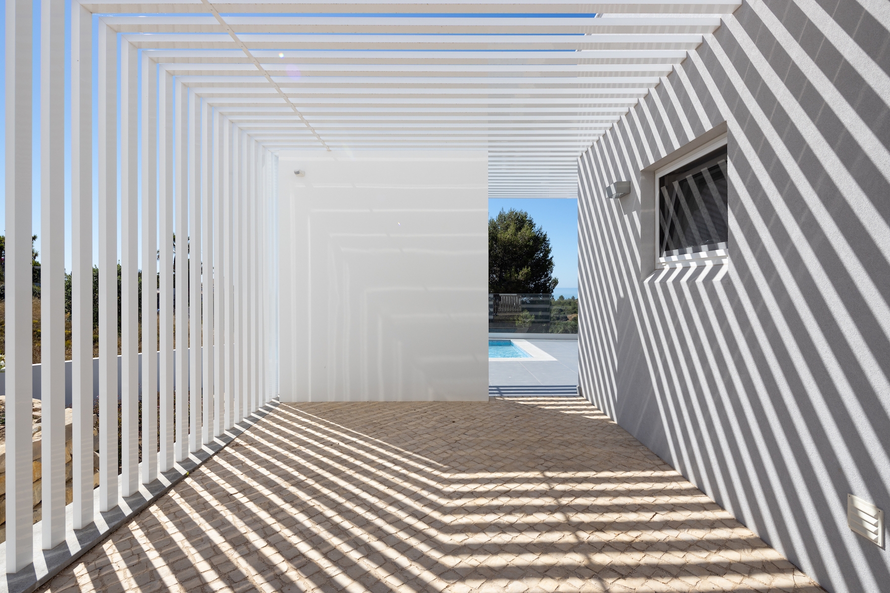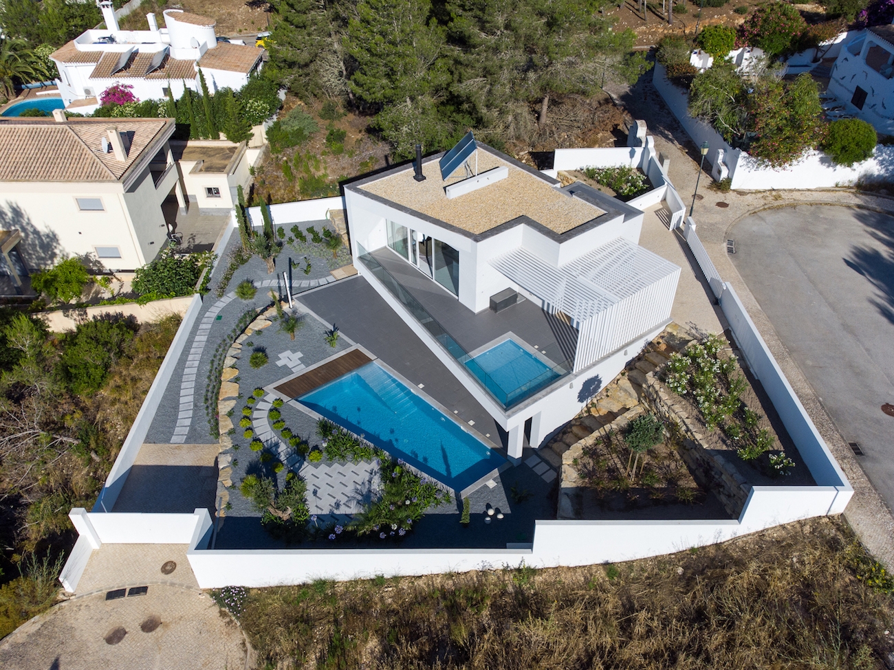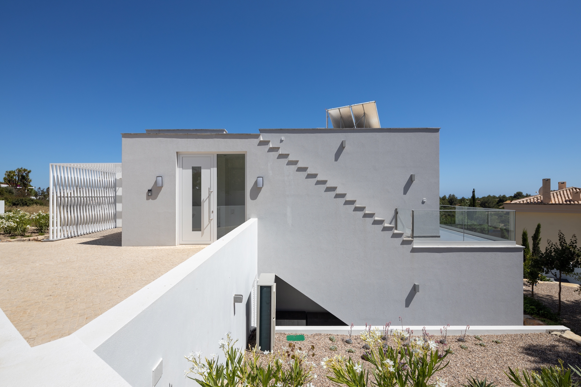 Nestled on a hill amongst wild thyme and rosemary in the picturesque landscape of the Algarve coast, this energy-efficient house was built for a retired German couple in 2019/20. Following CORE Architect’s signature detailed bioclimatic study, which we carry out to identify the prevailing winds and maximum solar impact, our team set about creating a design that would transform the terrain into an oasis of wellbeing over two floors, providing a comfortable, modern pad for the couple. Applying Passive House principles, CORE also made use of environmentally friendly building materials, such as clay plaster and cork insulation, cutting down on the building's carbon footprint and the toxicity to which the couple would be exposed. The design required the house to be set into a steep slope, with the surrounding garden adapted around it. Open façades looking out over panoramic views of the sea to south was designed to sport large, double-glazed windows with built-in sun protection to allow natural light to flow in to the house.Working with and within nature, which means every project is carefully designed to perform the most effectively and and efficiently within its specific surroundings.