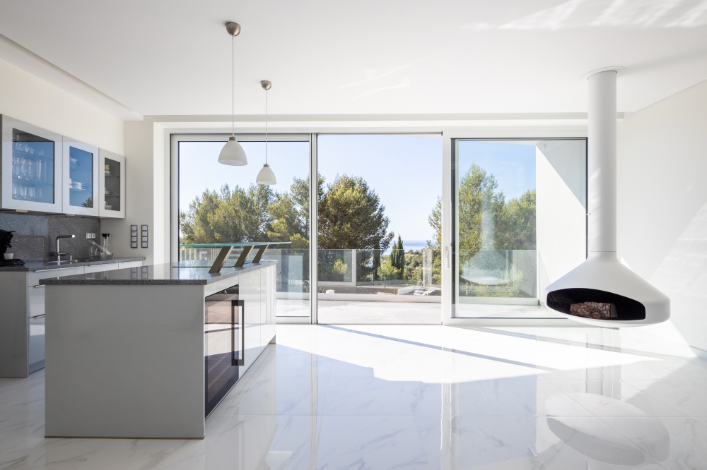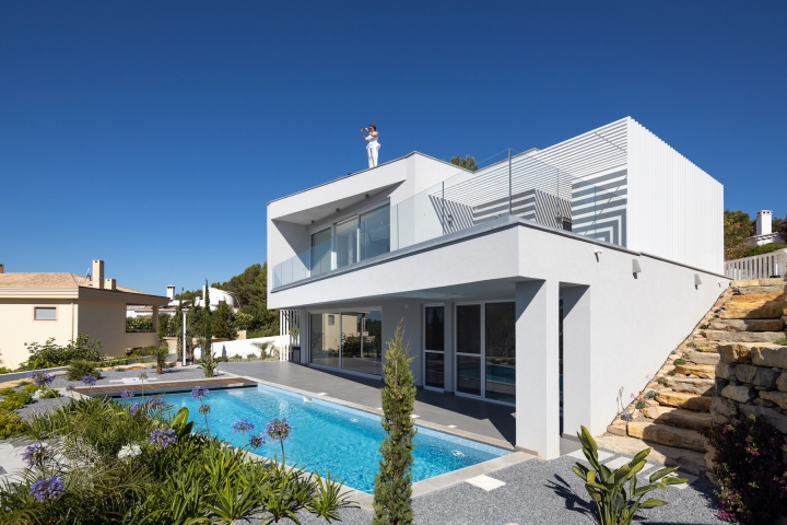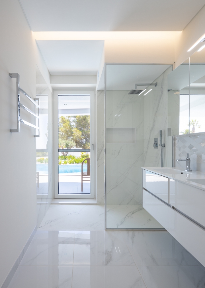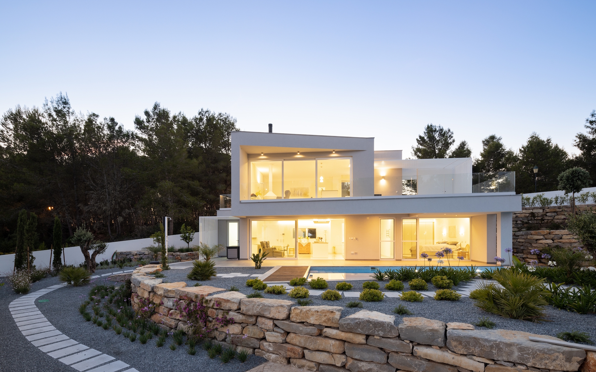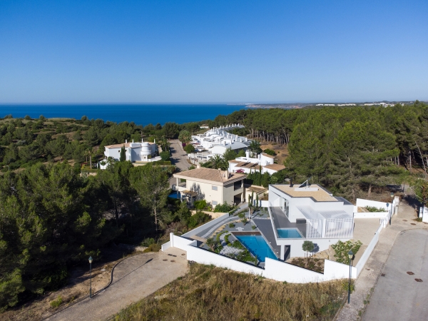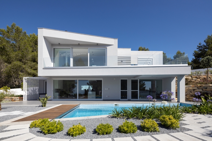 Nestled on a hill amongst wild thyme and rosemary in the picturesque landscape of the Algarve coast, this energy-efficient house was built for a retired German couple in 2019/20. Following CORE Architect’s signature detailed bioclimatic study, which we carry out to identify the prevailing winds and maximum solar impact, our team set about creating a design that would transform the terrain into an oasis of wellbeing over two floors, providing a comfortable, modern pad for the couple. Applying Passive House principles, CORE also made use of environmentally friendly building materials, such as clay plaster and cork insulation, cutting down on the building's carbon footprint and the toxicity to which the couple would be exposed. The design required the house to be set into a steep slope, with the surrounding garden adapted around it. Open façades looking out over panoramic views of the sea to south was designed to sport large, double-glazed windows with built-in sun protection to allow natural light to flow in to the house.Working with and within nature, which means every project is carefully designed to perform the most effectively and and efficiently within its specific surroundings.