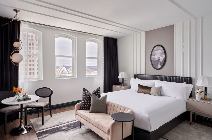 This renovated hotel’s design chronicles the evocative history of the building it calls home – from cigar-cured rooms of a members-only social club to cocktails and parties with presidents and politicians. This history, combined with the structure’s recognizable and celebrated architecture, guided designers as they created a modern hotel equipped with charm, comfort and just a hint of intrigue.