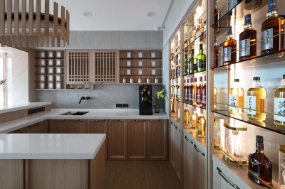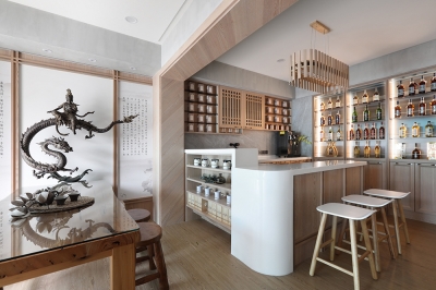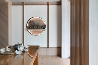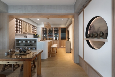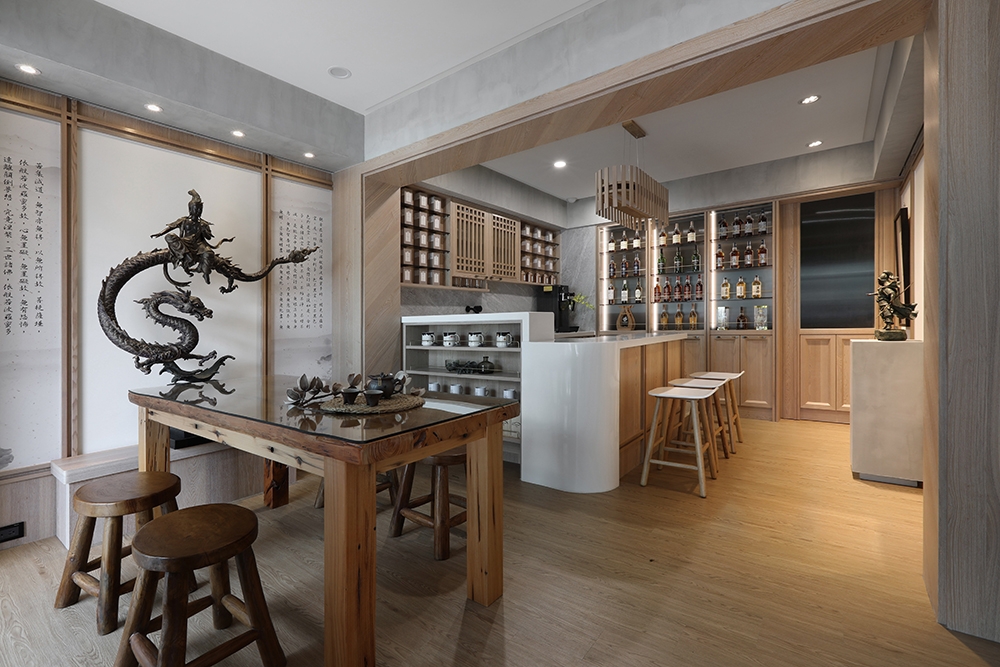 Together with the gentle slope, a more open view is created, also resolving the problem of dampness permeating indoors on rainy days. It features the owner’s favorite—neo-Chinese style and Japanese style.