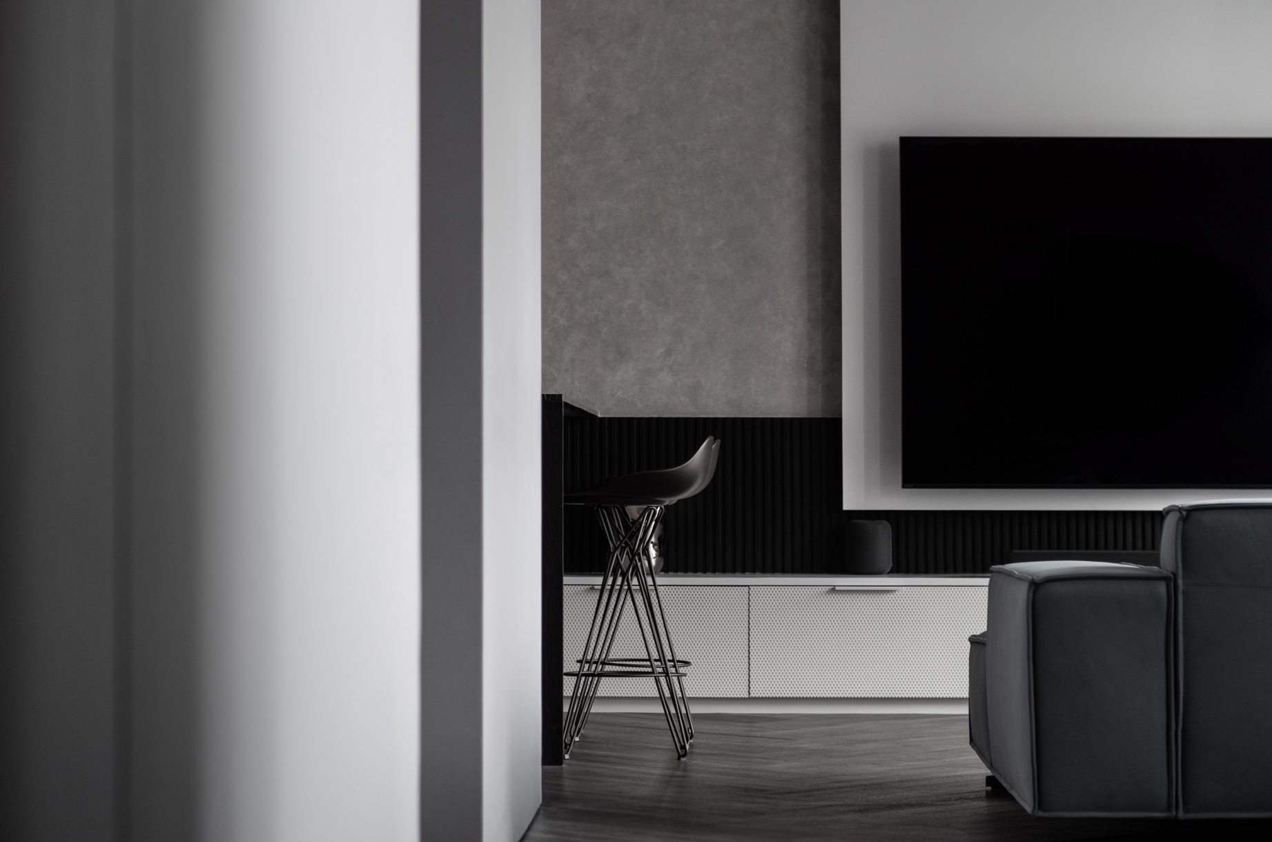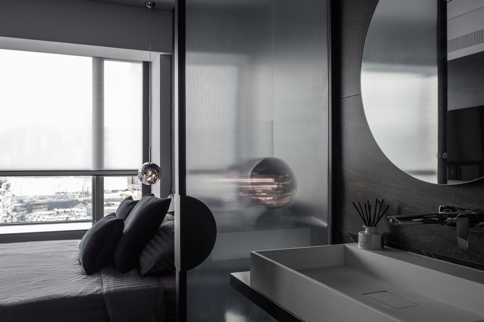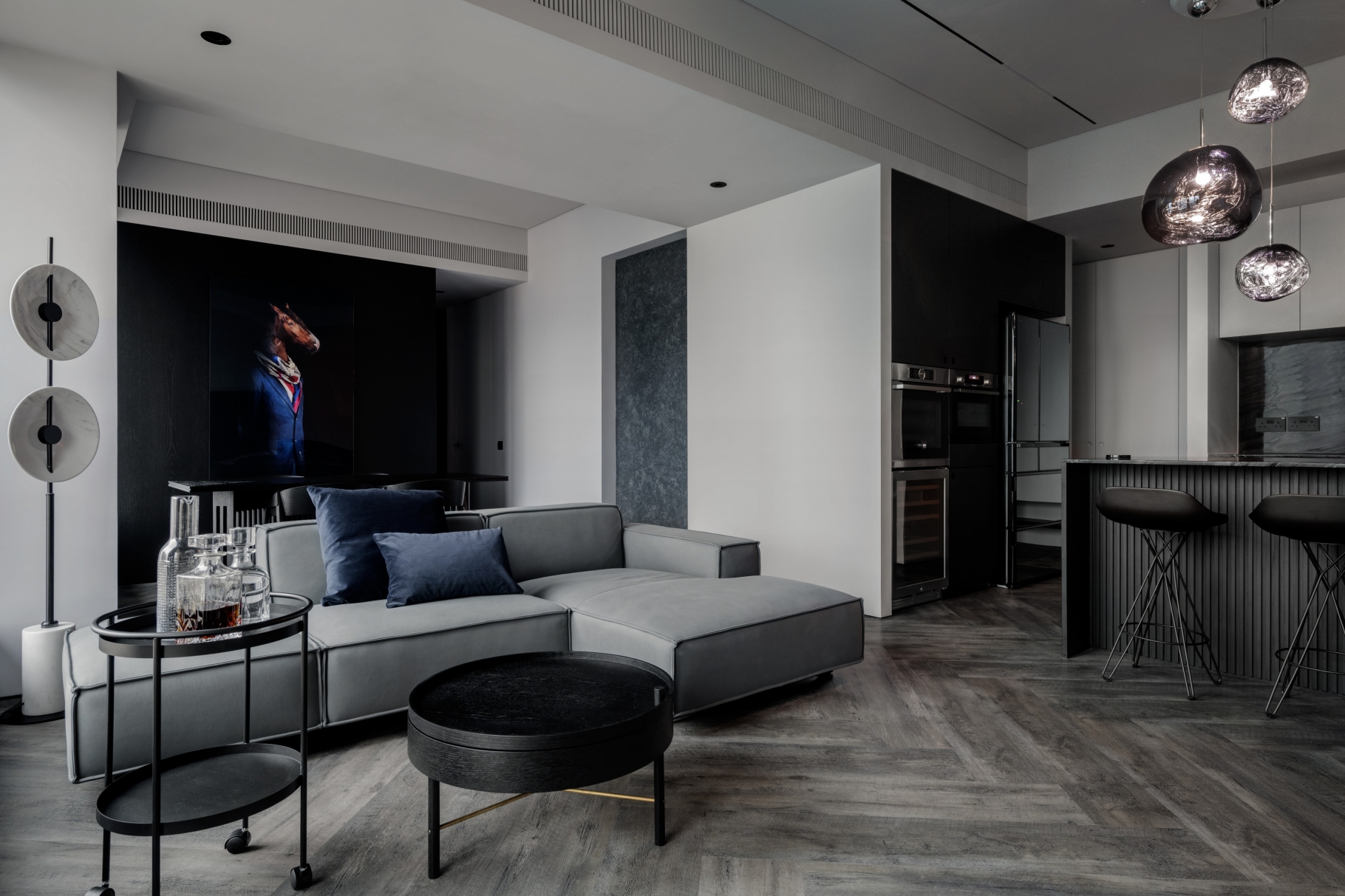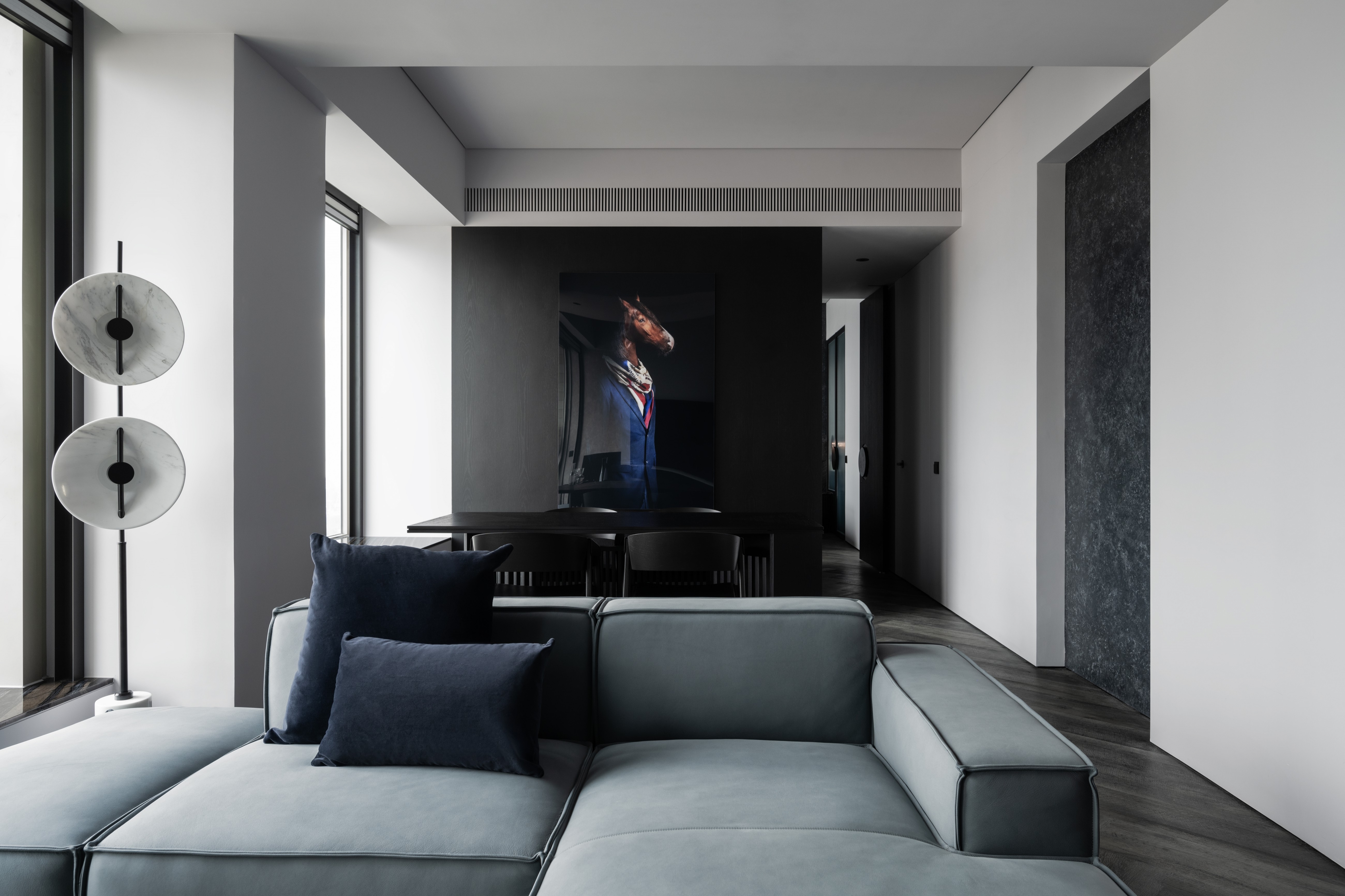 Living area to Master Bedroom are being formed into an open rectangle, corridor is blended and run through different zone, which breaks Inherent thinking on having room in function differentiation. With the open plan, sufficient sunlight is brought into this apartment, depict contrasts and redefine areas with invisible boundary.