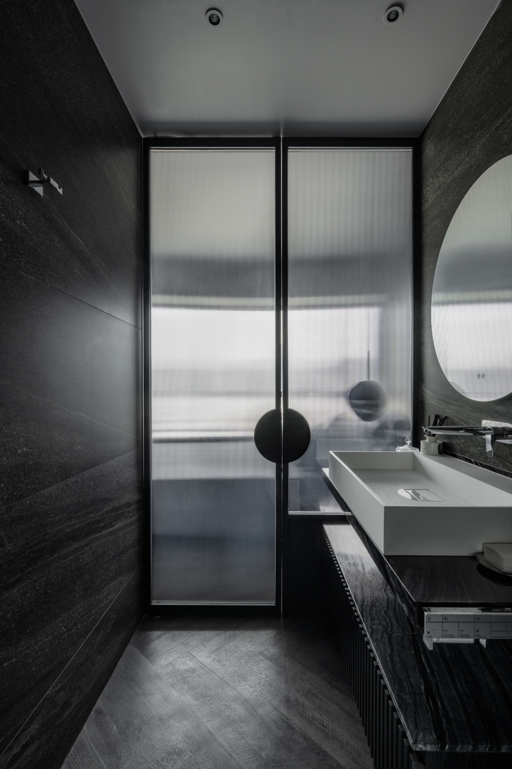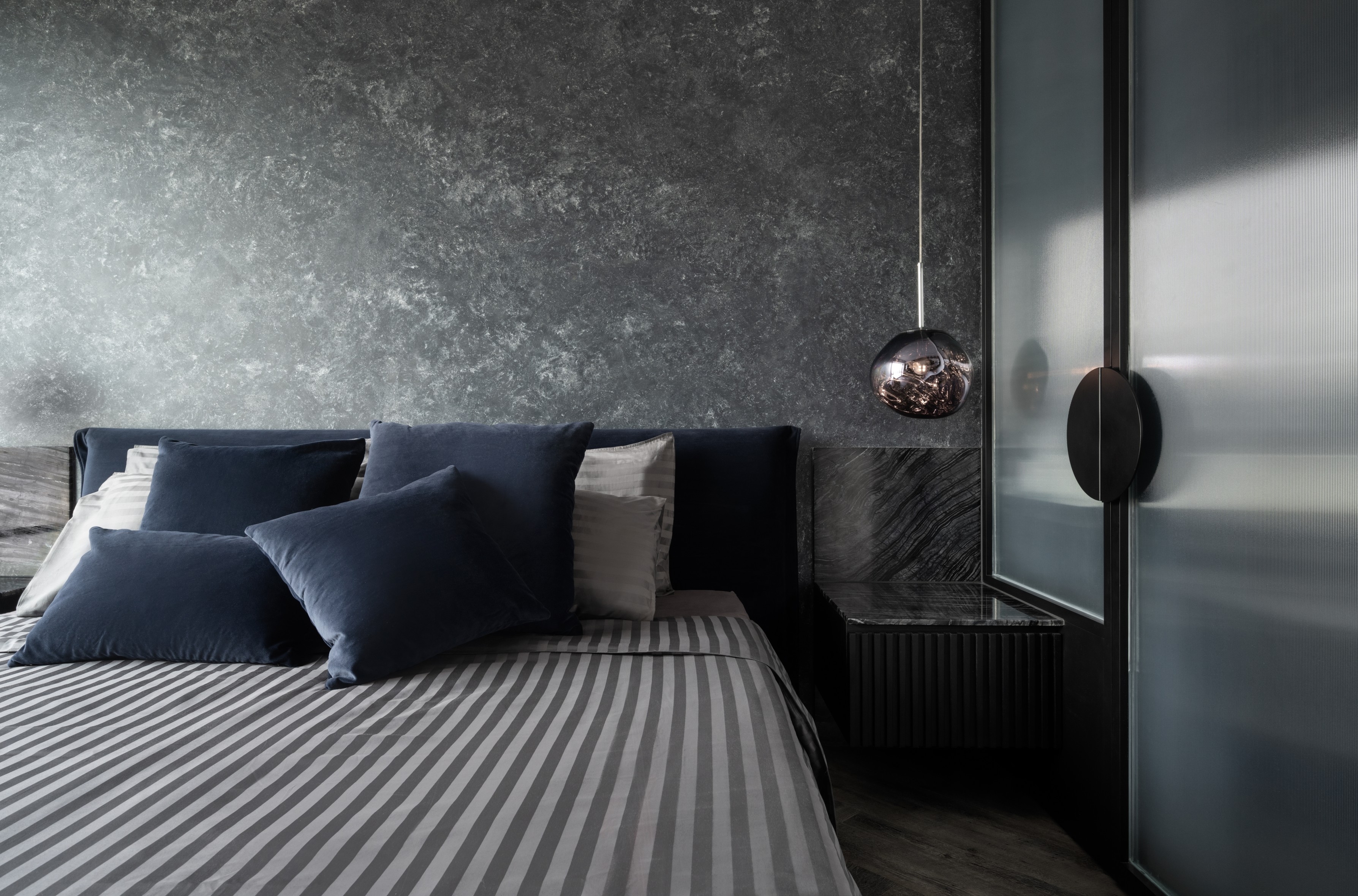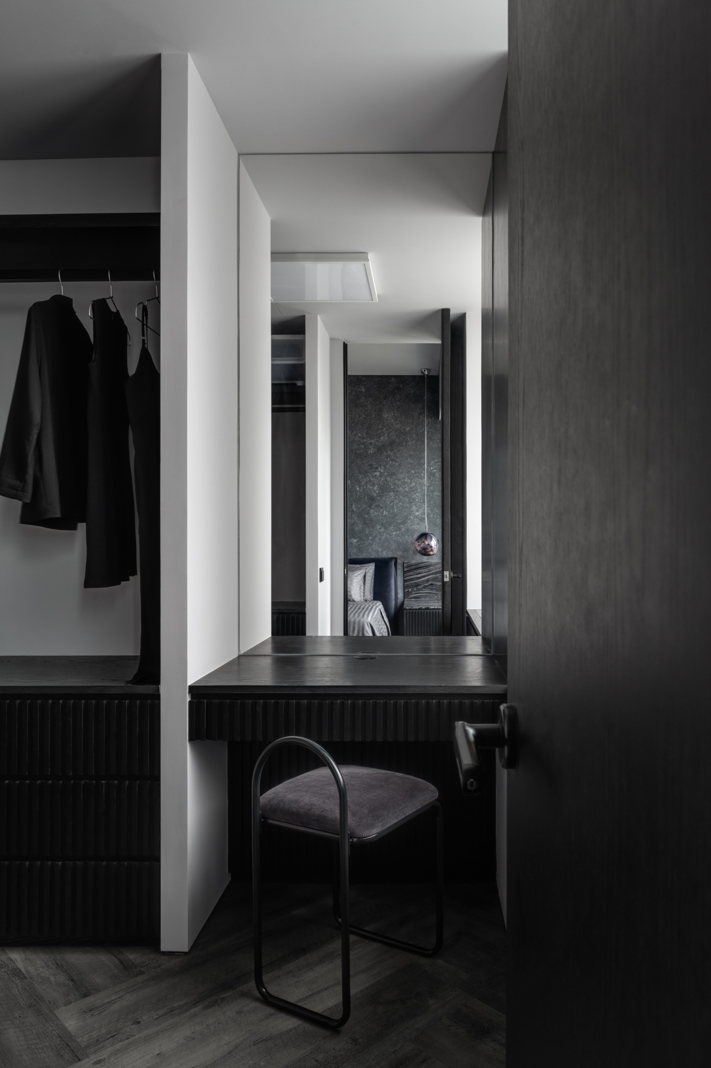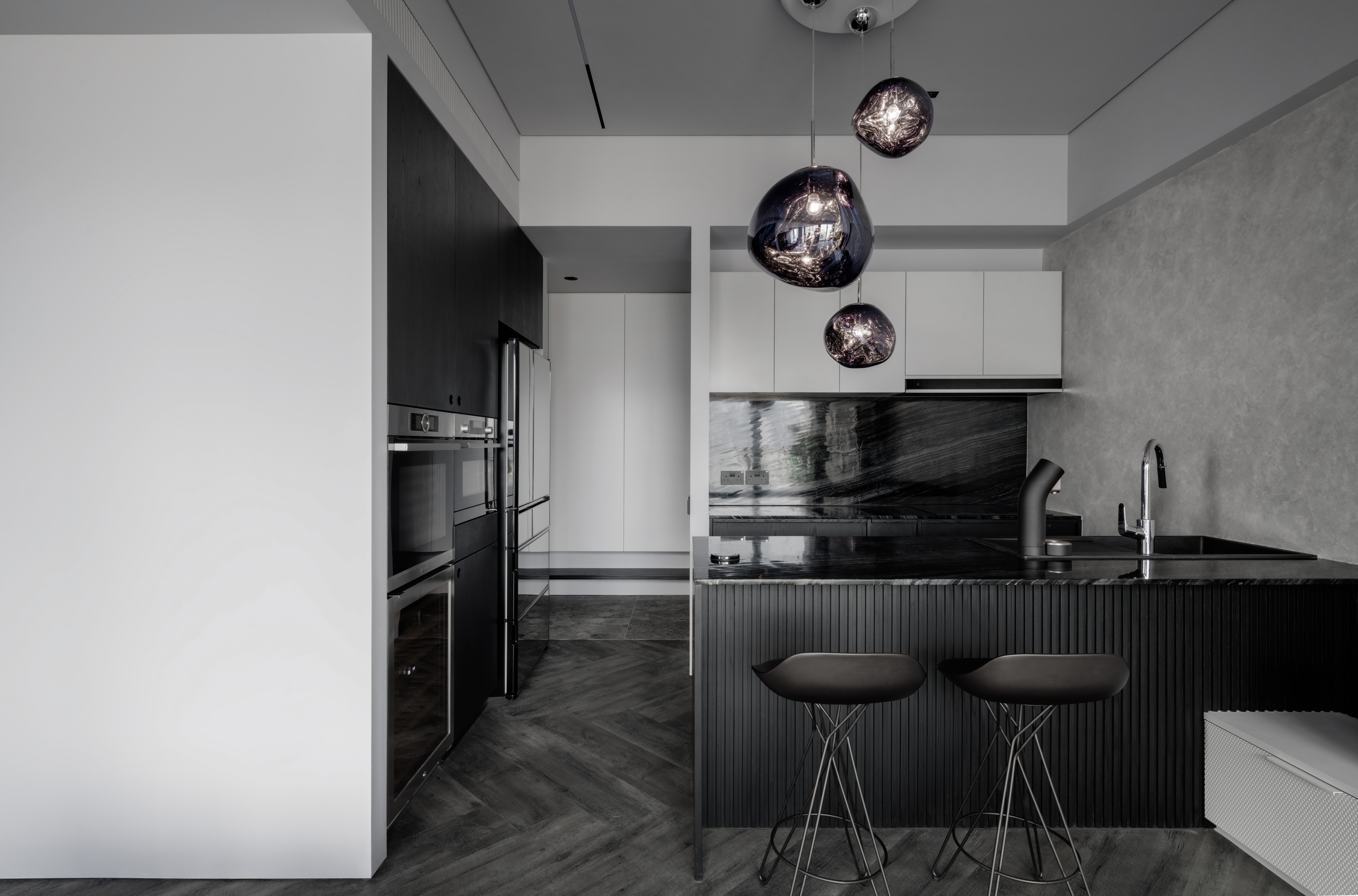 Living area to Master Bedroom are being formed into an open rectangle, corridor is blended and run through different zone, which breaks Inherent thinking on having room in function differentiation. With the open plan, sufficient sunlight is brought into this apartment, depict contrasts and redefine areas with invisible boundary.