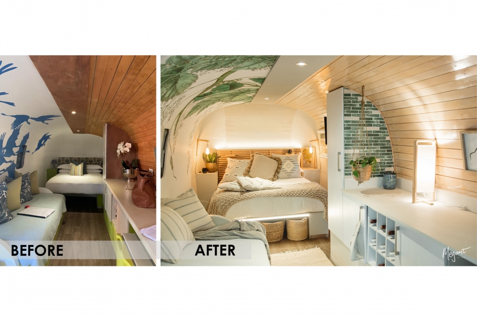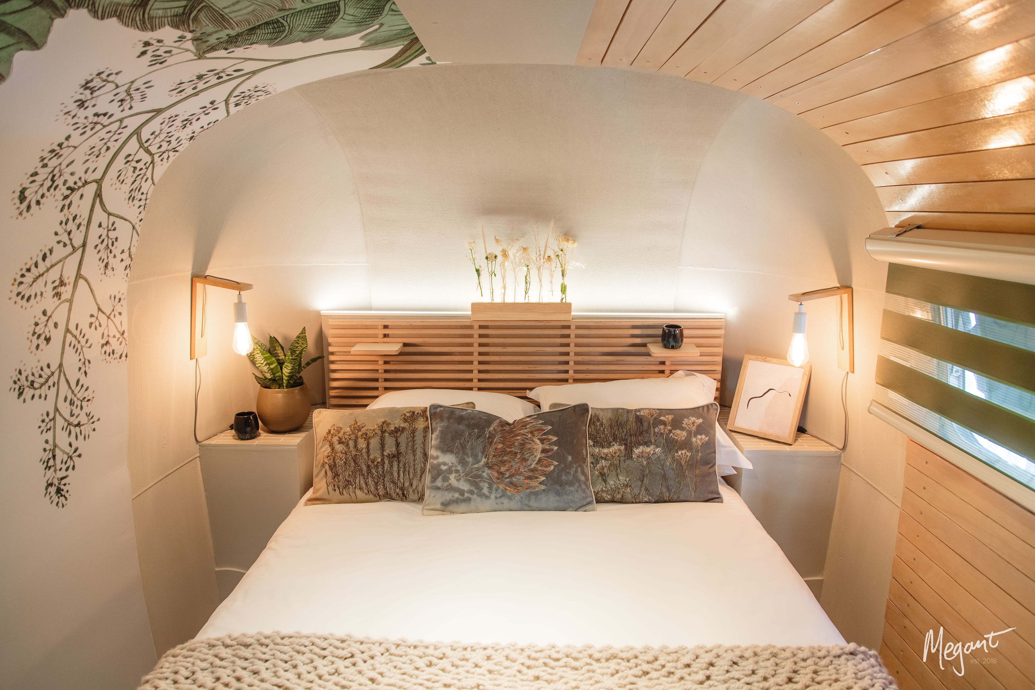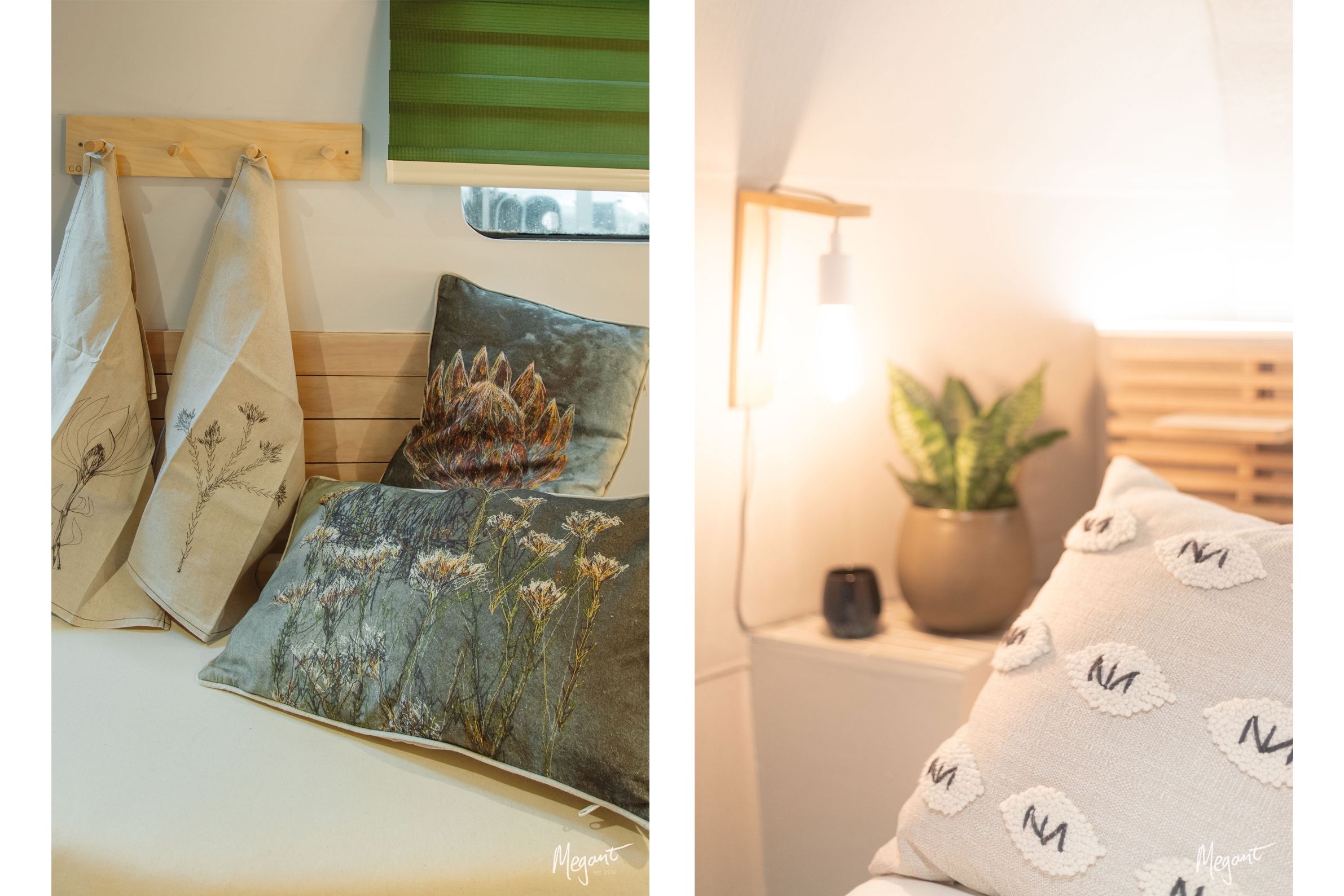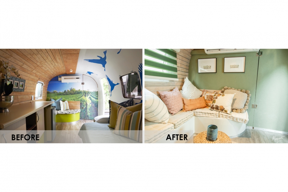 Soft colours, layered textures and a celebration of South African interior products make up the cosy and luxurious interior of this renovated Airstream Trailer that has a Cape Winelands theme .