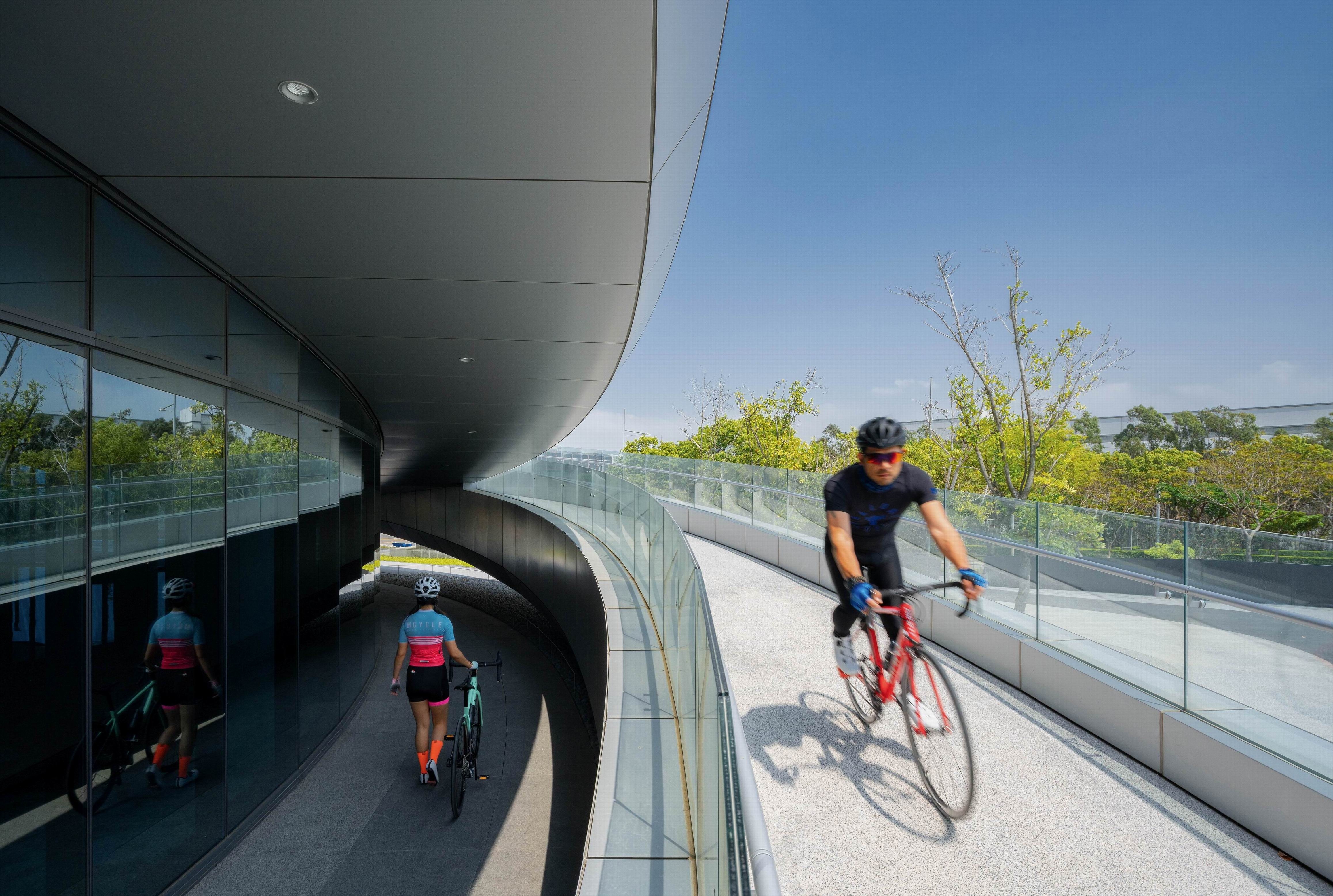 The architectural design of the new headquarters for the leading bicycle manufacturer in the world, evokes the speed of cycling and the raw material of the bicycle frame to create a distinct temple of cycling culture.
