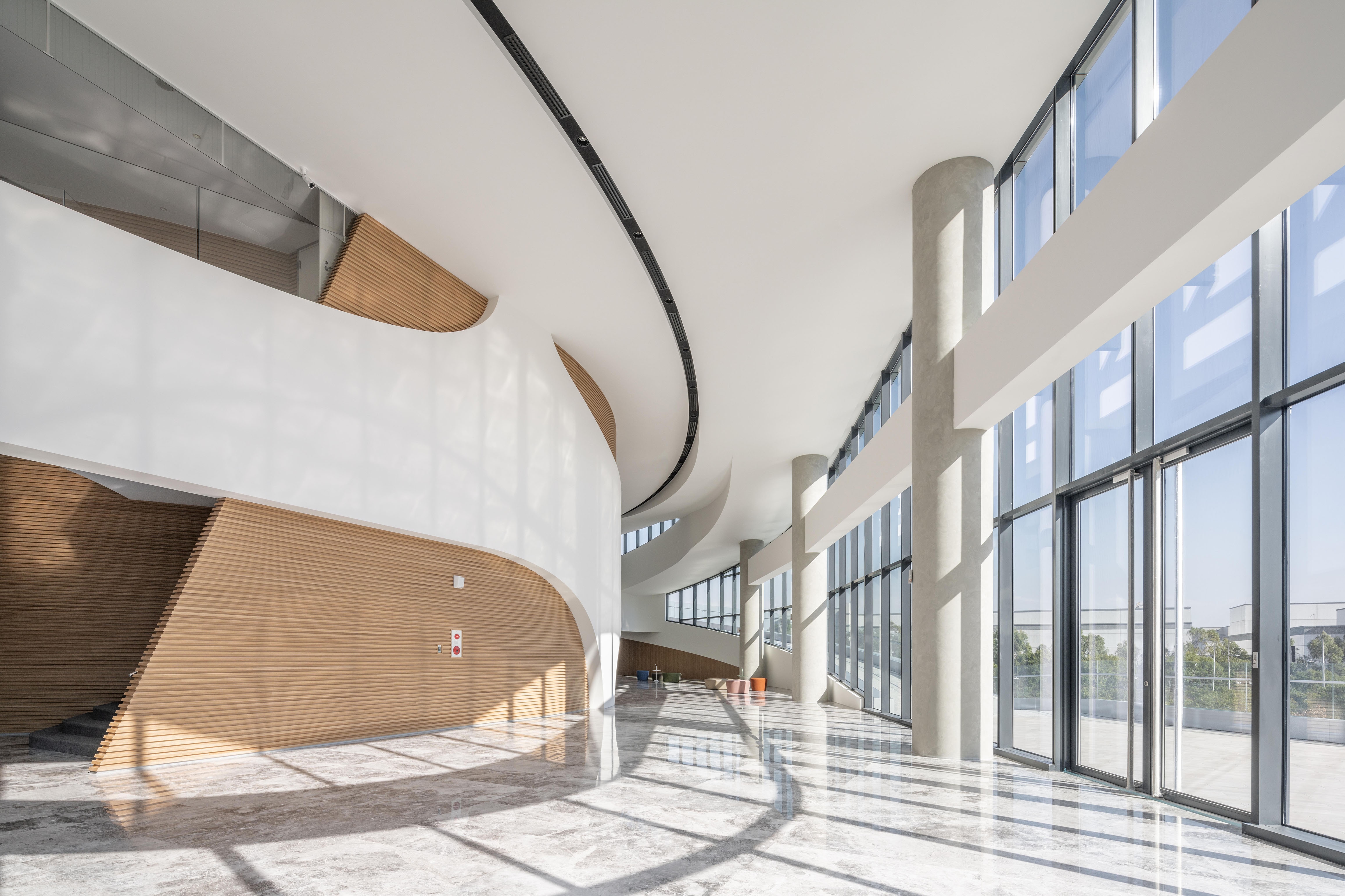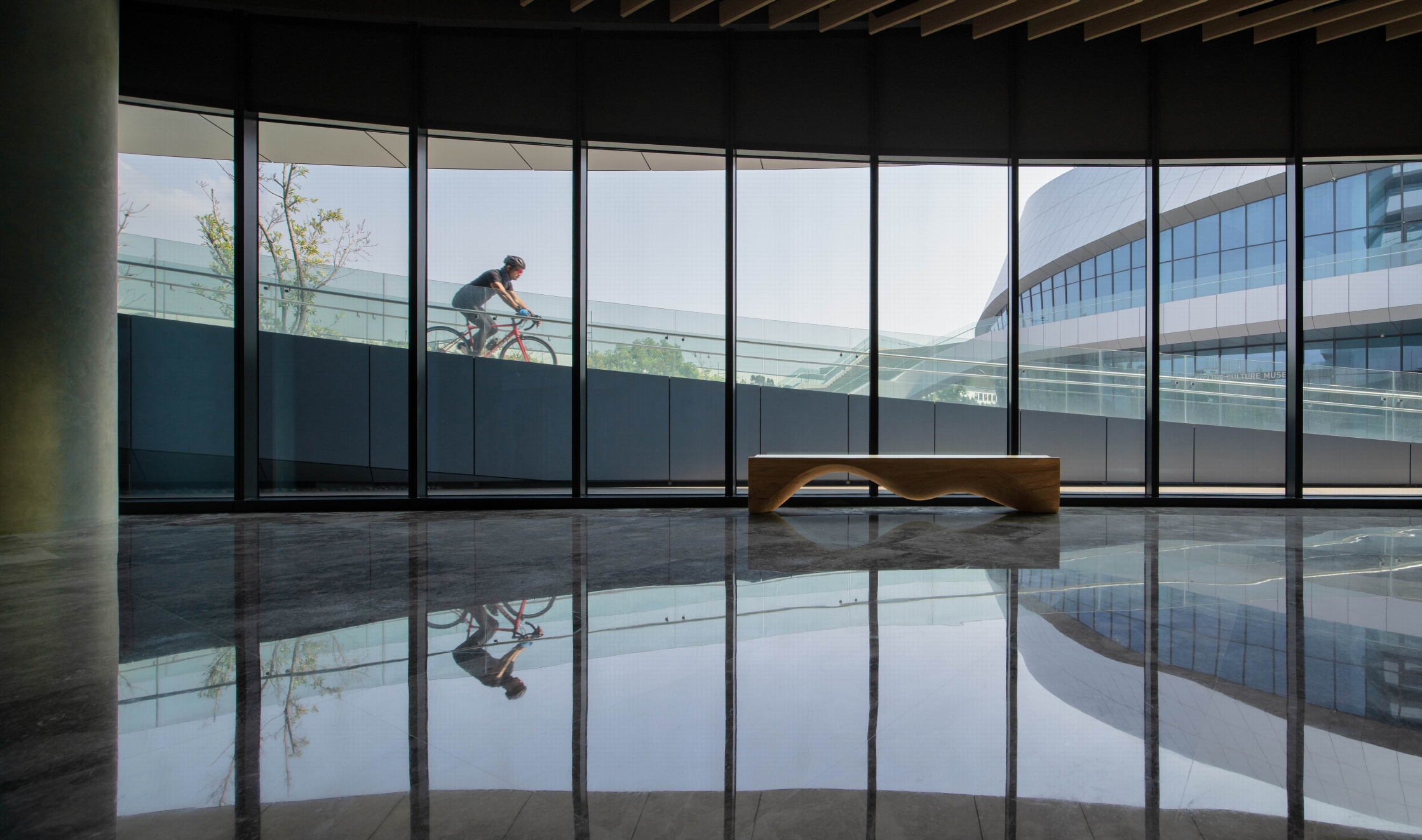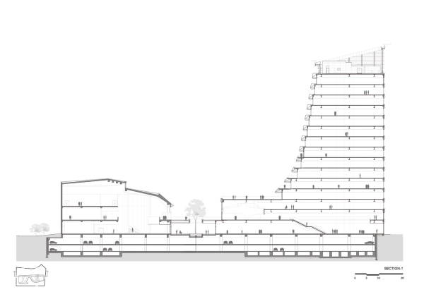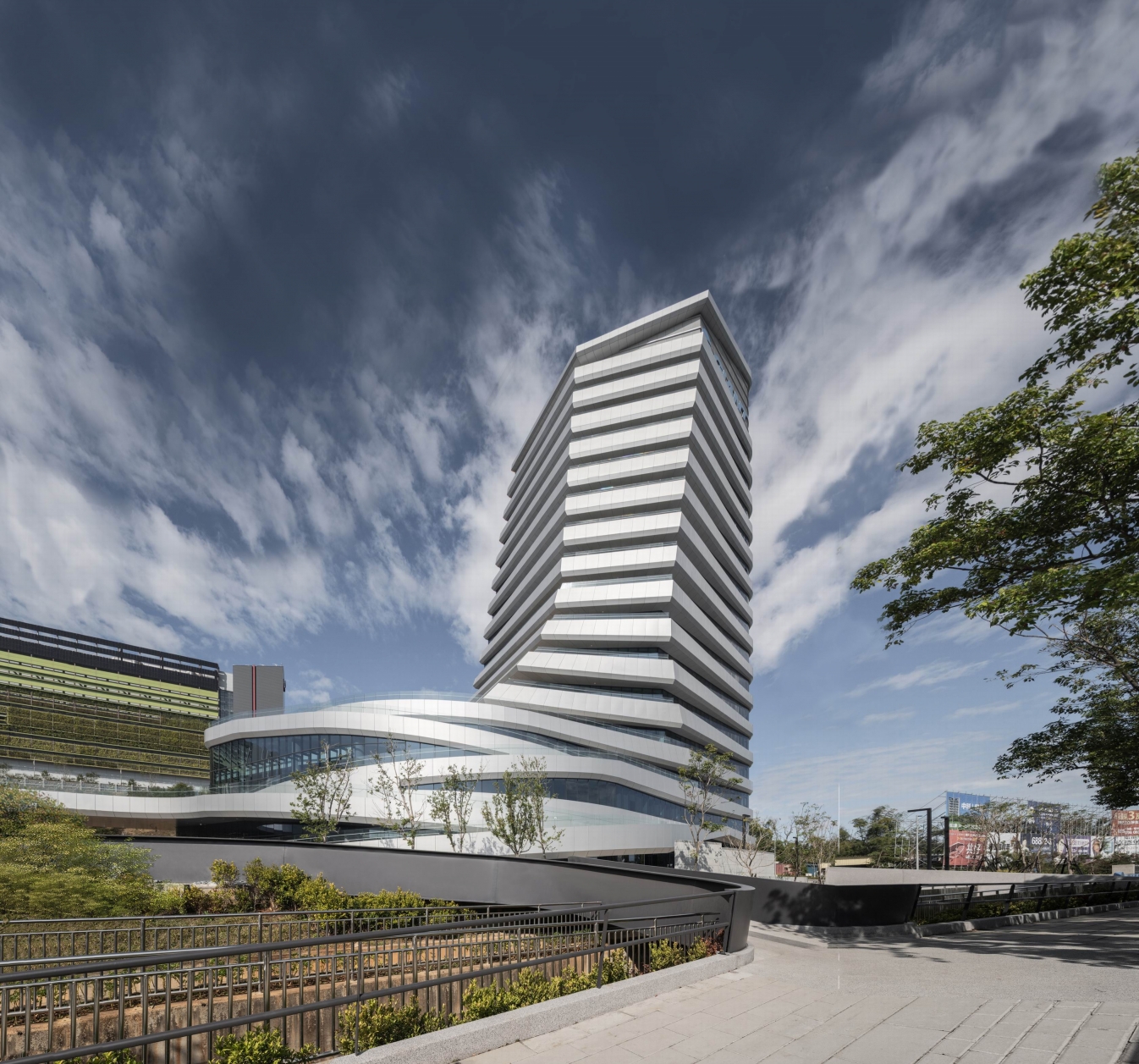 The tapering tower form corresponds with the program arrangement while the architecturally expressive undulating slab covers mitigate sunlight with the deepest overhang on the south side in the form of balconies that offer views towards downtown Taichung. The cycling culture museum features a fluid interior spatial sequence that fully complements the architectural design.