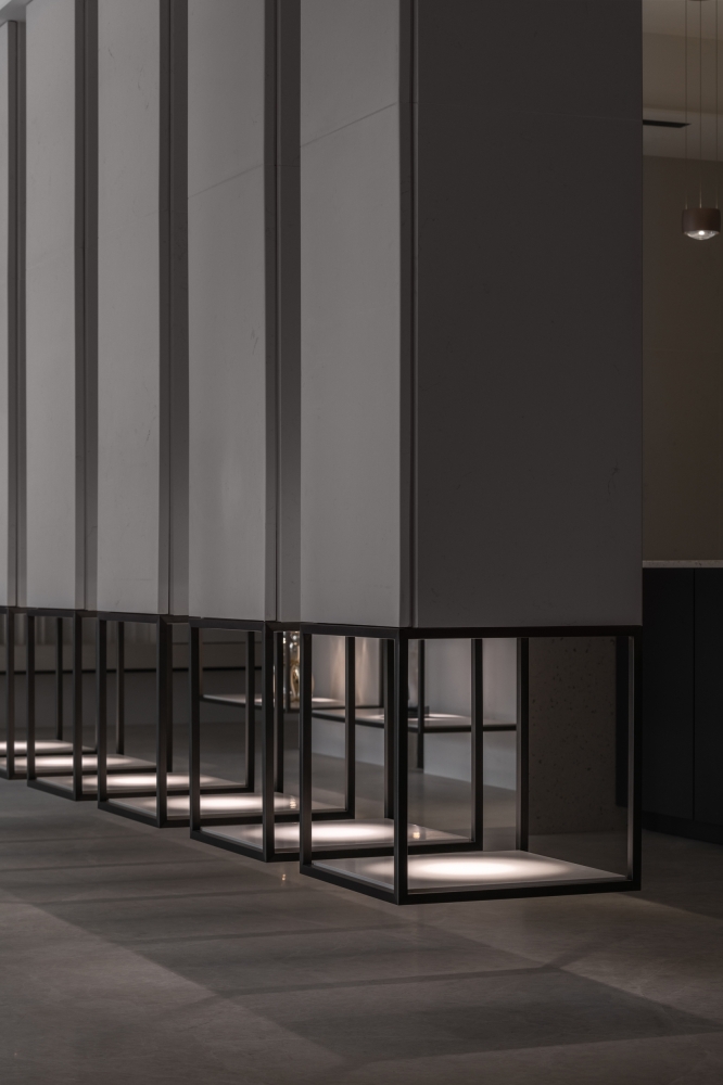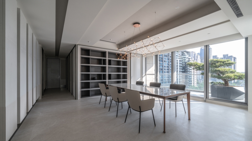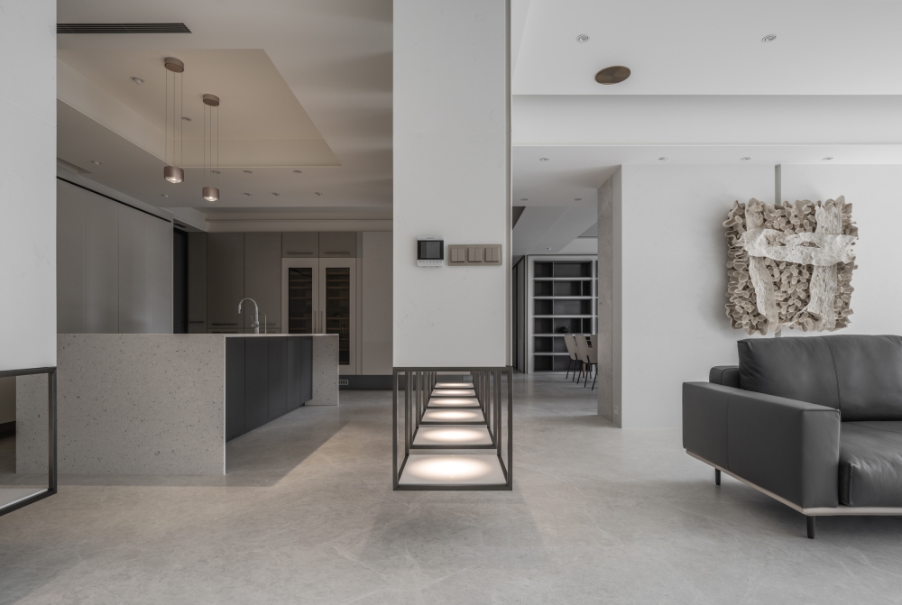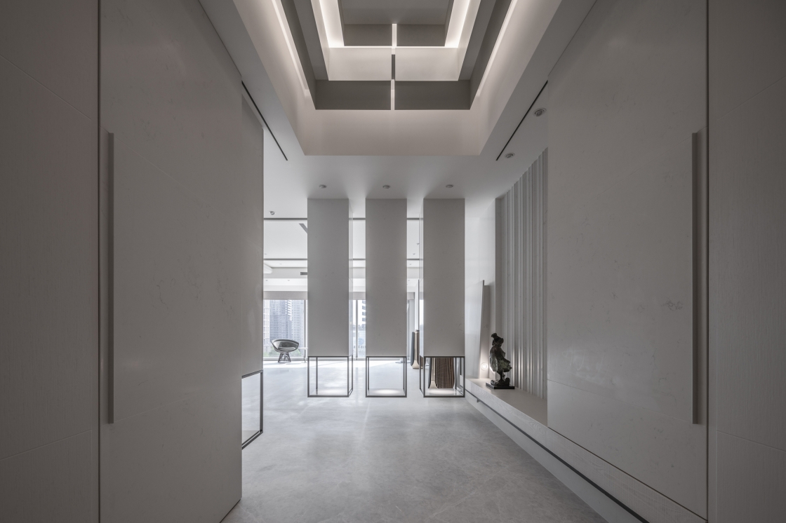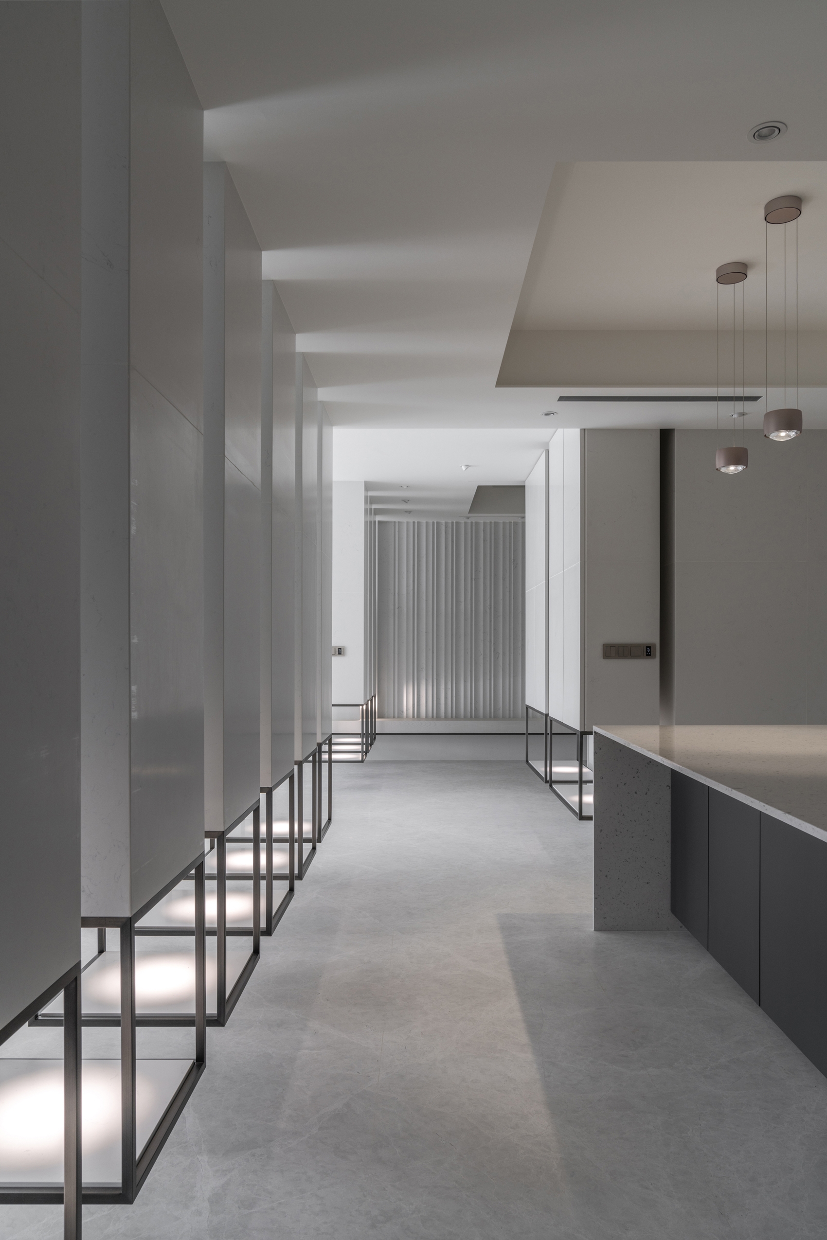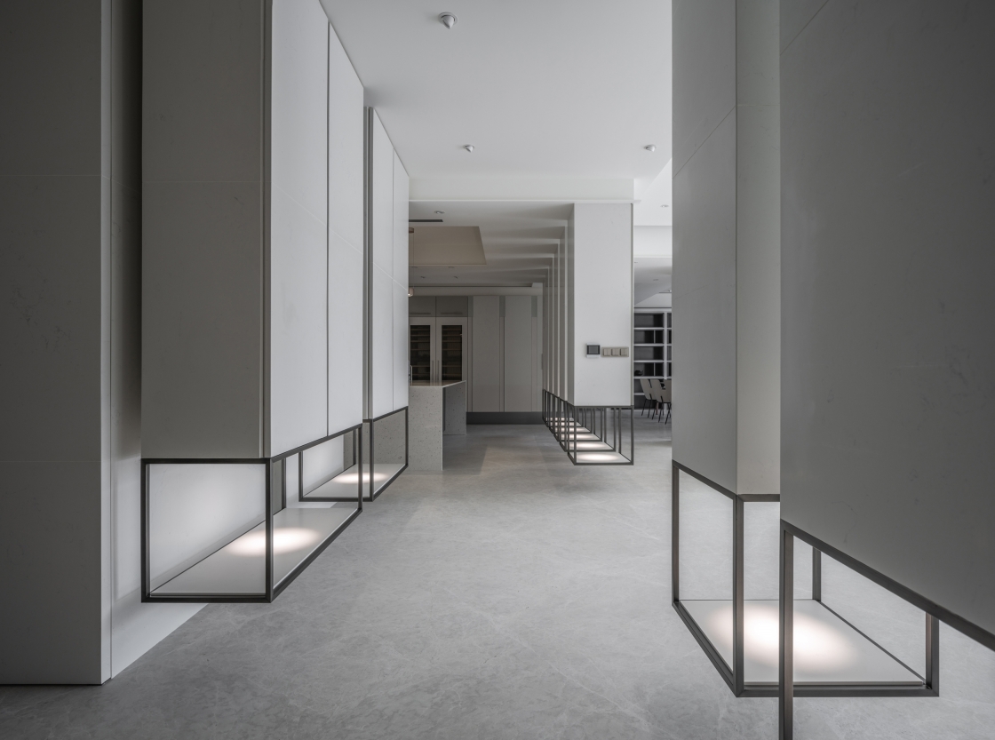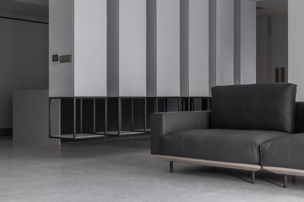 In order to emphasize the layout of high-performance storage capacity, an attempt was made to form a floating array of colonnades for the storage cabinets. The main reason is that the space is on a low floor, and the angle of sunlight entering the house is quite small.