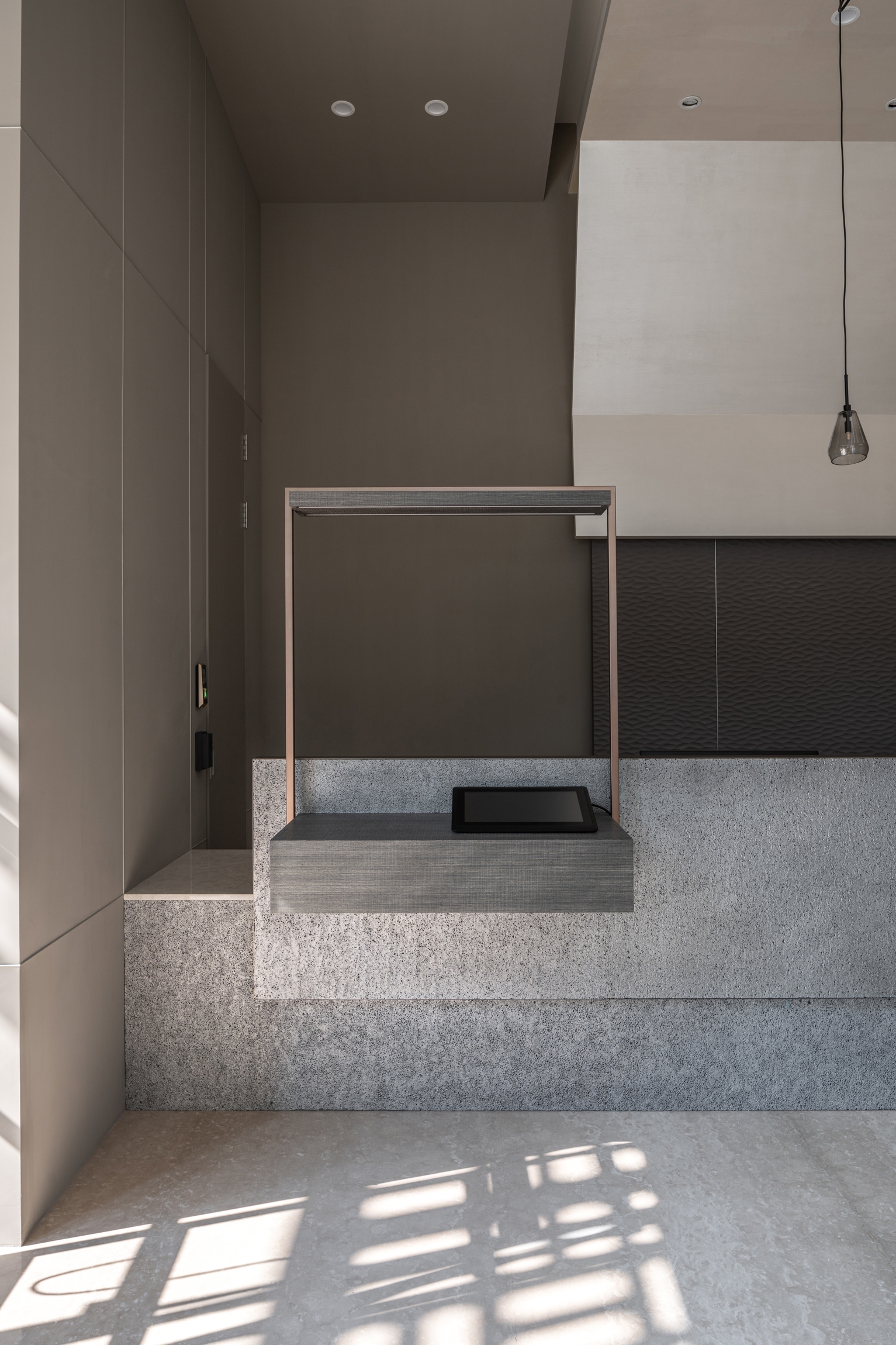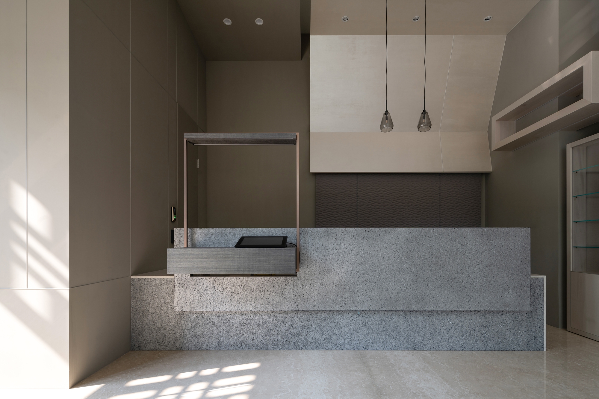 The good conditions of the height of the field, with the concept of “House in a House” accompanied by the form of "island", reveal each independent unit. Through the series of light, it allows all units to be easily seen in sight. The waiting chair is a concept of a series of islands, which avoids the embarrassment of looking at each other and achieves the goal of epidemic prevention in the post-epidemic period. The counter shortens the form-filling table, and the previous question is to reduce the scope of personnel contact and the scope of cleansing. Reducing the light source on the frame would greatly reduce the lighting efficiency loss due to the high floor slab. The light and shadow sculpture the interior space, accompanied with the window scenery, creates a vibrant and lively space.