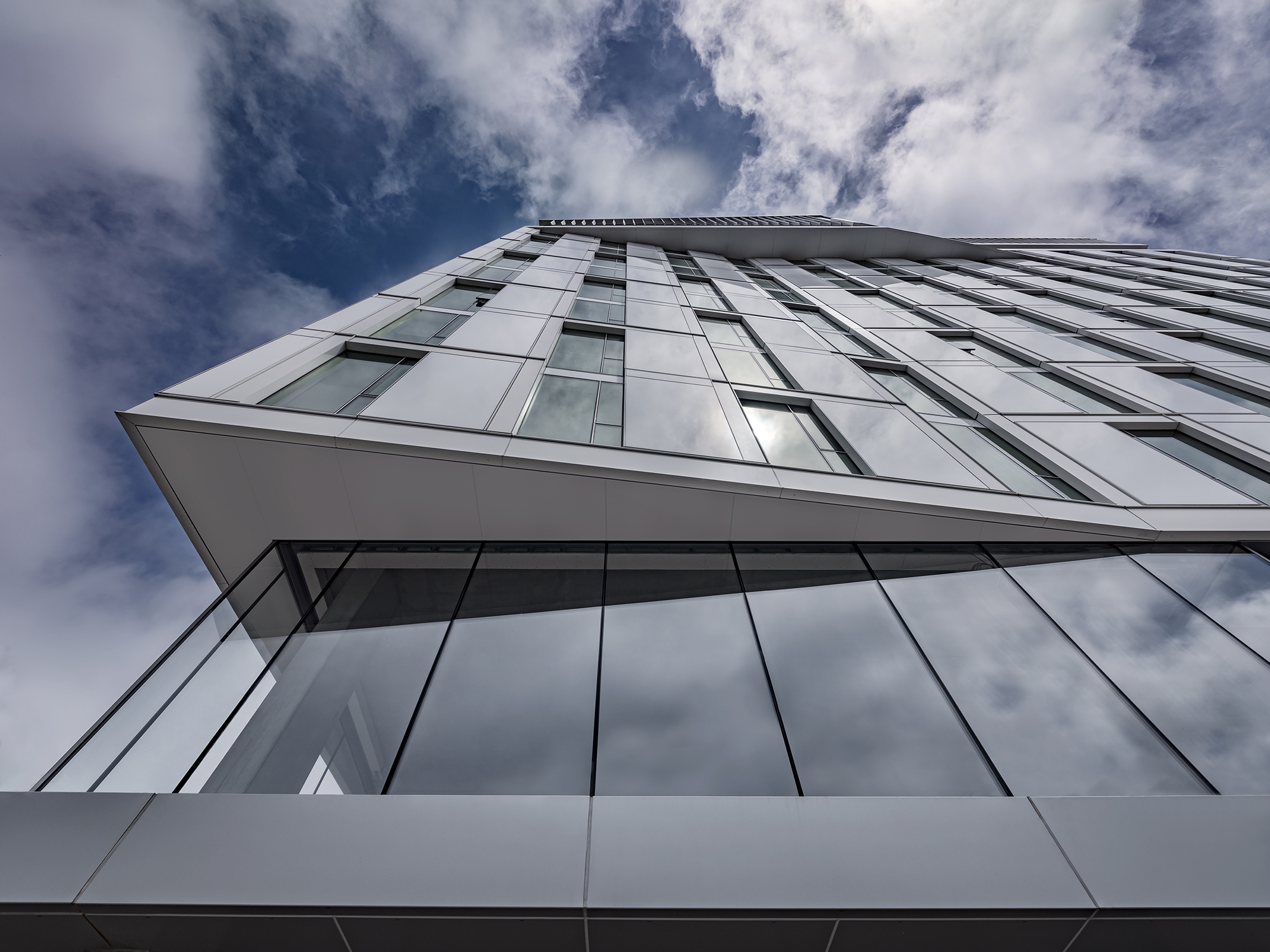 Student housing suites and common-area spaces for students and faculty are dispersed throughout the twelve-story building, while 27 rent-stabilized apartments replace units from the site’s previous building.