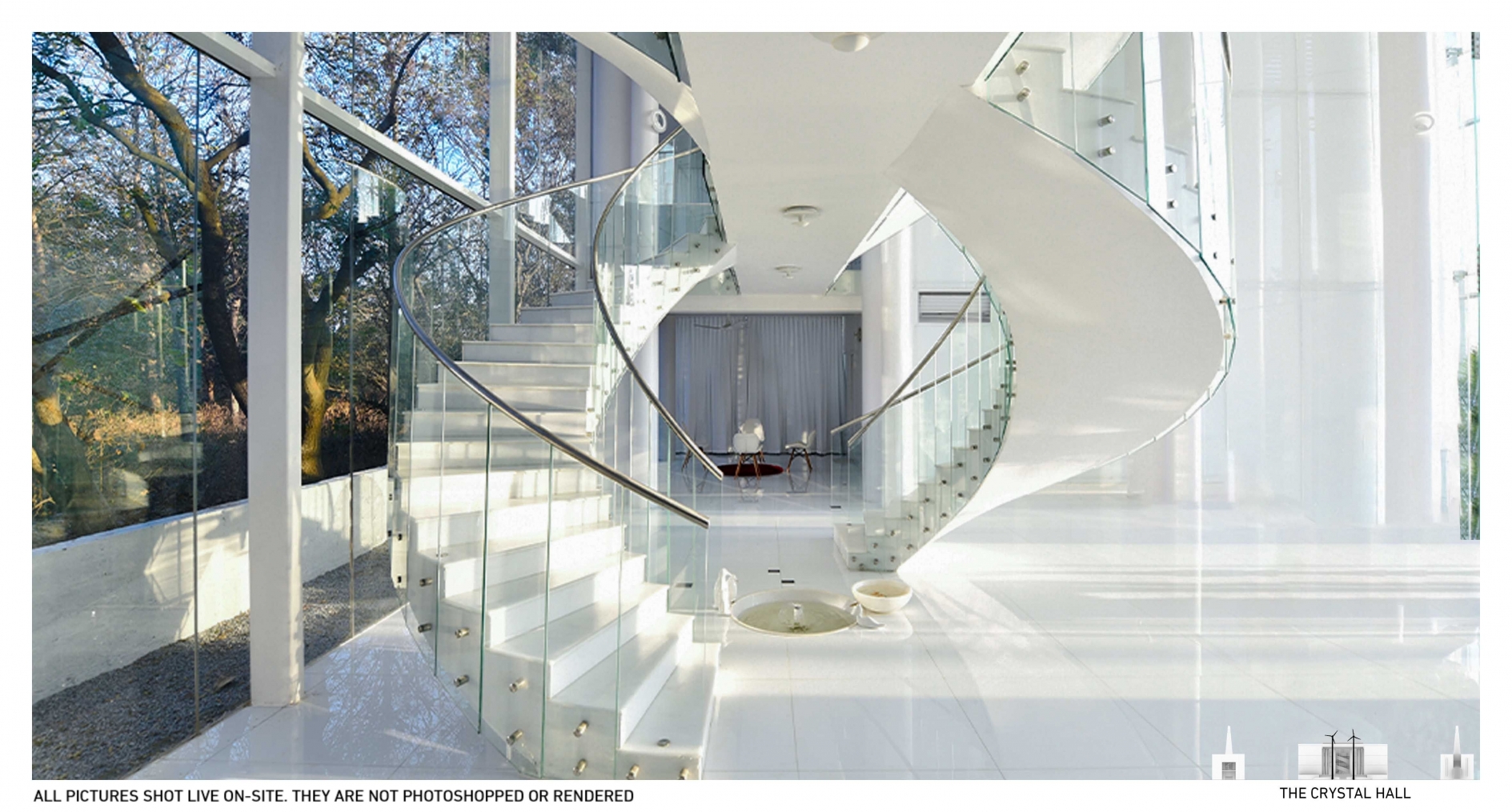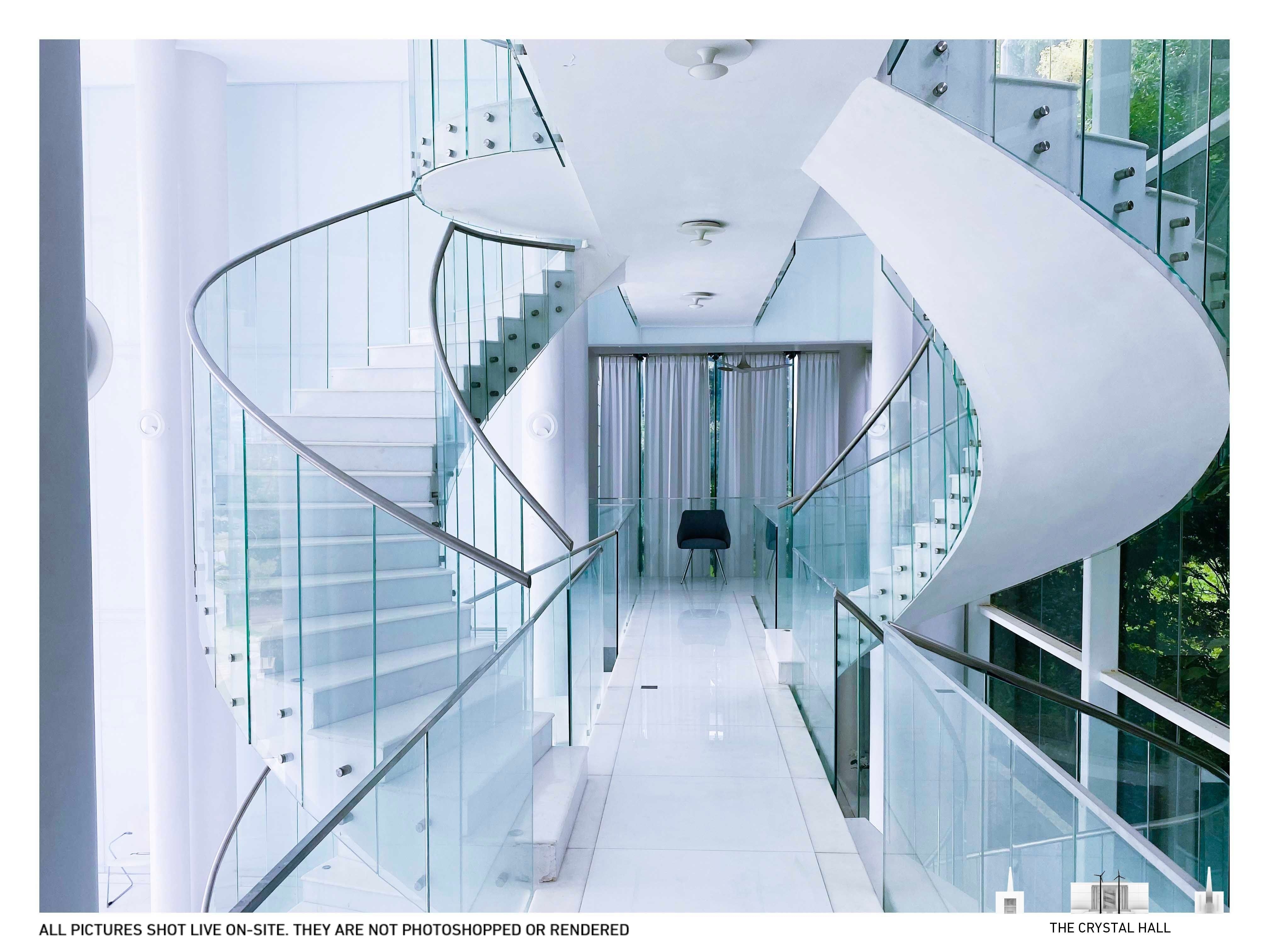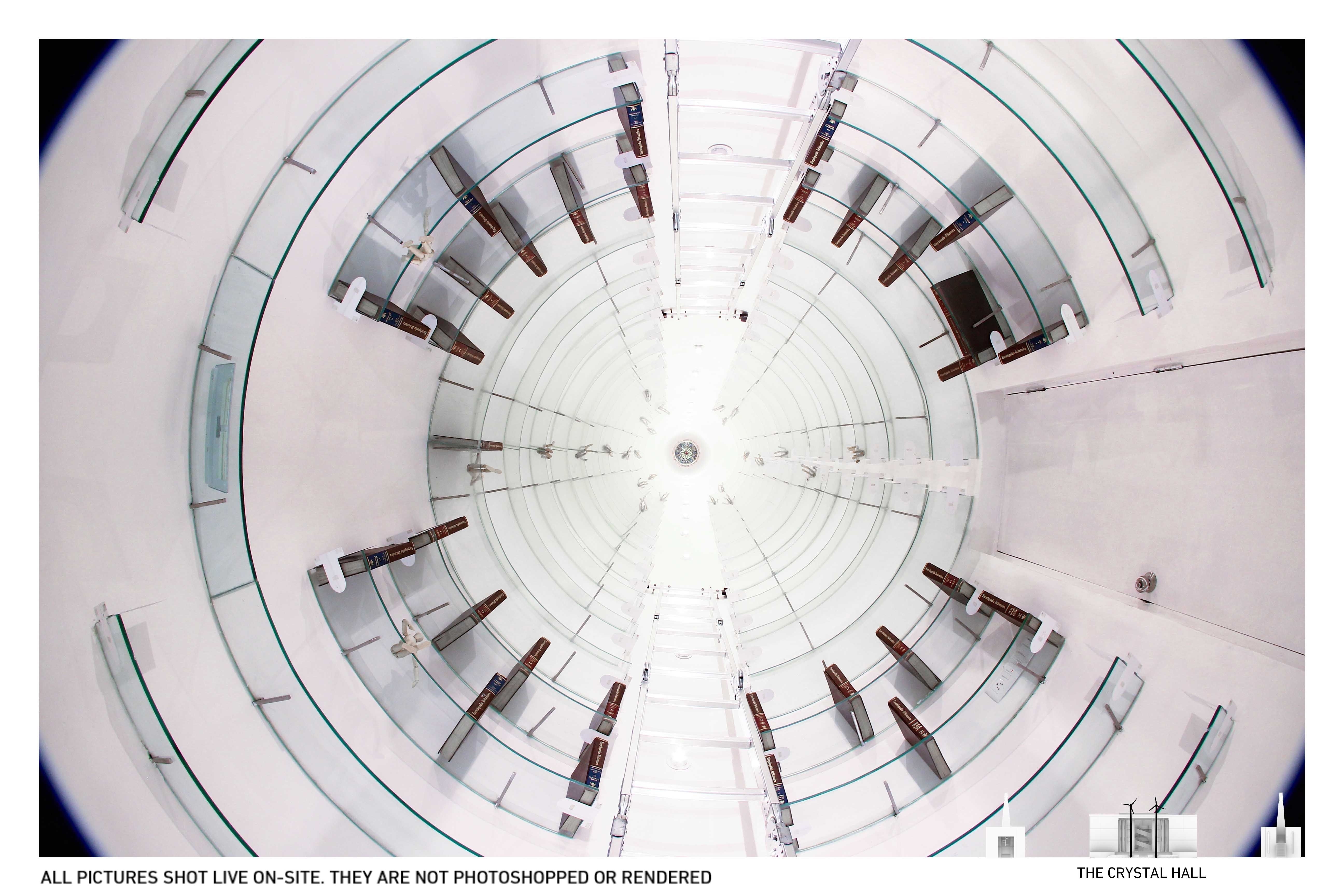 The Crystal Hall is an essay on light, nature & history. It integrates sustainability, reuses material, and uses disadvantaged local talent.