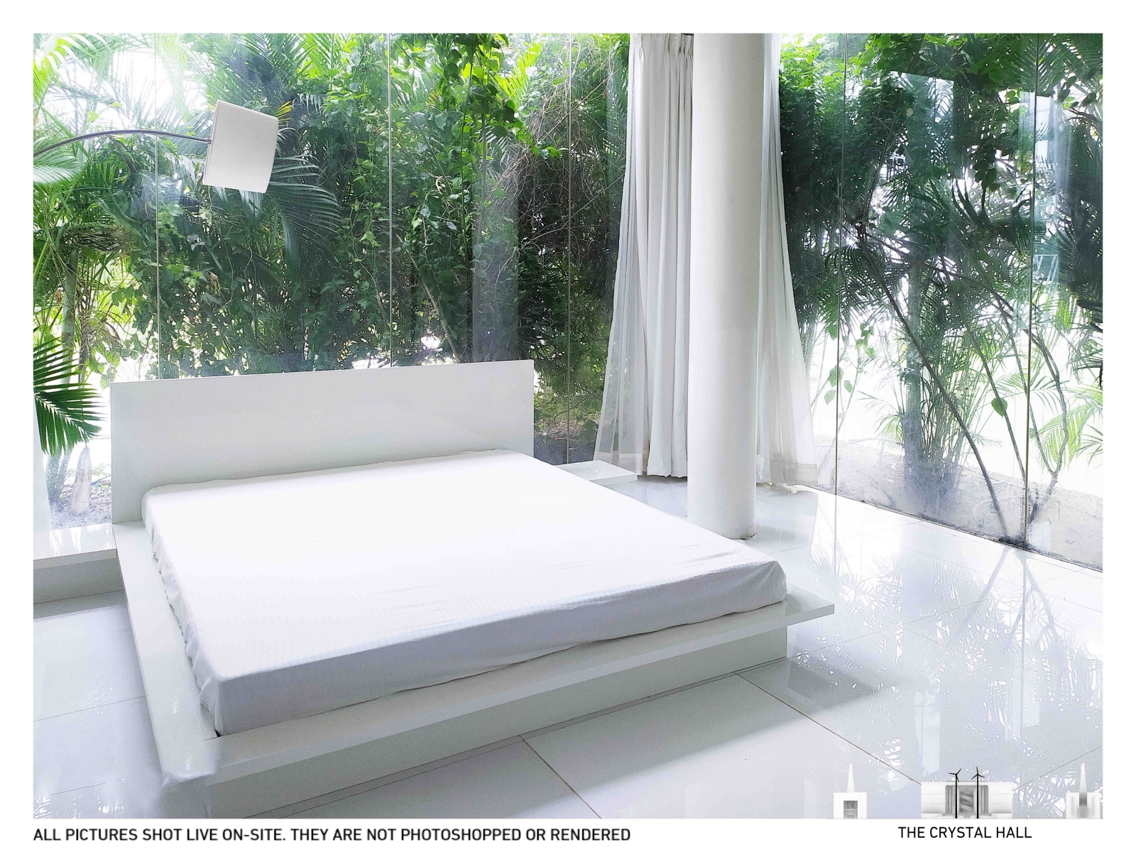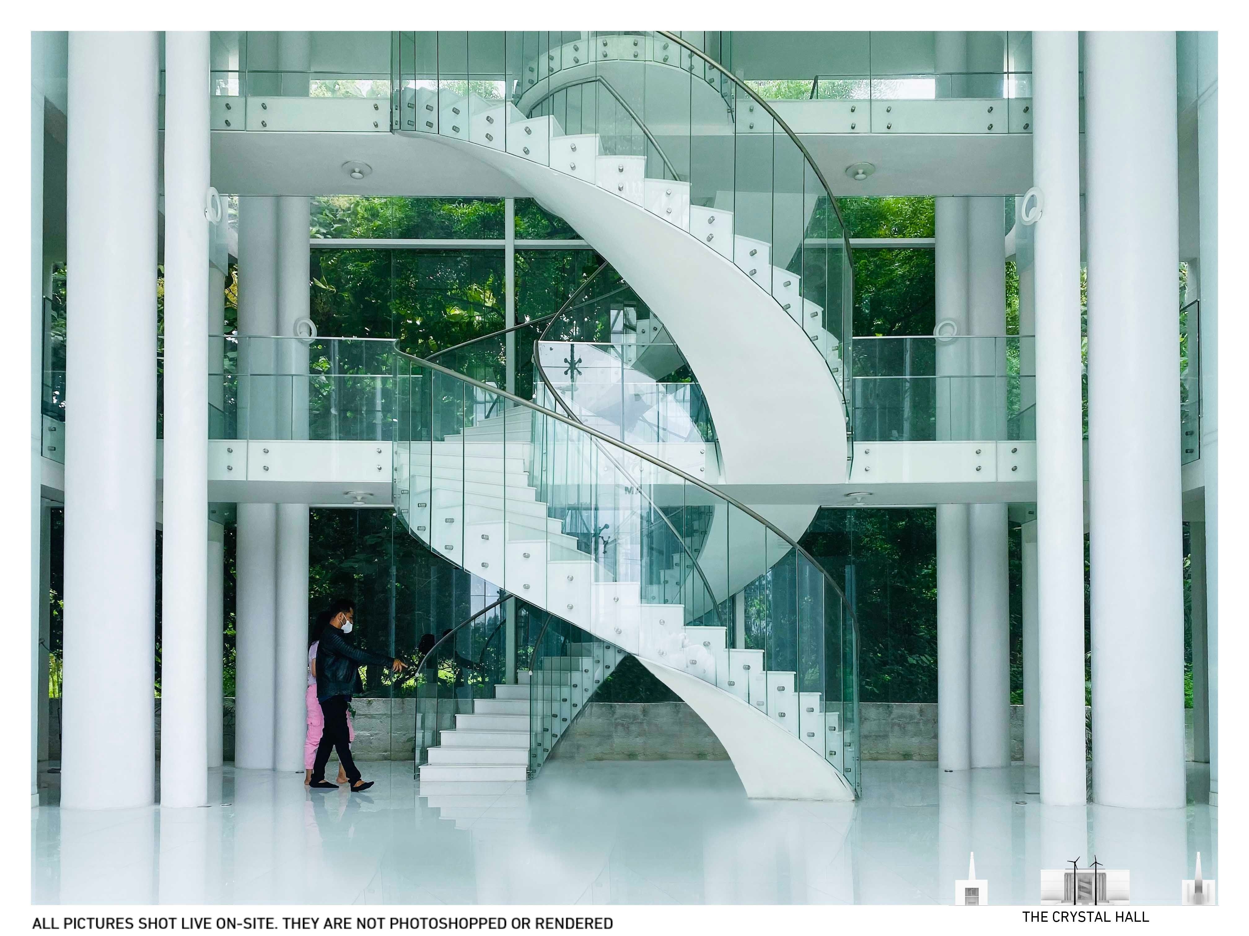Glass —which can be recycled endlessly without loss of quality or clarity, recreates bioclimatic conditions that help tackle climate change while using modern materials that are culturally, emotionally and ecologically conscious. Despite its use of state-of-the-art technology, the total cost of $10 per square foot makes it one of the least expensive interiors of its genre anywhere.
