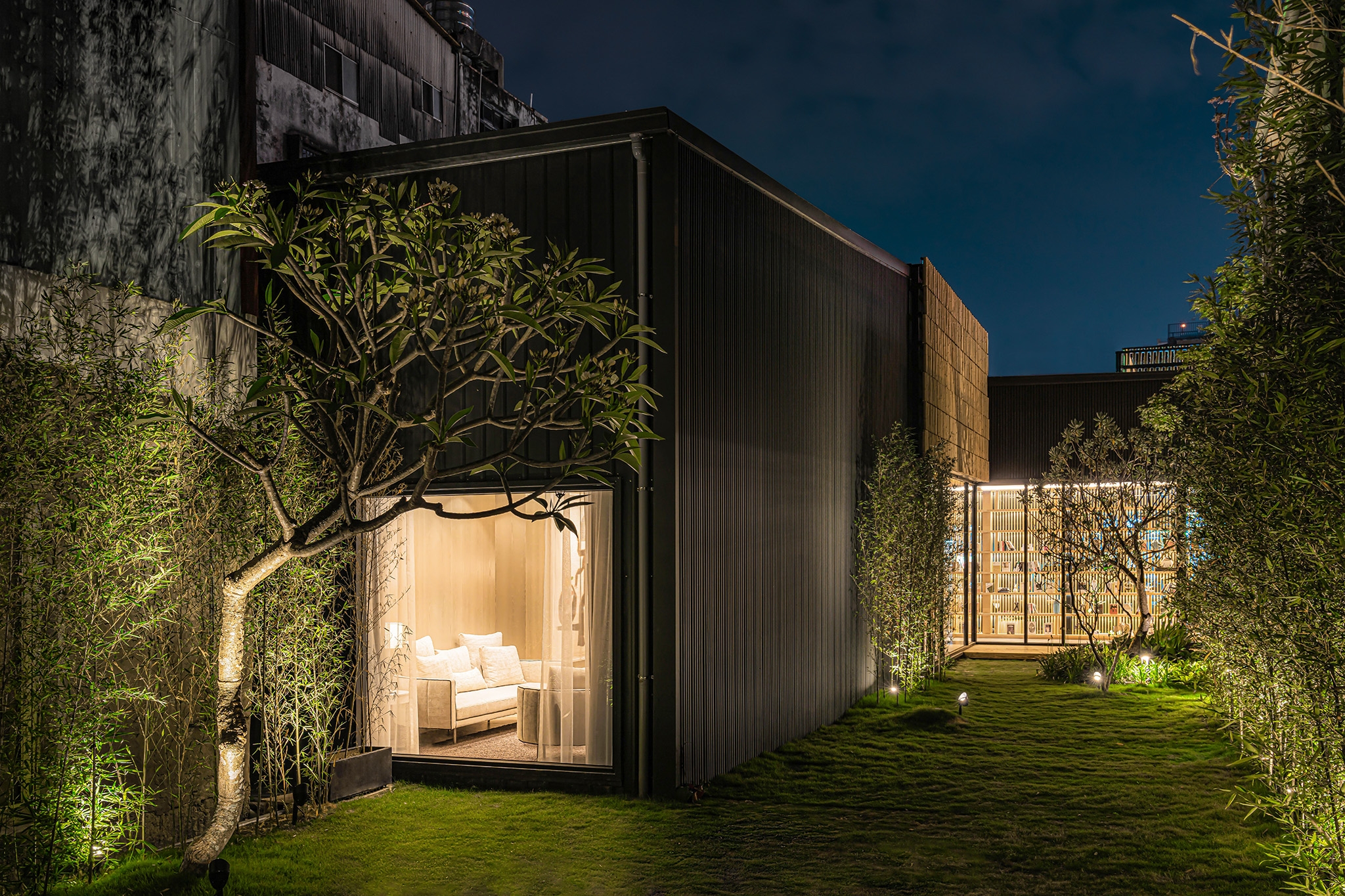 This project starts from a house made of iron sheet located in the corner of an old community. We kept the original structure of the house, rearrange the space layout, and renew the façade to turn this space into a real estate sales center. After learning the cultural background of the client, we proposed the community library concept with humbleness, acceptance, and the fusion of its surrounding environment as its key characteristics.