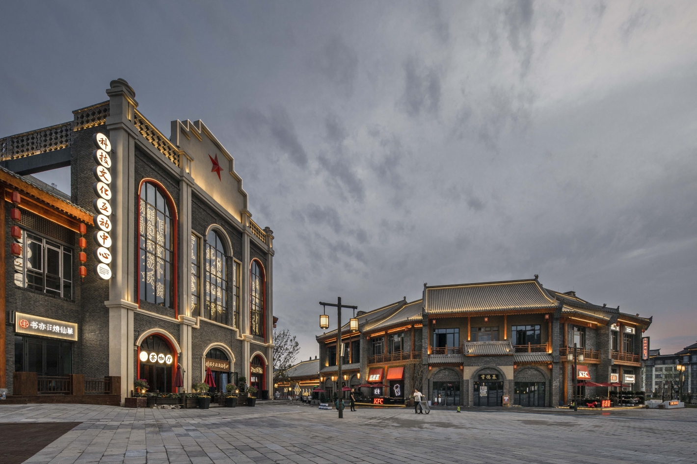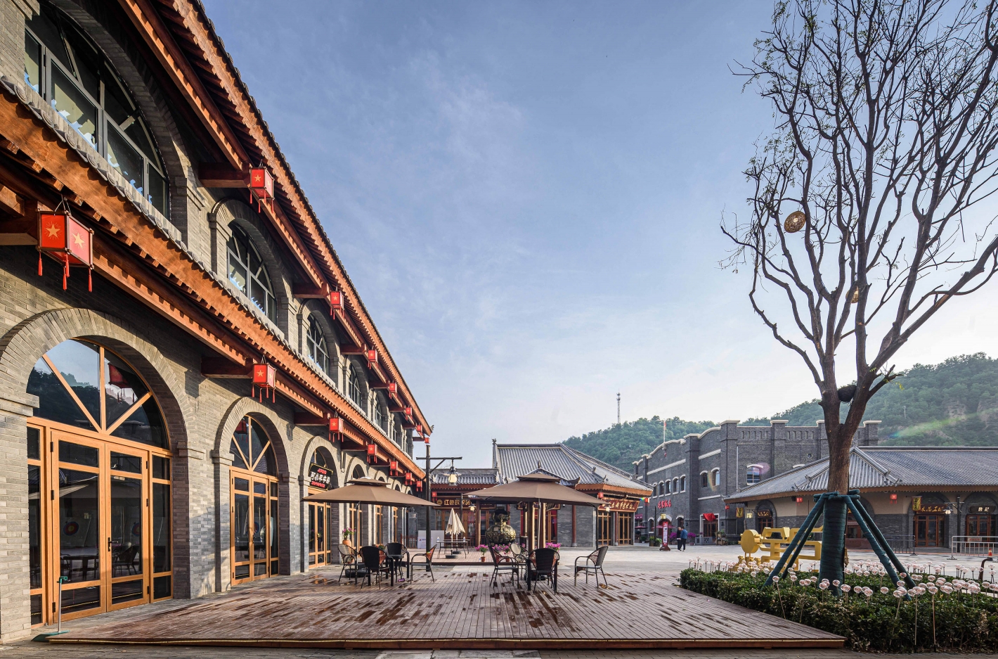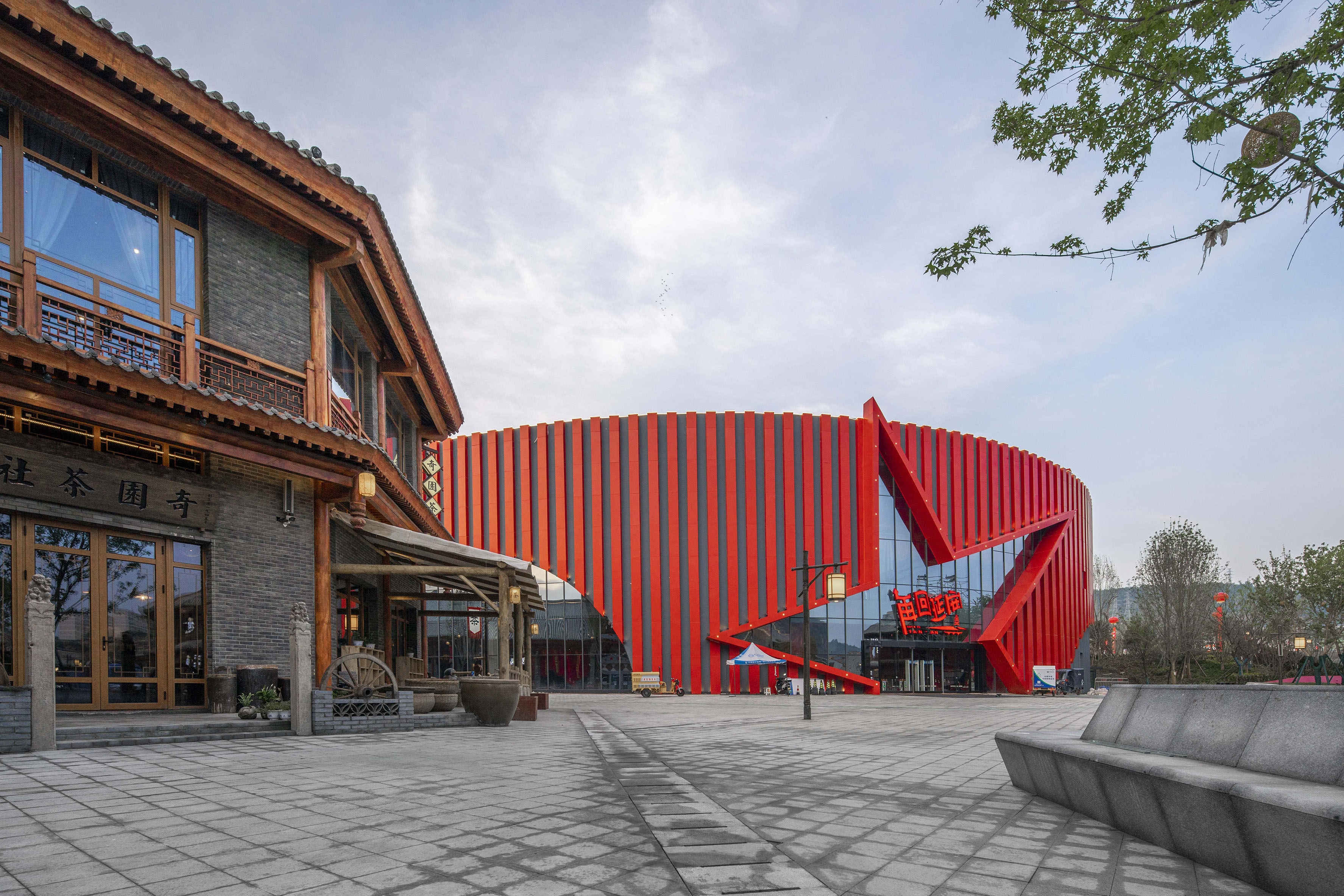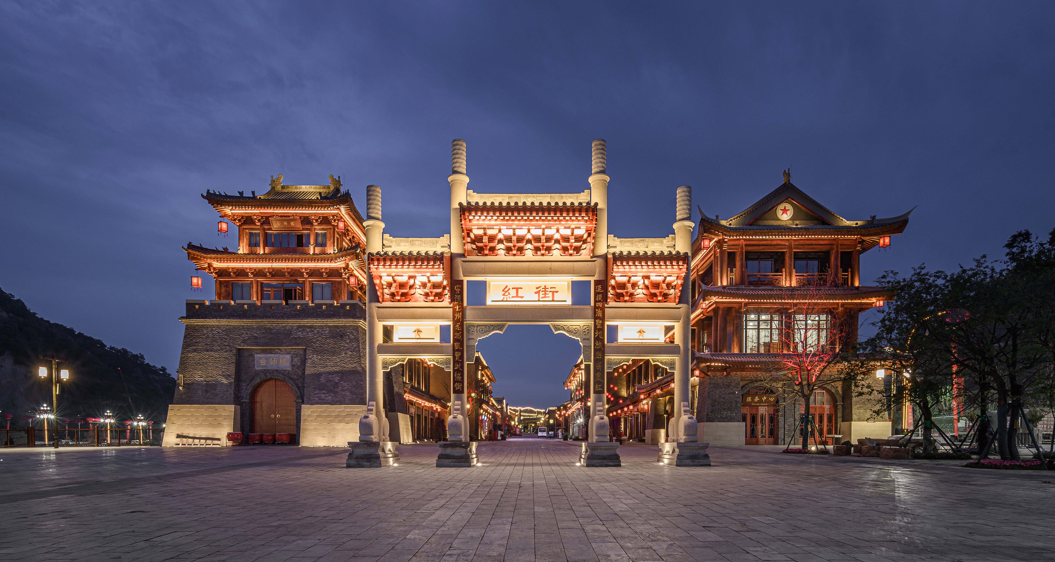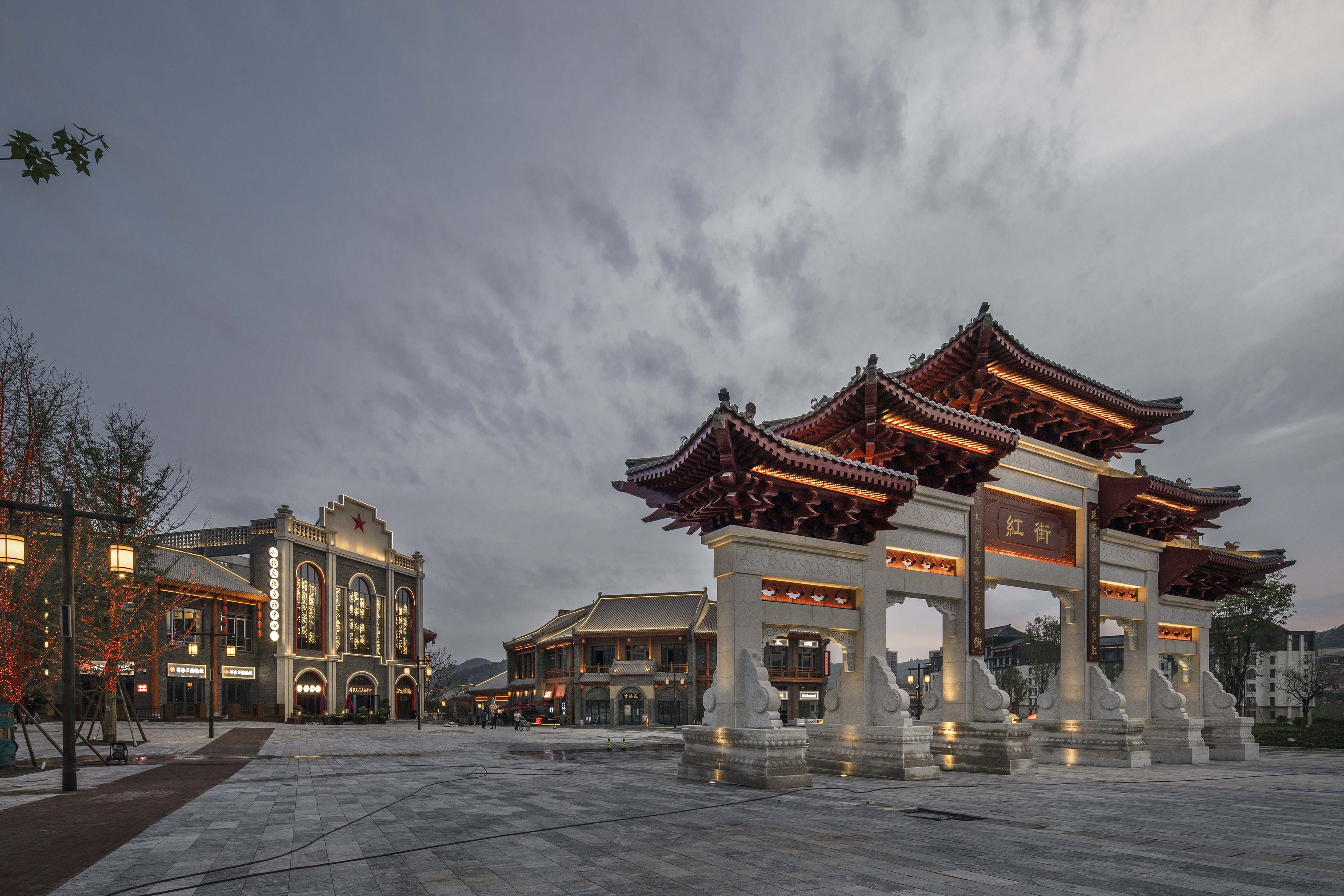 The newly built 1.5km situation commercial block uses the story of the Red Army's Long March to creates a tourism town with matching squares.