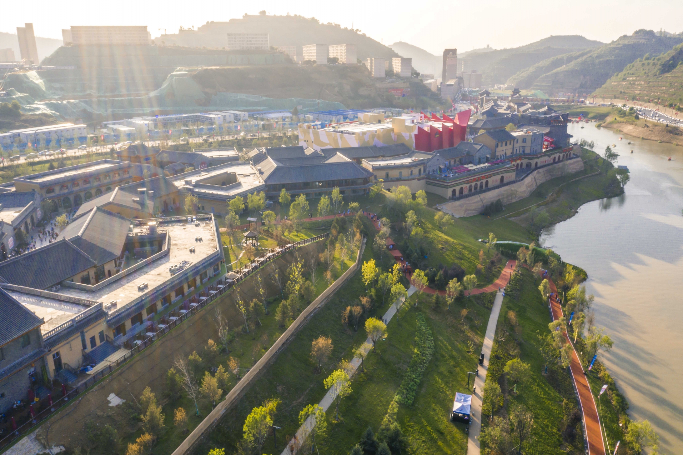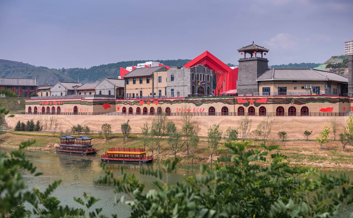 The project covers 270,000 sqm. The inward and outward interfaces adopt the traditional Chinese architectural structure form and draws on the features of ravines and cave dwellings in Yan'an. New architectural styles are also gradually introduced along the axis. The elevated area of the embankment elevation difference uses cave as the spatial display image reflecting scenes of working, fighting and life of the older generation of proletarian revolutionaries, as well as the regional prosperity in the new era.