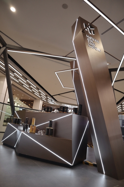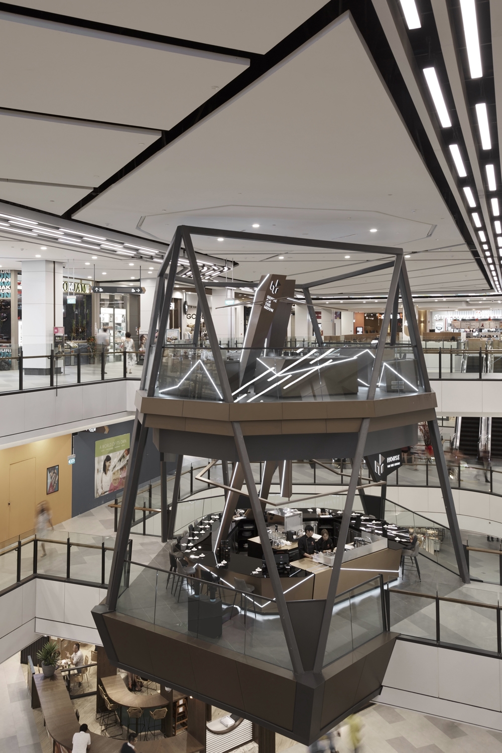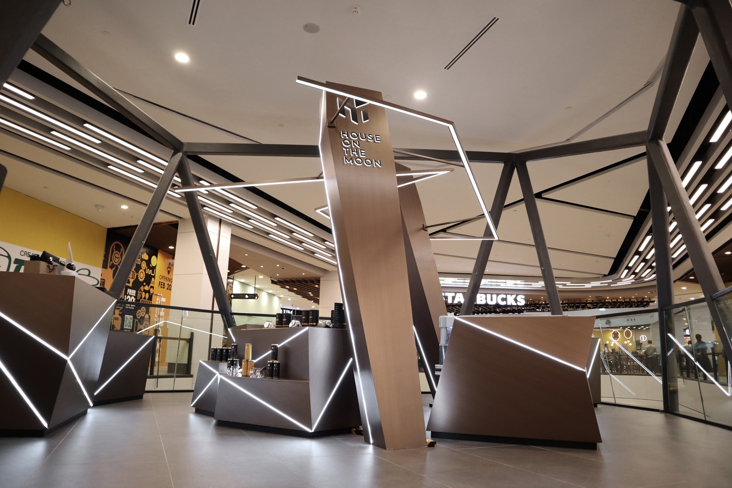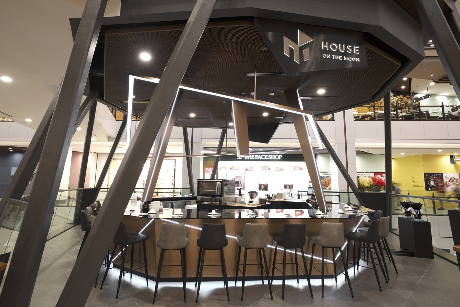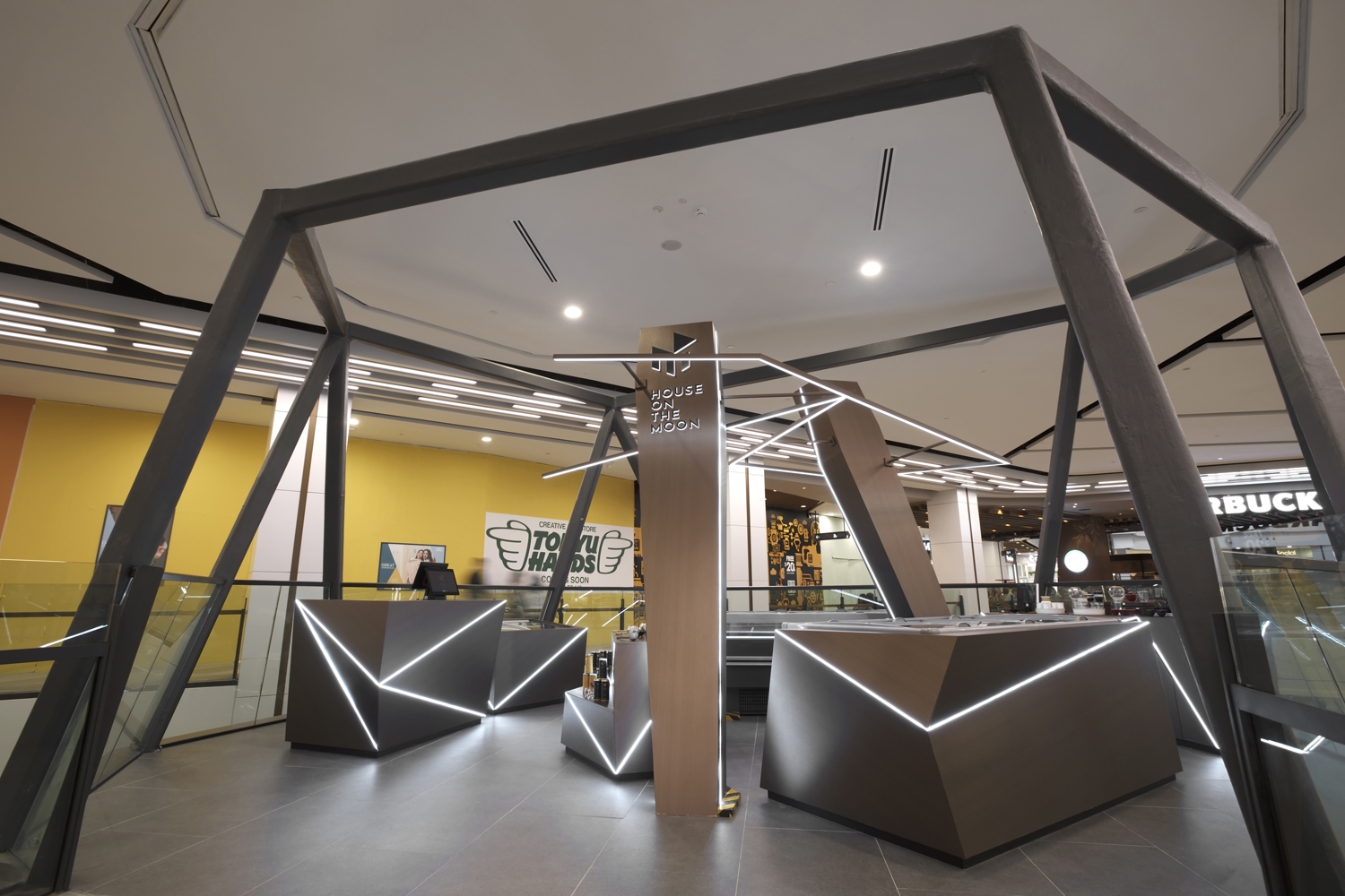 House On The Moon is a dessert restaurant helmed by chefs who are recognized in the Michelin Guide. The project site is a duplex unit "suspended" in a triple volume space accessible only via two link ways across each level. The restaurant sits on Level One where traffic movements are prominent and Level Two a retail space for takeaways and merchandise.