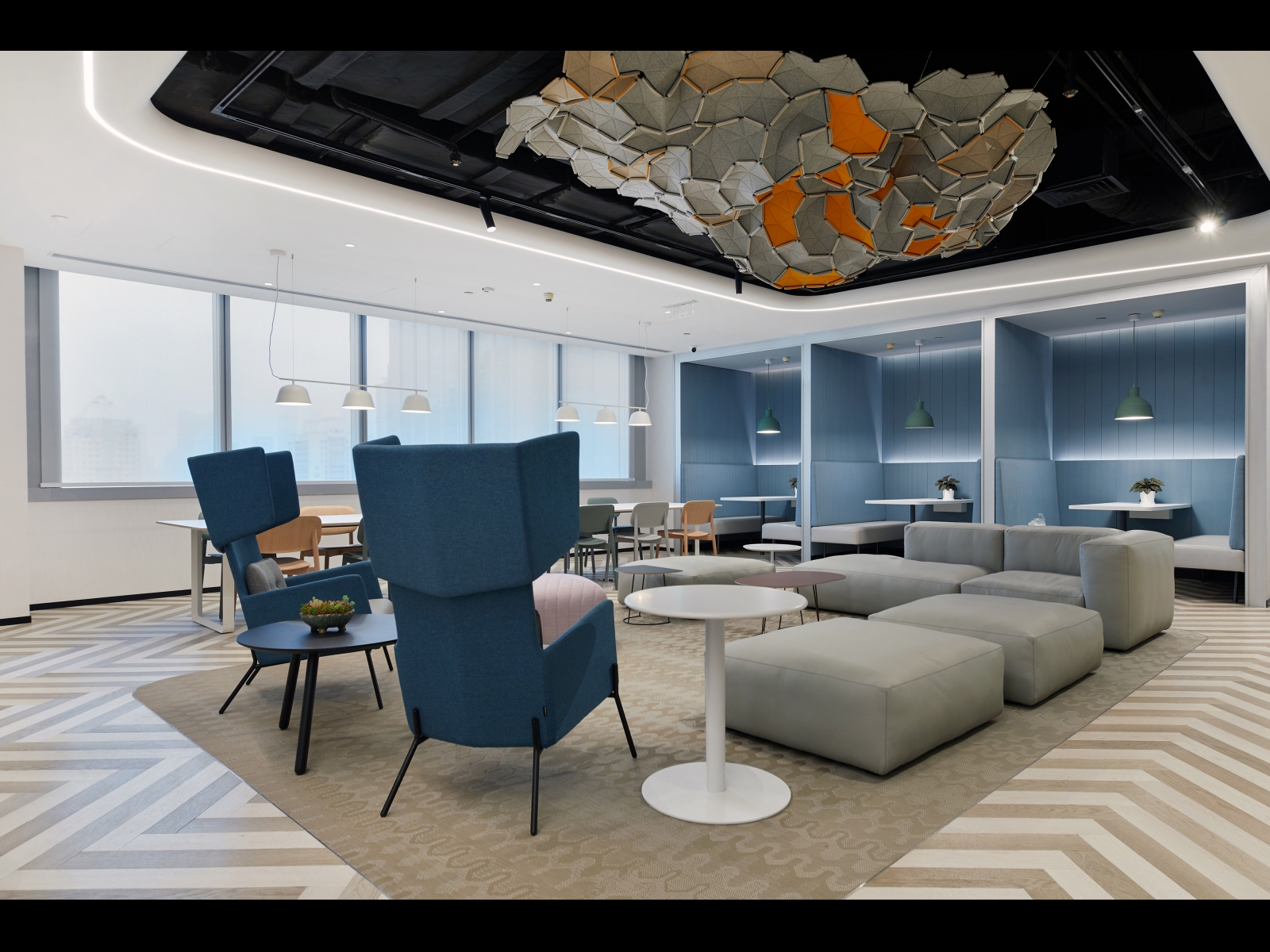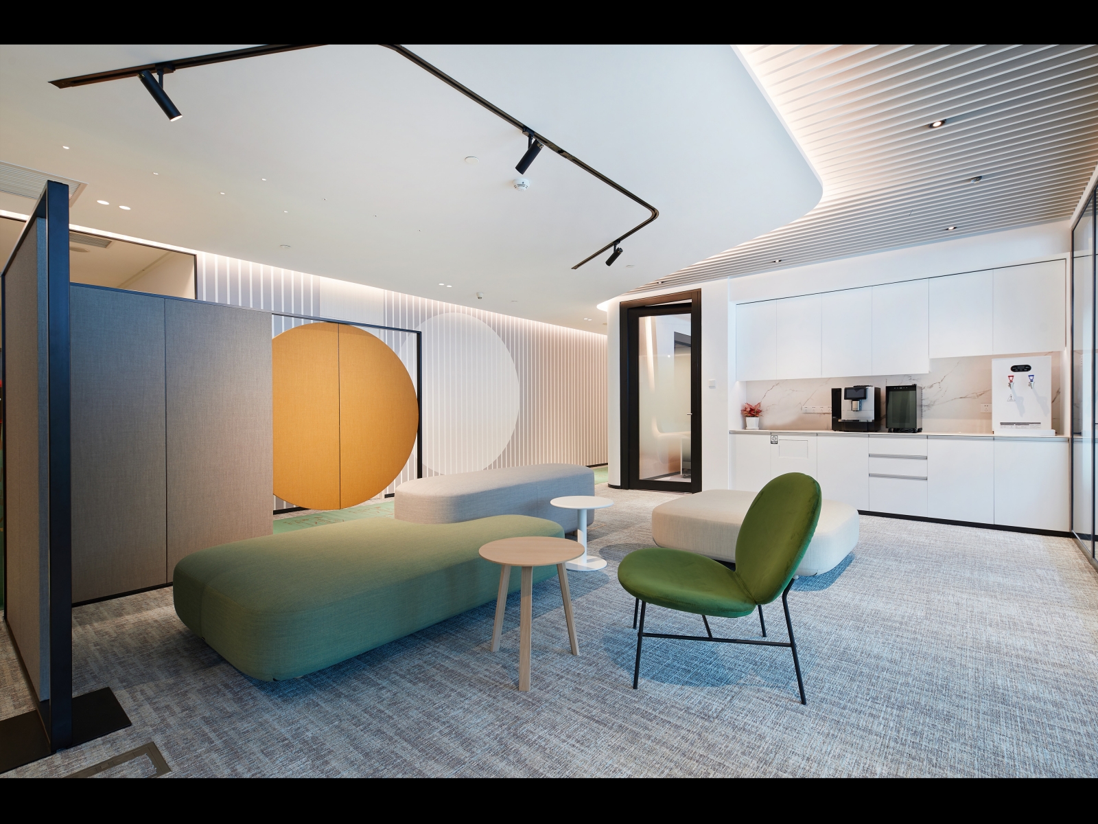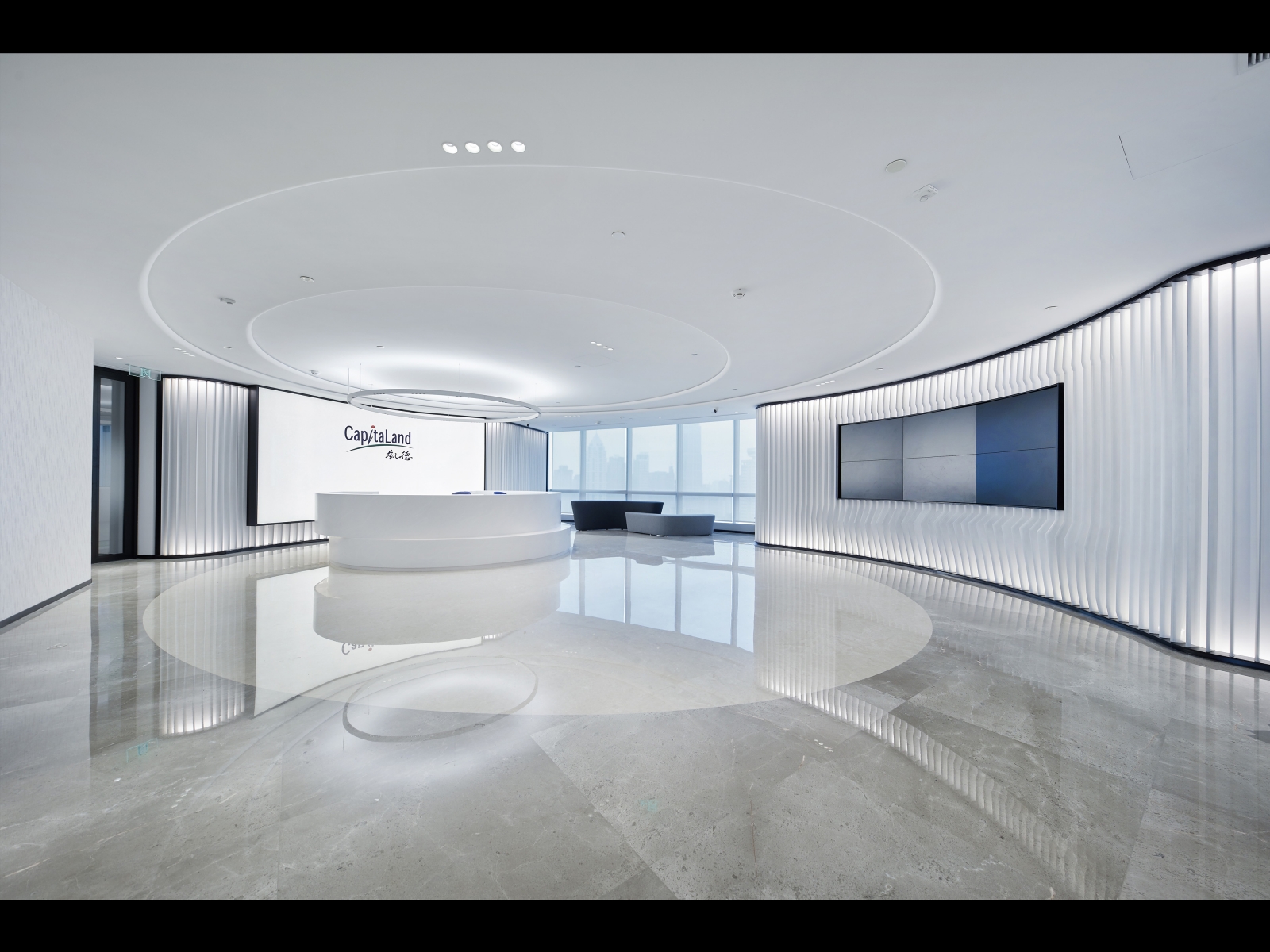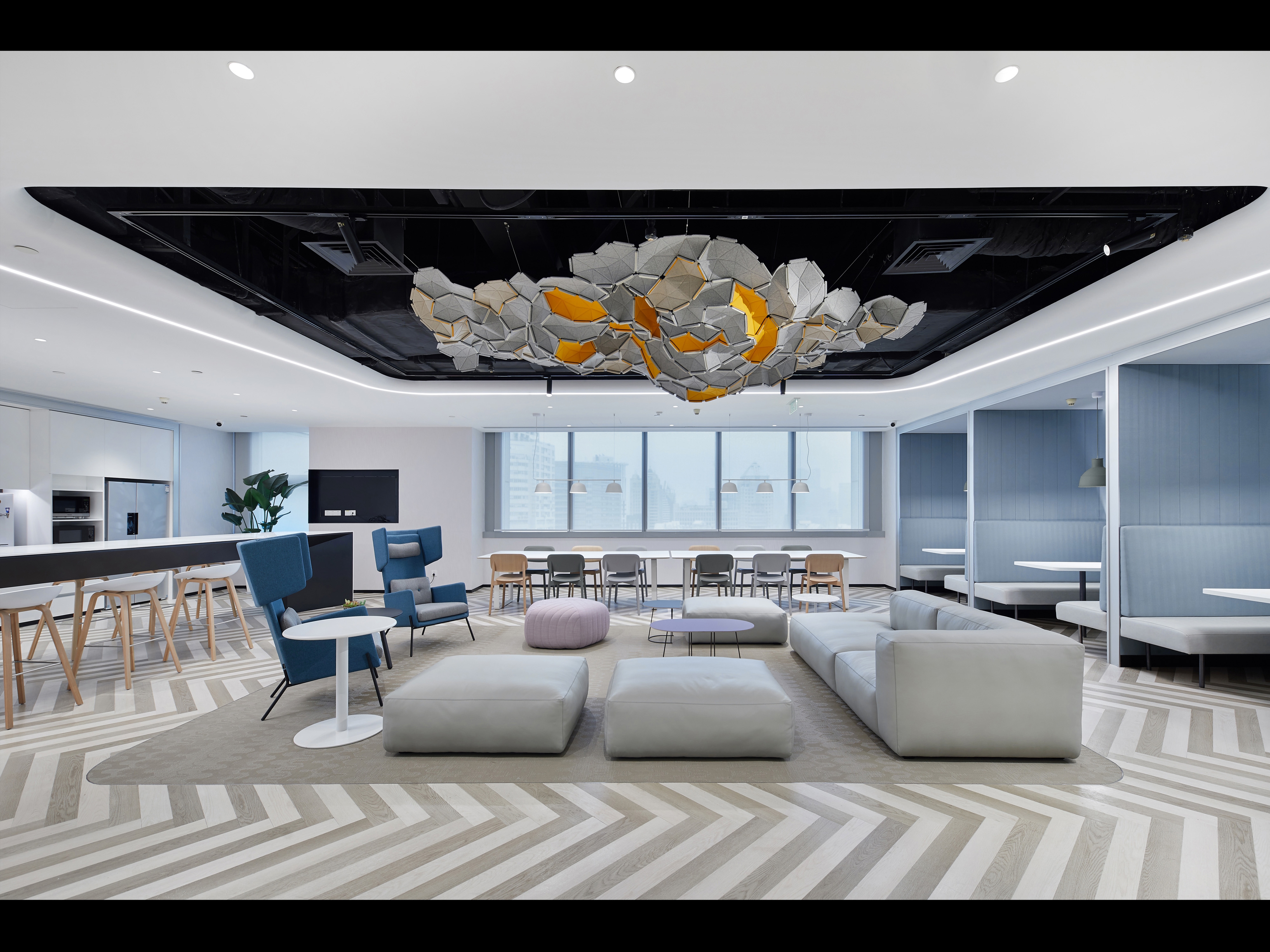 The design of CapitaLand’s new headquarters draws inspiration from urban planning: a large-scale public activity space, commerce connects various residential communities, and the core activity area is the central square. The two-floor entrance and the public space facing the elevator across the board maximize this planning concept. The open entrance and the public space are connected through the elevator corridor, which becomes the heart of this office space. In this space, everyone learns, rests, communicates, and improves themselves.