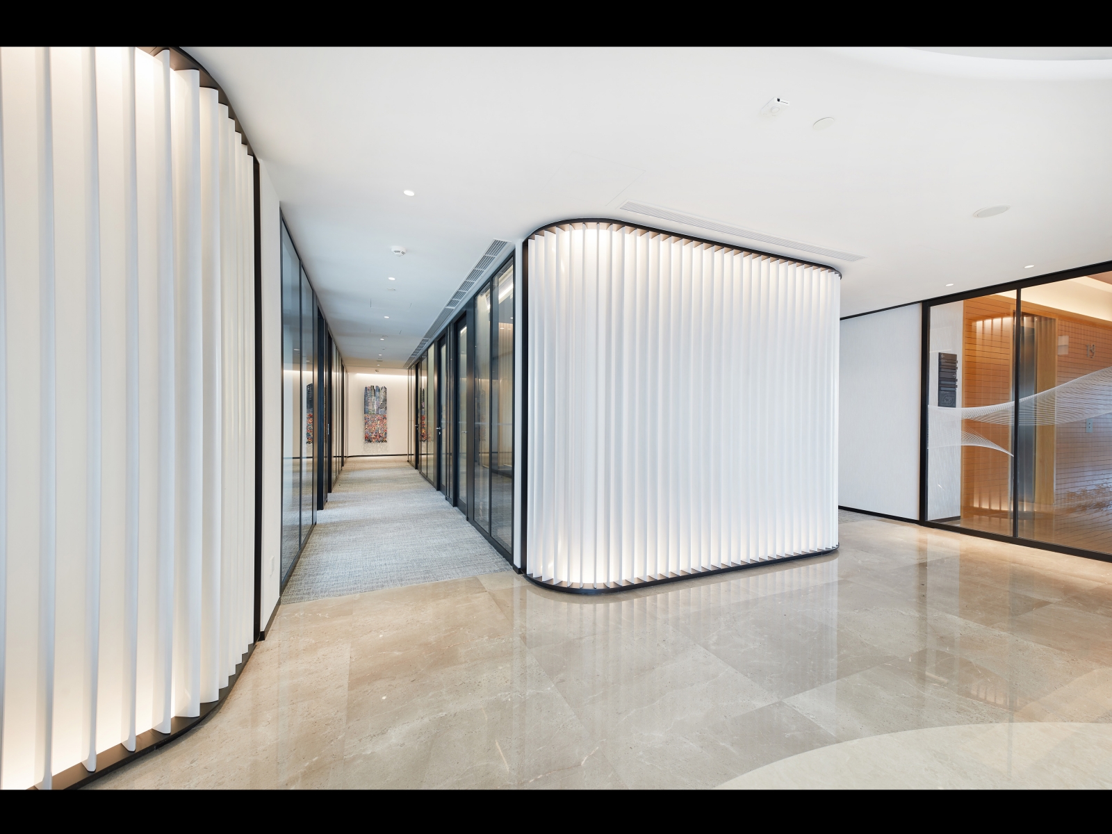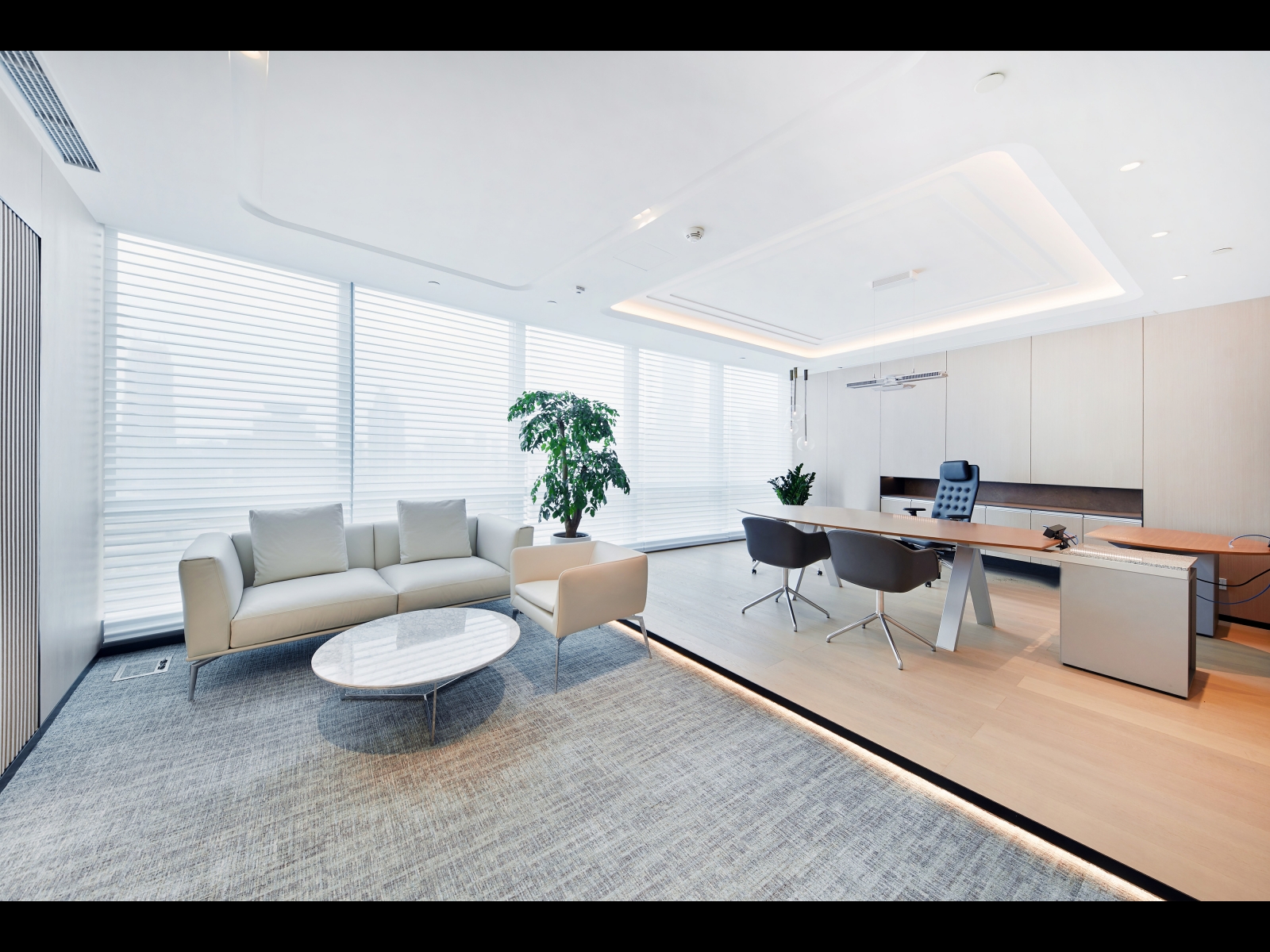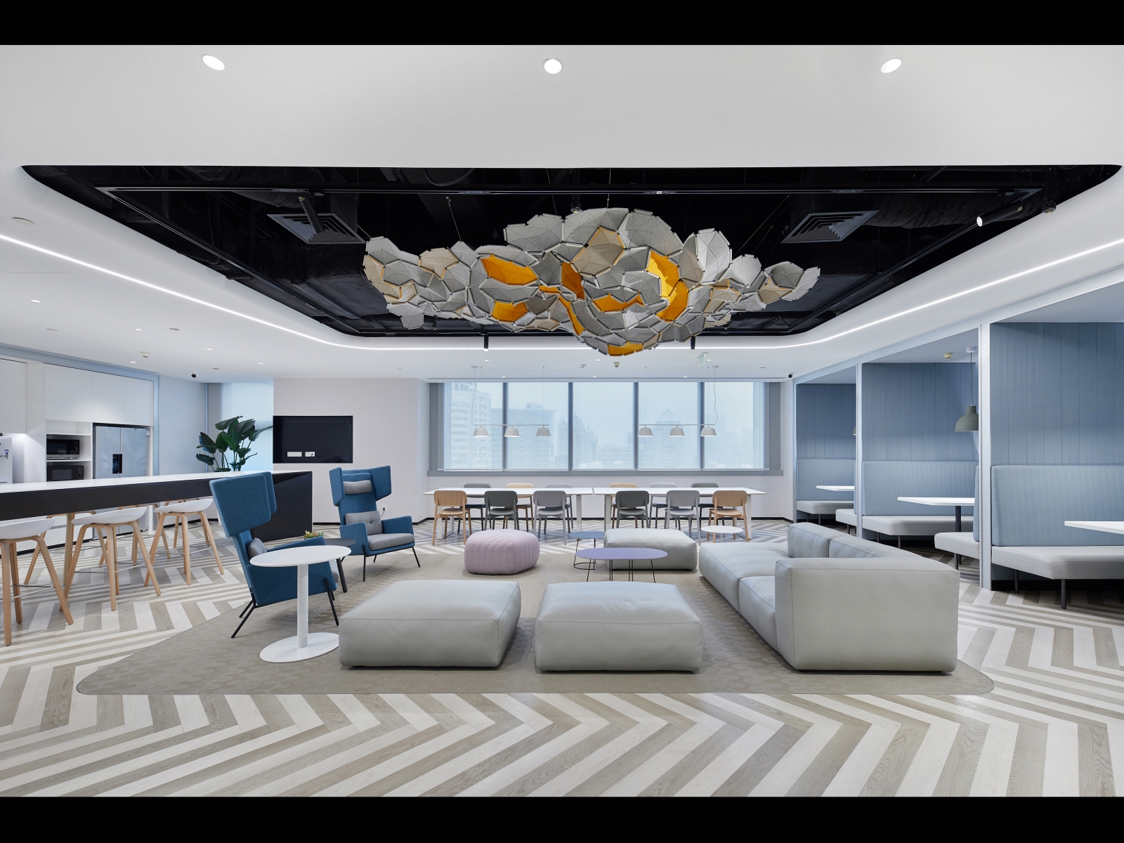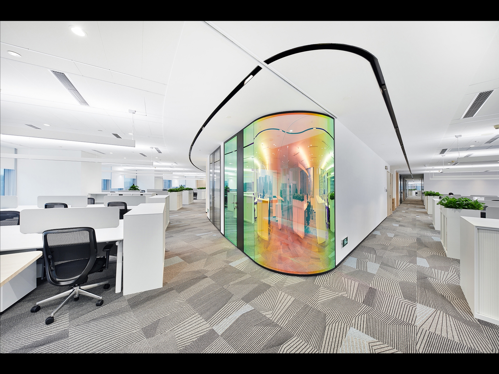The design of CapitaLand’s new headquarters draws inspiration from urban planning: a large-scale public activity space, commerce connects various residential communities, and the core activity area is the central square. The two-floor entrance and the public space facing the elevator across the board maximize this planning concept. The open entrance and the public space are connected through the elevator corridor, which becomes the heart of this office space. In this space, everyone learns, rests, communicates, and improves themselves.