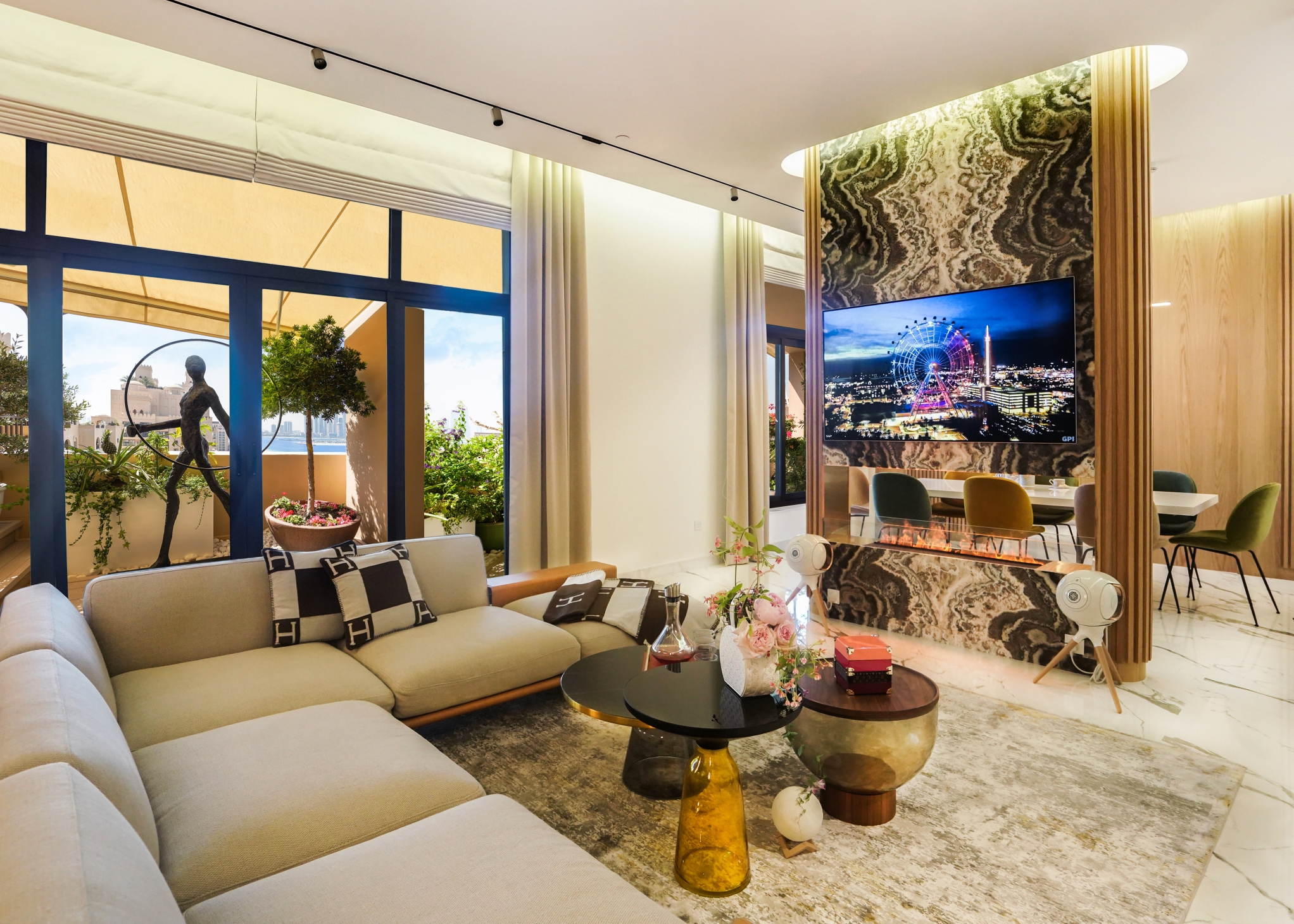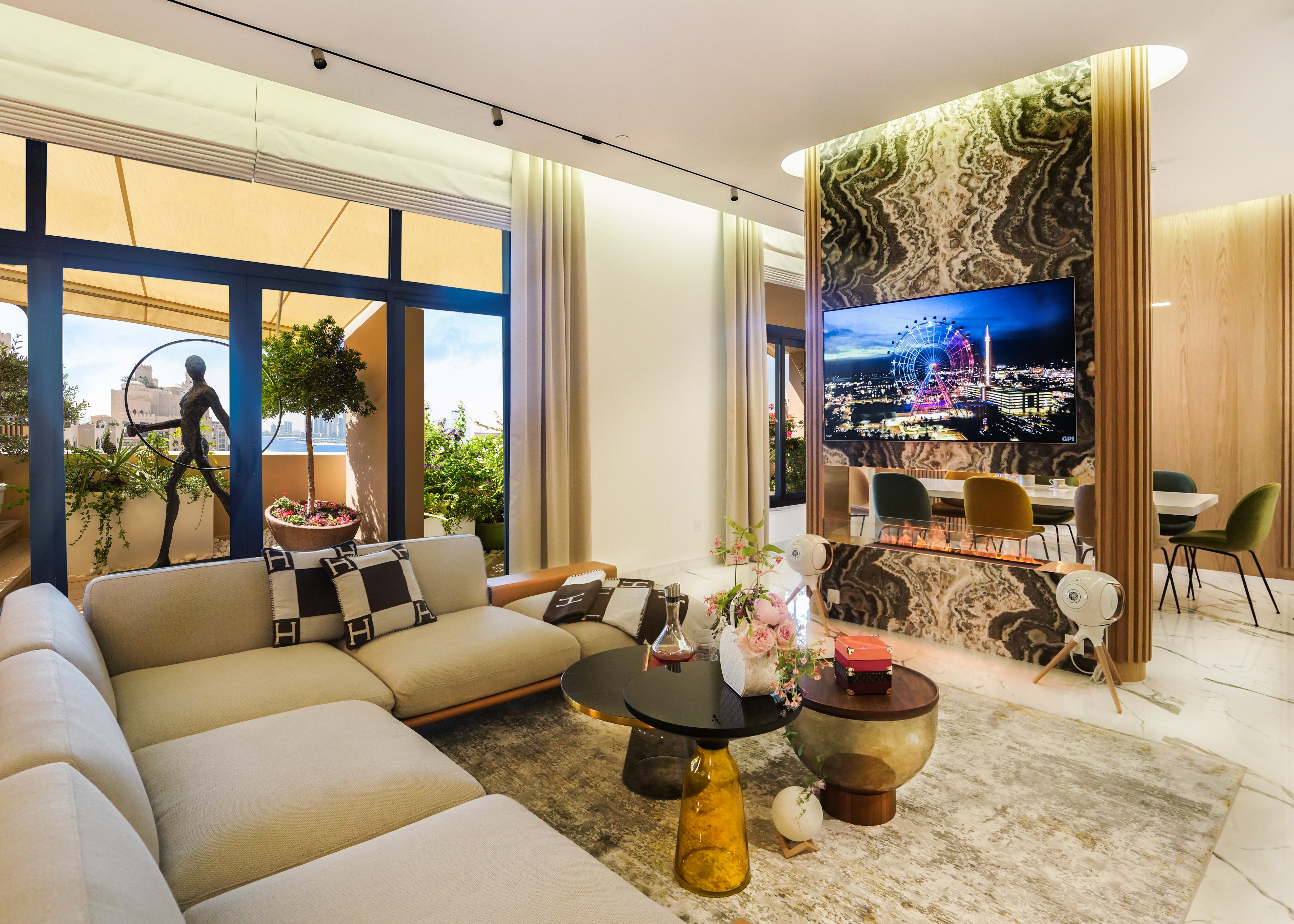 The most desired top floor Penthouse in Fairmont Residence situated in the heart of the world's largest man-maid Island Palm Jumeirah and boast stunning full sea and Dubai Marina Skyline views which spans over 3,225sq.ft. This Penthouse has four Bedrooms, two Reception rooms, spacious Kitchen, five Dressing rooms, maids Quarter with laundry and store room, five Bathrooms and Lavish Outdoor Terrace in huge size of 1,300 sq.ft. The property was designed by Dubai Design Group in contemporary concept brushed with Arabic influences.