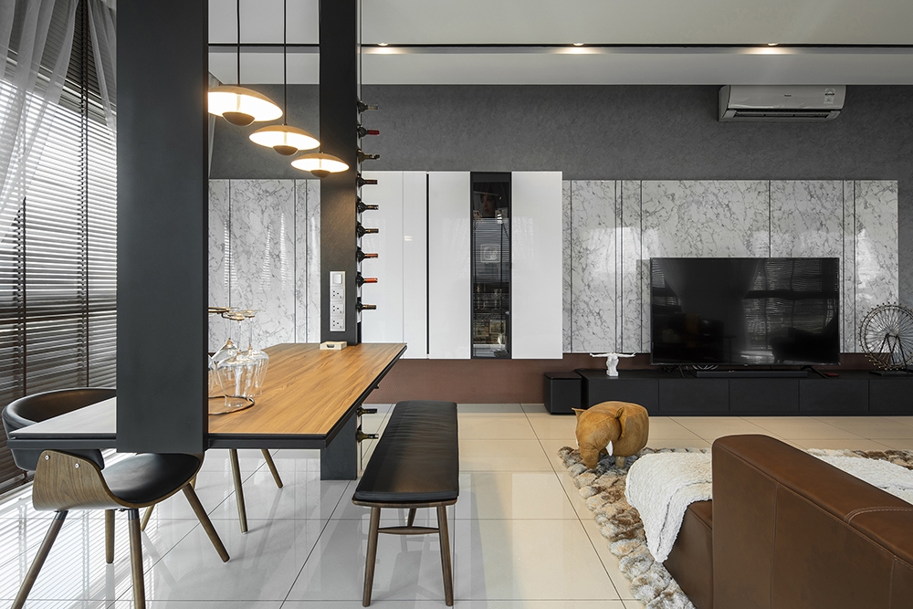 In an age where the lines between work, home and leisure are increasingly blurred – as evident especially during the pandemic after this apartment was built – the owner had in mind a home that looks spacious while being versatile enough to cater to different occasions without compromising on the nature and integrity of each activity.
